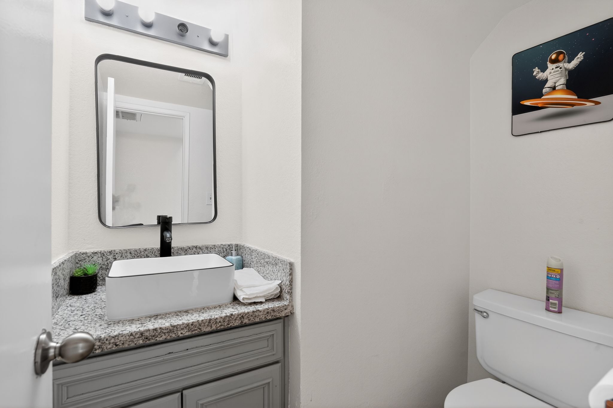 What stands out immediately in this 3-bedroom, 2.5-bath home is the volume of the living space, framed by a soaring ceiling and clerestory-style windows. Light enters from above and settles naturally across the room, while a brick fireplace introduces texture and a grounded focal point. In the dining area, where sliding glass doors bring in additional daylight and offer direct access to the backyard. Just beyond, the kitchen is arranged for both function and ease, with generous cabinetry, modern appliances, and a peninsula that creates a natural extension for seating or casual meals. Central heating and A/C maintain a consistent indoor environment throughout the year. In-home laundry is included for everyday convenience, and a 3-car garage provides ample space for parking and storage. This home is open to residents with pets. Daily essentials are close at hand along Ming Avenue, including Grocery Outlet and a variety of local dining options. Stockdale Towne Center offers additional shopping and restaurants, while The Park at River Walk features lakes, walking paths, and open green space for outdoor recreation. *Zillow deposit for this Belong home includes the $500 pet fee in case of pets. *Fireplace is for decorative use only and cannot be used without consent from Belong. *Our homes come as-is with all essentials in working order. Want upgrades? Request it through the Belong app, and our trusted pros will take care of the rest!