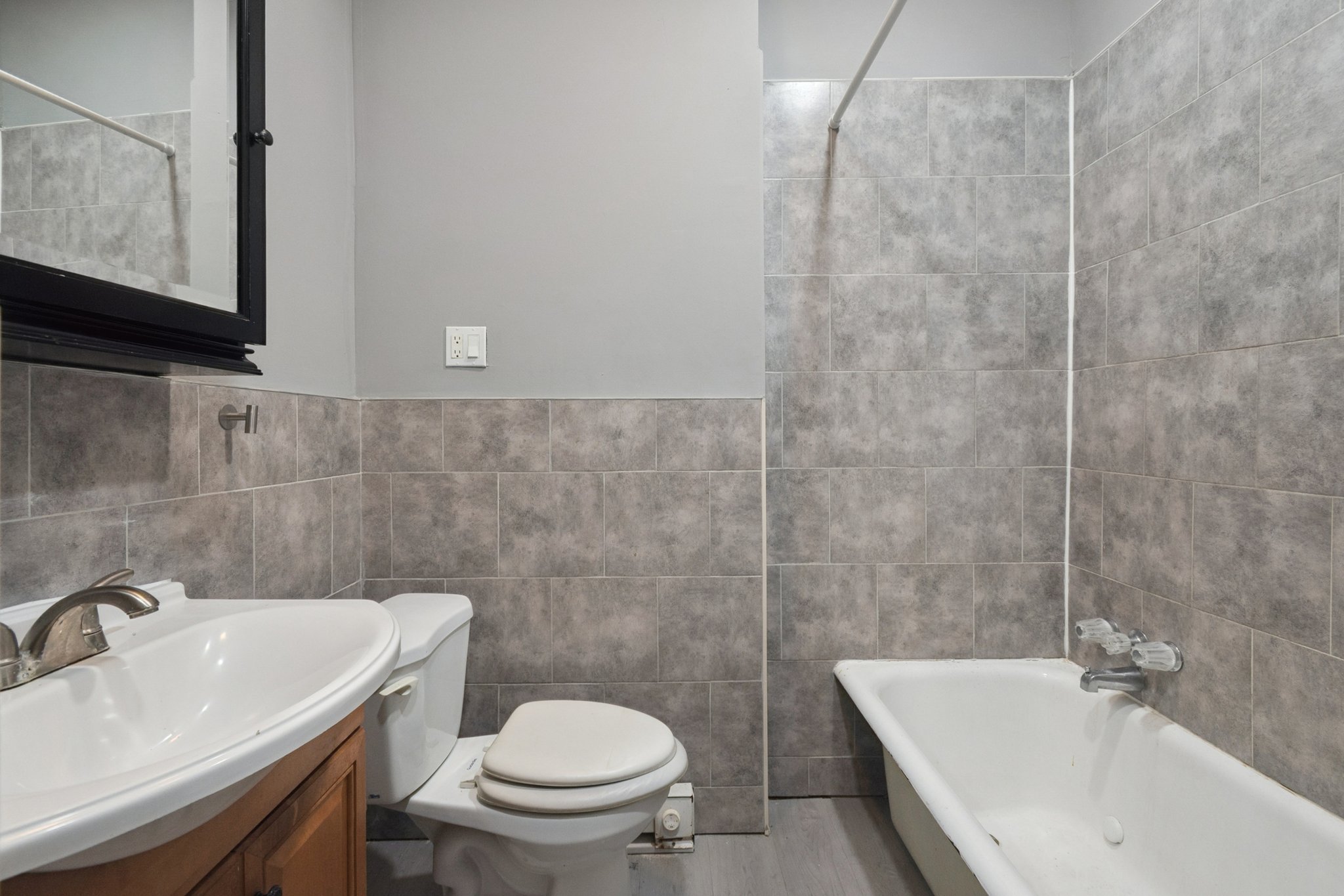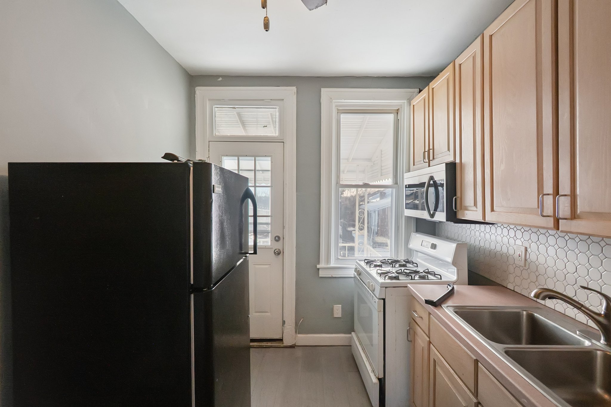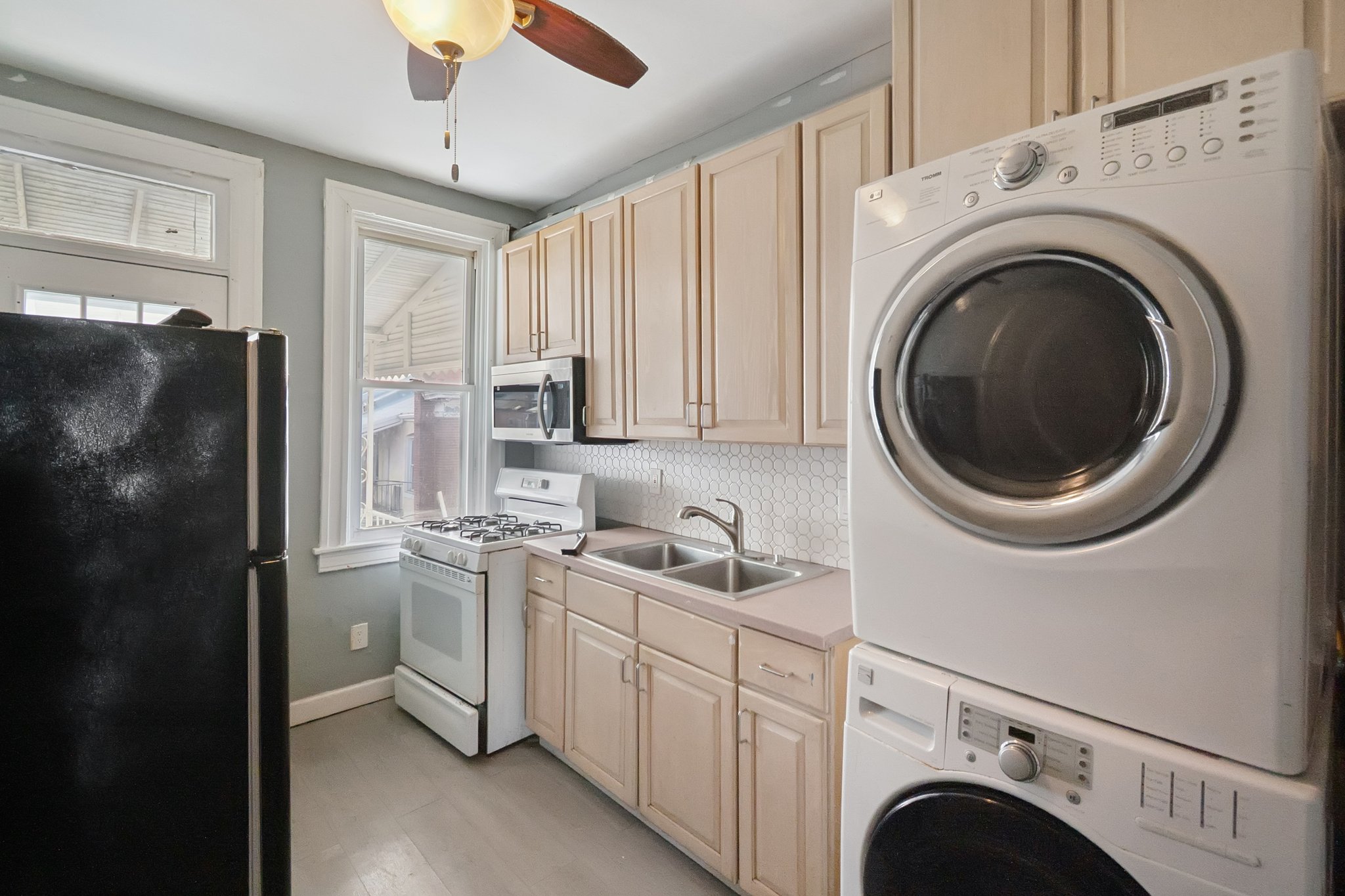 Space, function, and a practical layout come together in this 3-bedroom, 2-bath apartment designed for pleasant city living. Each bedroom includes its own ceiling fan for added comfort year-round. Your kitchen offers generous cabinetry, a full appliance suite including a gas range, refrigerator, and built-in microwave, and a double-basin sink set beneath a window for natural light. Clean lines and a tiled backsplash add durability and visual appeal, while the adjacent washer and dryer provide in-home laundry convenience that simplifies your routine. Dark flooring throughout creates a cohesive look from room to room. Both bathrooms are distinct and well-appointed. One includes a tiled tub and shower combination with a modern fixture, while the second features a curved glass shower enclosure with tiled walls and a dedicated shower base. Together, they offer flexibility for busy mornings and shared living arrangements. Positioned along Reisterstown Road, you are minutes from Mondawmin Mall, ALDI, and Giant Food for daily essentials. Druid Hill Park and The Maryland Zoo offer nearby outdoor recreation, and Coppin State University adds to the neighborhood’s vibrant energy. Multiple bus lines and convenient commuter routes place the rest of Baltimore within easy reach. *Our homes come as-is with all essentials in working order. Want upgrades? Request it through the Belong app, and our trusted pros will take care of the rest!