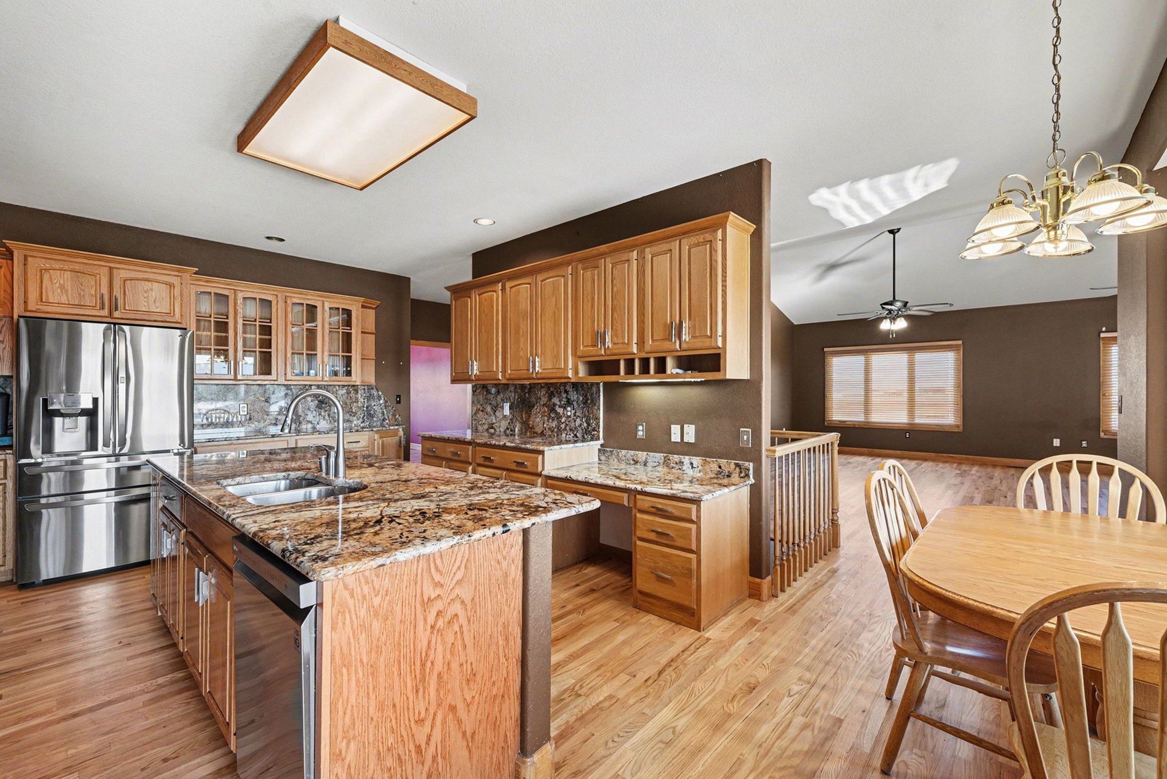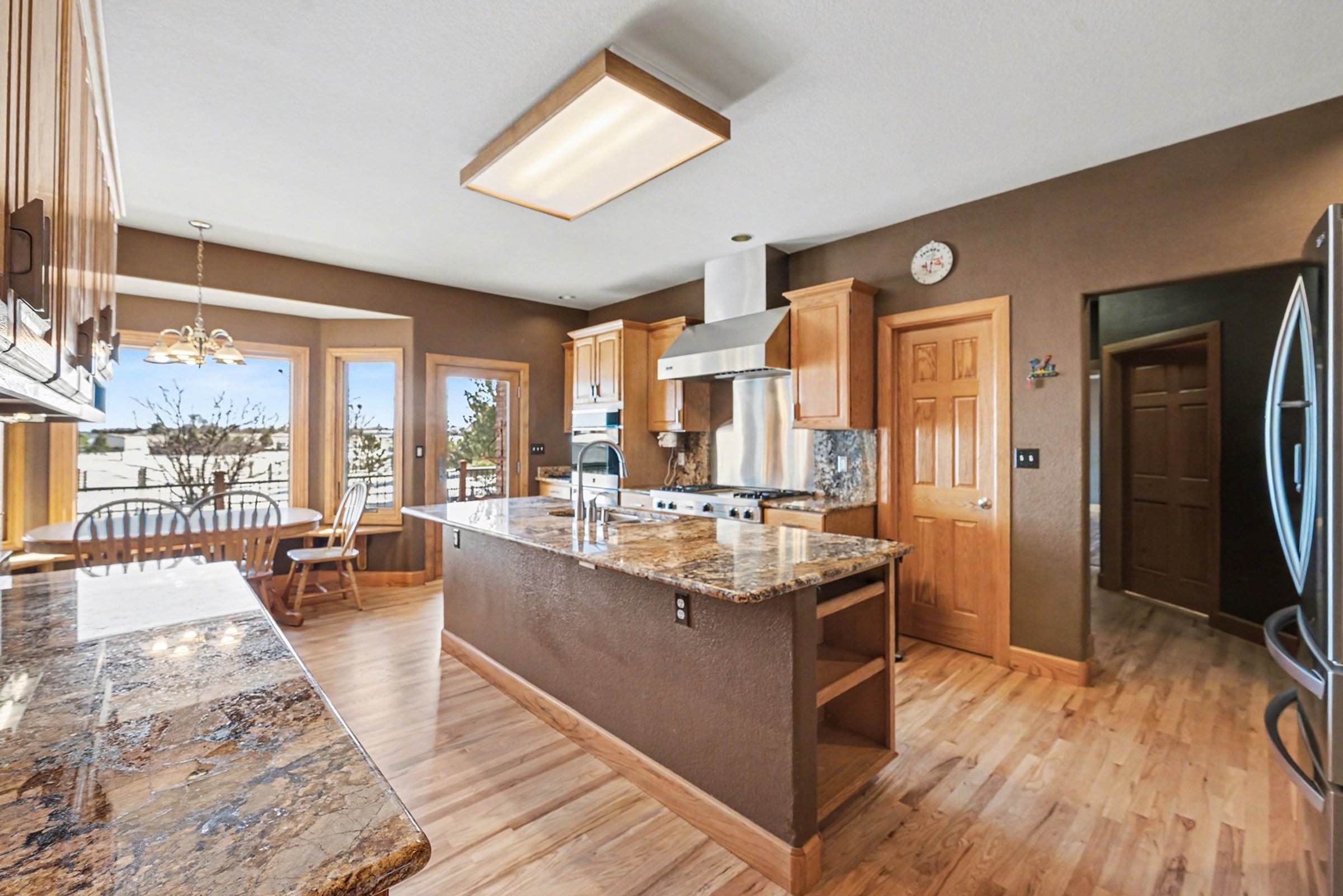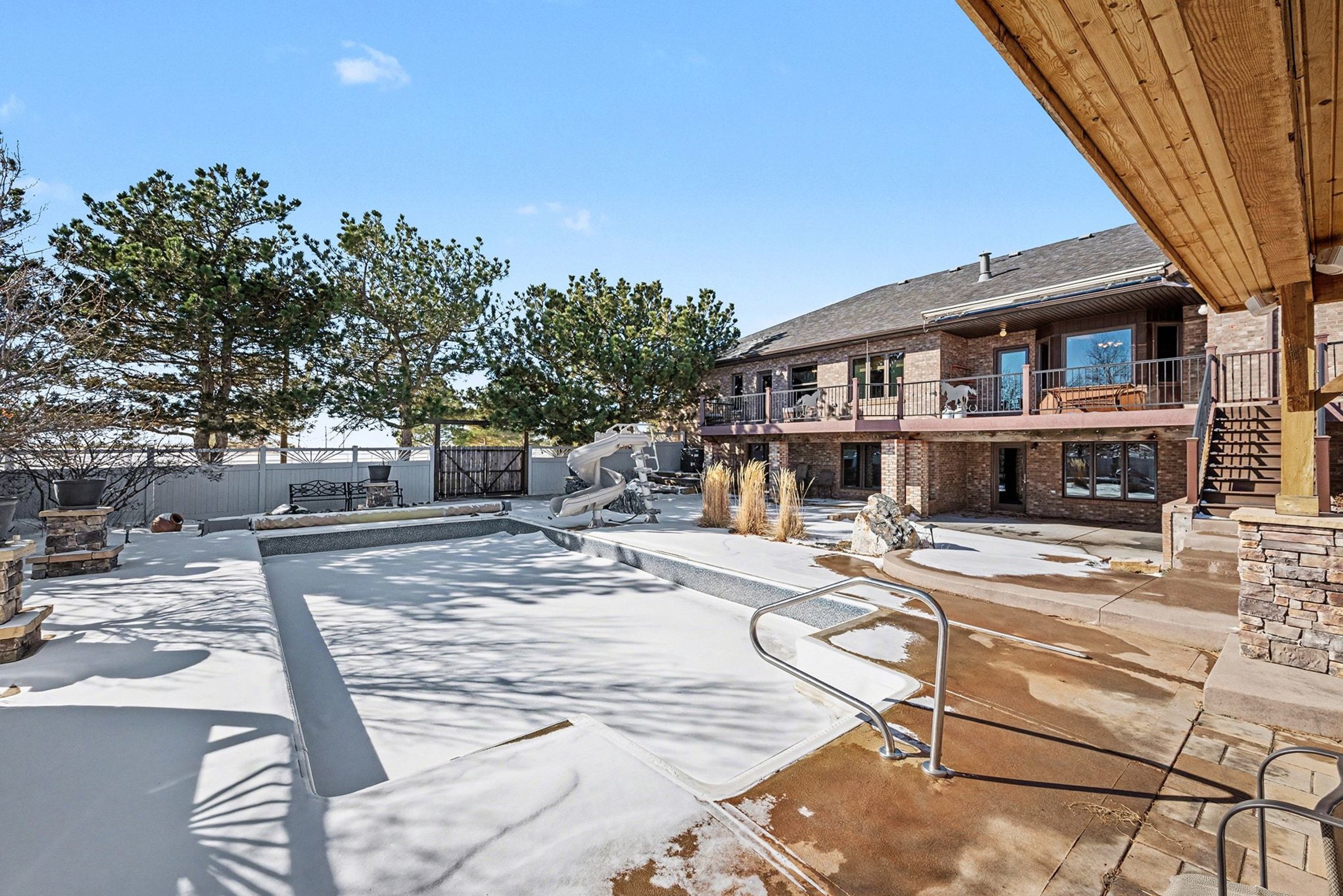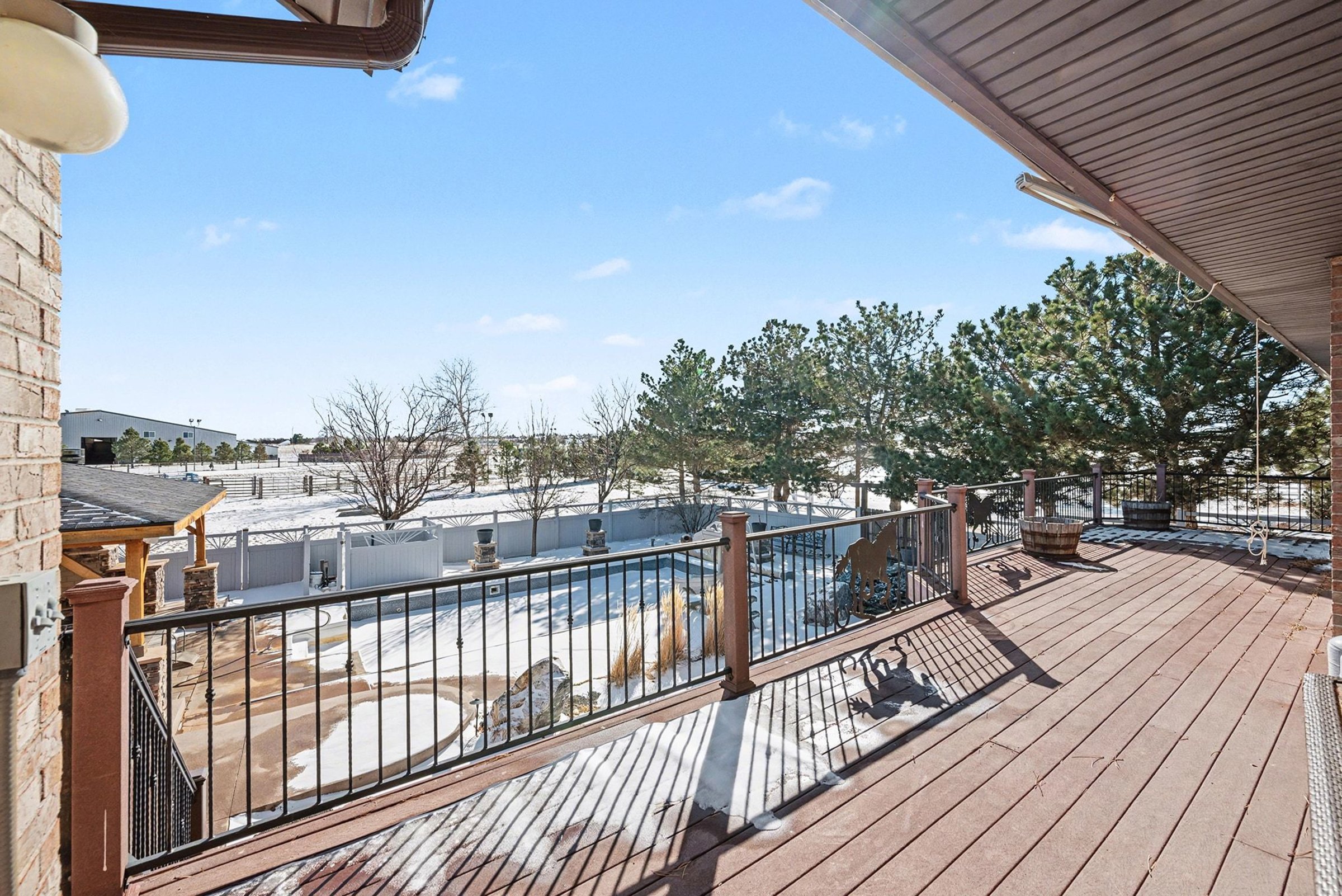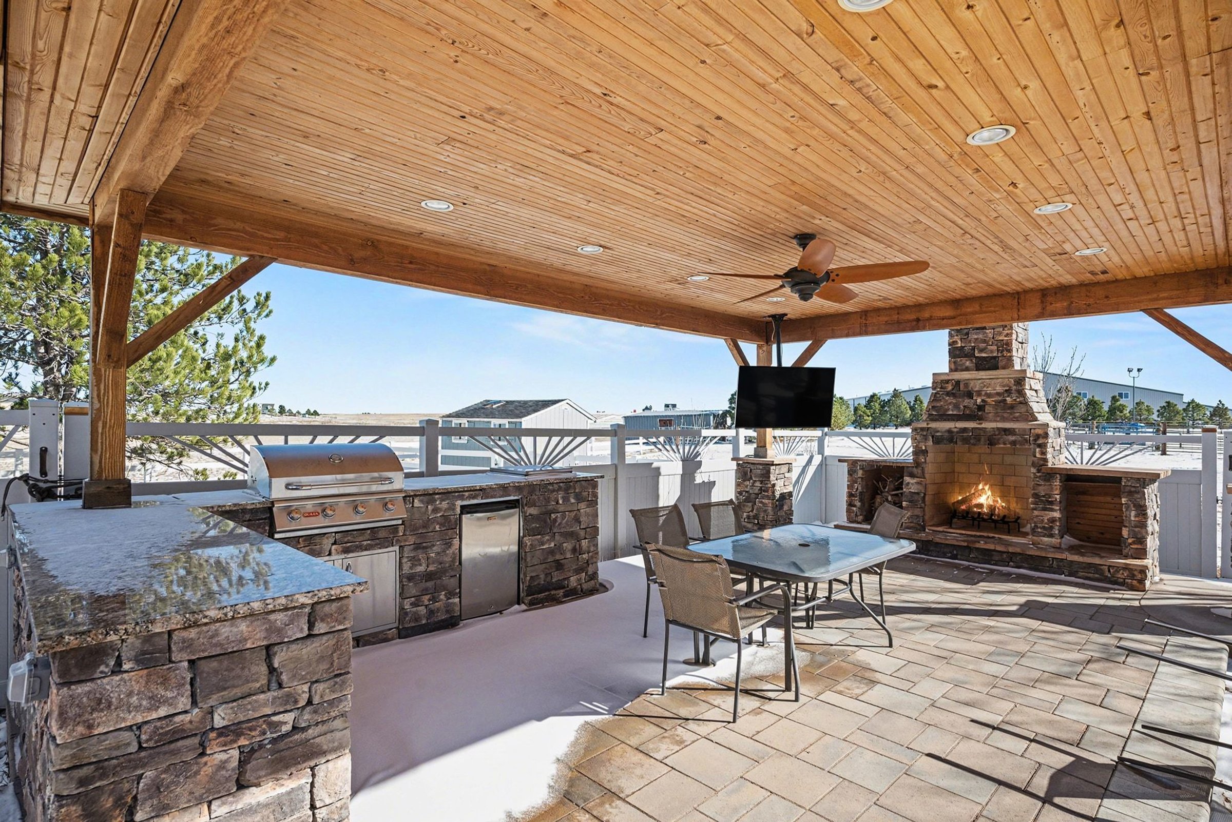 Refined craftsmanship defines this 5-bedroom, 4.5-bath home, offering approximately 7,000 square meters of living space and a layout that feels both expansive and composed. Wide-plank wood floors, vaulted ceilings, and a dramatic stone fireplace create a striking backdrop for daily life and entertaining, while built-in cabinetry adds polish and practical storage. In the kitchen, a generously sized island anchors the room for prep, serving, and casual seating. Wood cabinetry pairs with plentiful counters, and the walk-in pantry delivers the kind of storage you will appreciate for small appliances, staples, and hosting pieces. Nearby, the dining area enjoys natural light and easy flow to the surrounding living spaces. Comfort features include heat and central A/C, while a 3-car garage keeps vehicles and gear neatly tucked away. Outdoors, the pool sets the tone for sunny afternoons, weekend gatherings, and quiet evenings under open Colorado skies. Set within the welcoming community of Bennett, you’re conveniently close to everyday conveniences and local favorites. Grocery shopping at King Soopers is just minutes away, along with a selection of well-loved eateries, including Los Charros Mexican Restaurant and High Plains Diner. Casual cafes and additional dining options like Bennett Asian Cafe and Happy Burrito offer variety nearby. Daily errands and fuel stops are simple to manage with local services just down the road, and Bennett’s small-town charm blends with easy access to larger urban centers for shopping and cultural outings. *Fireplace is for decorative use only and cannot be used without consent from Belong. *Our homes come as-is with all essentials in working order. Want upgrades? Request it through the Belong app, and our trusted pros will take care of the rest!