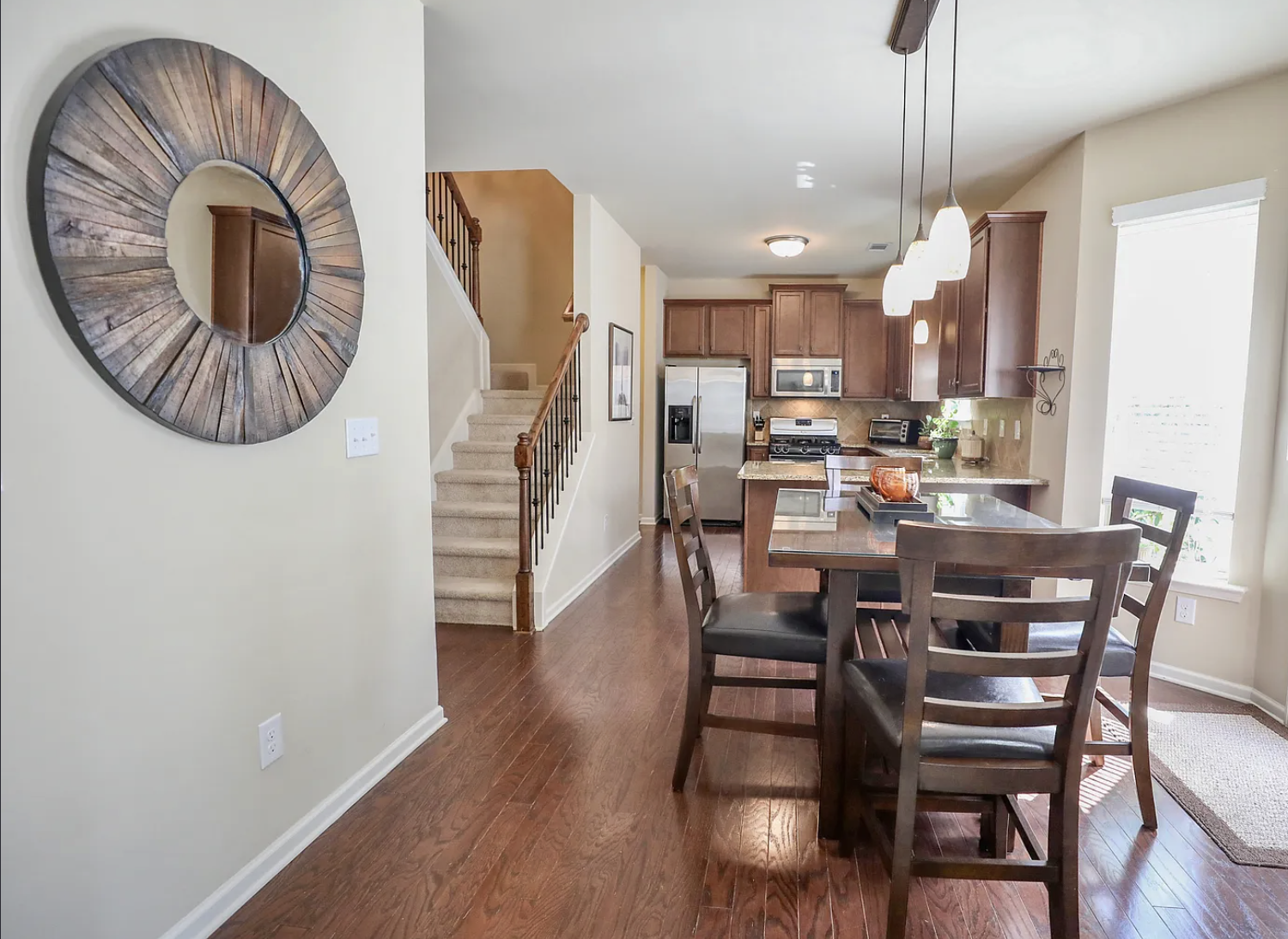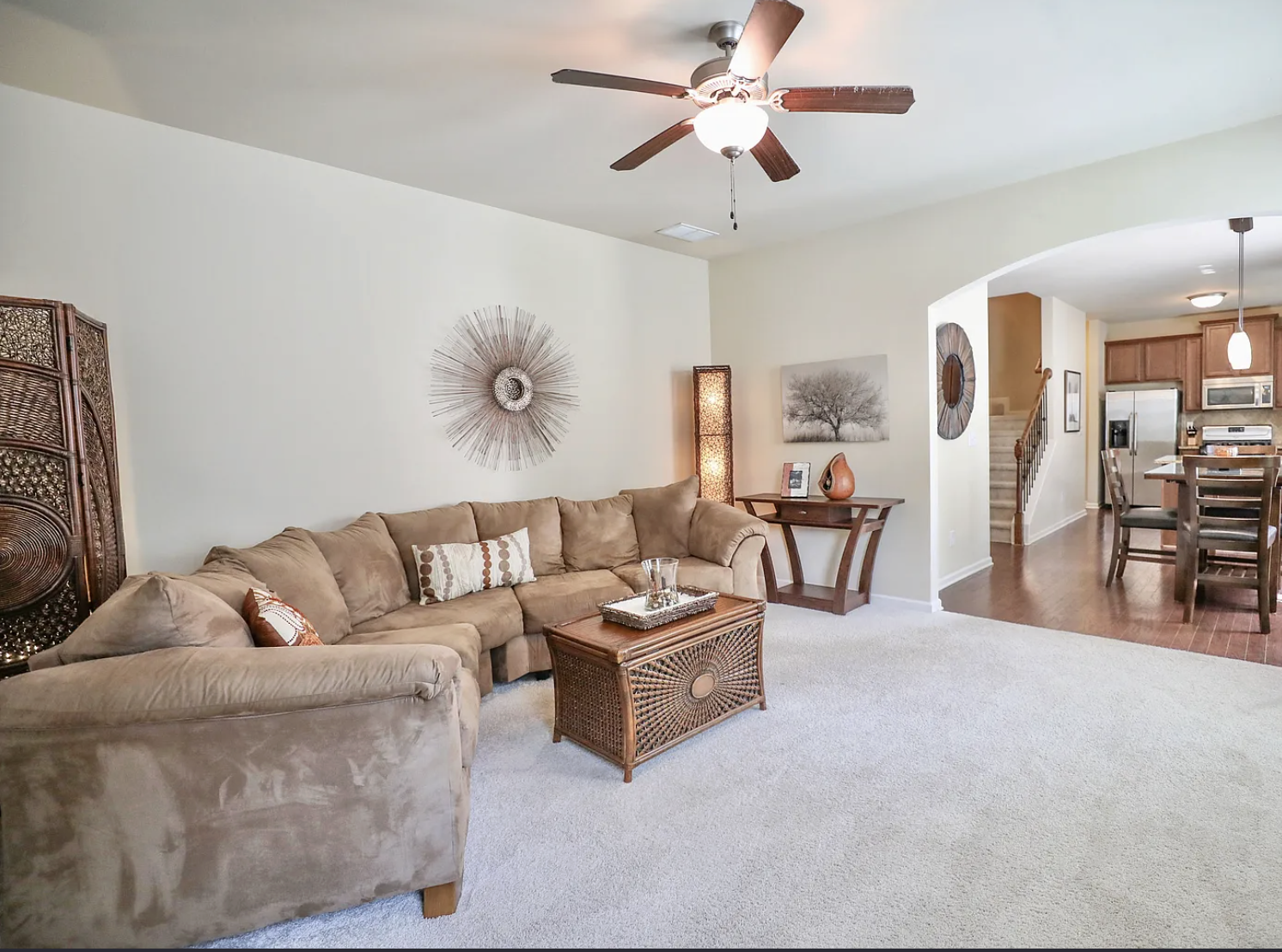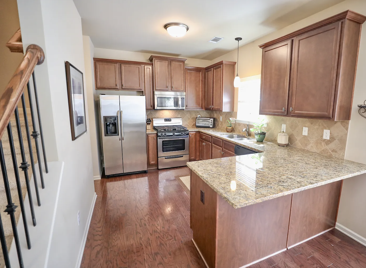 A stone fireplace, open living areas, and multiple dining spaces give this 4-bedroom, 2.5-bath home in Canton a strong sense of structure and flexibility. The living area is anchored by a floor-to-ceiling stone fireplace with a raised hearth and mounted TV above. There’s ample room to arrange a full seating setup, whether you’re hosting or keeping things low-key. In the kitchen, generous cabinetry and expansive counter space support everyday use. A central peninsula offers bar seating for quick meals or casual conversation, while stainless steel appliances are positioned for convenience. Just beyond, a dedicated dining area sits alongside a separate breakfast nook, giving you options depending on the occasion. Four bedrooms and 2.5 baths provide flexibility to arrange sleeping quarters, set up a workspace, or accommodate guests. Parking is straightforward with a 2-car garage and a 2-car driveway. Set in a quiet neighborhood between Woodstock and Canton, you’ll have easy access to I-575 for commuting. Kennesaw State University is about a 15-minute drive, while North Georgia distilleries, wineries, and mountain towns are all within a short trip for weekend plans. *Fireplace is for decorative use only and cannot be used without consent from Belong. *Our homes come as-is with all essentials in working order. Want upgrades? Request it through the Belong app, and our trusted pros will take care of the rest!
