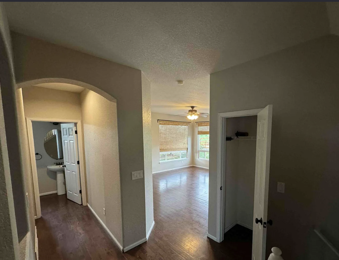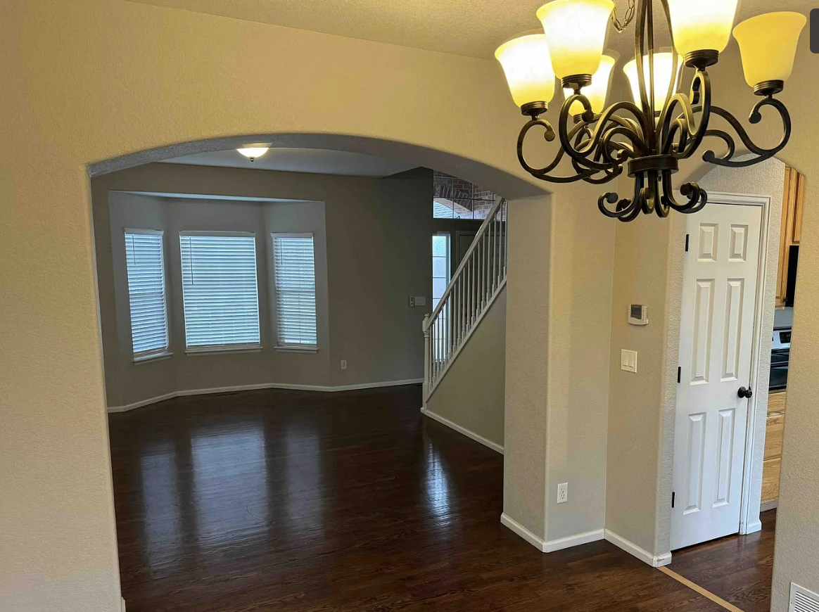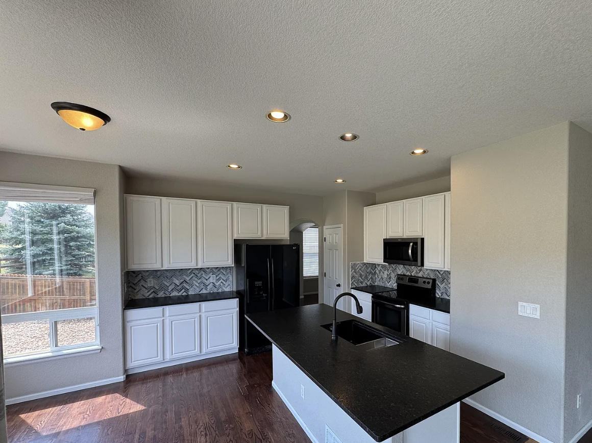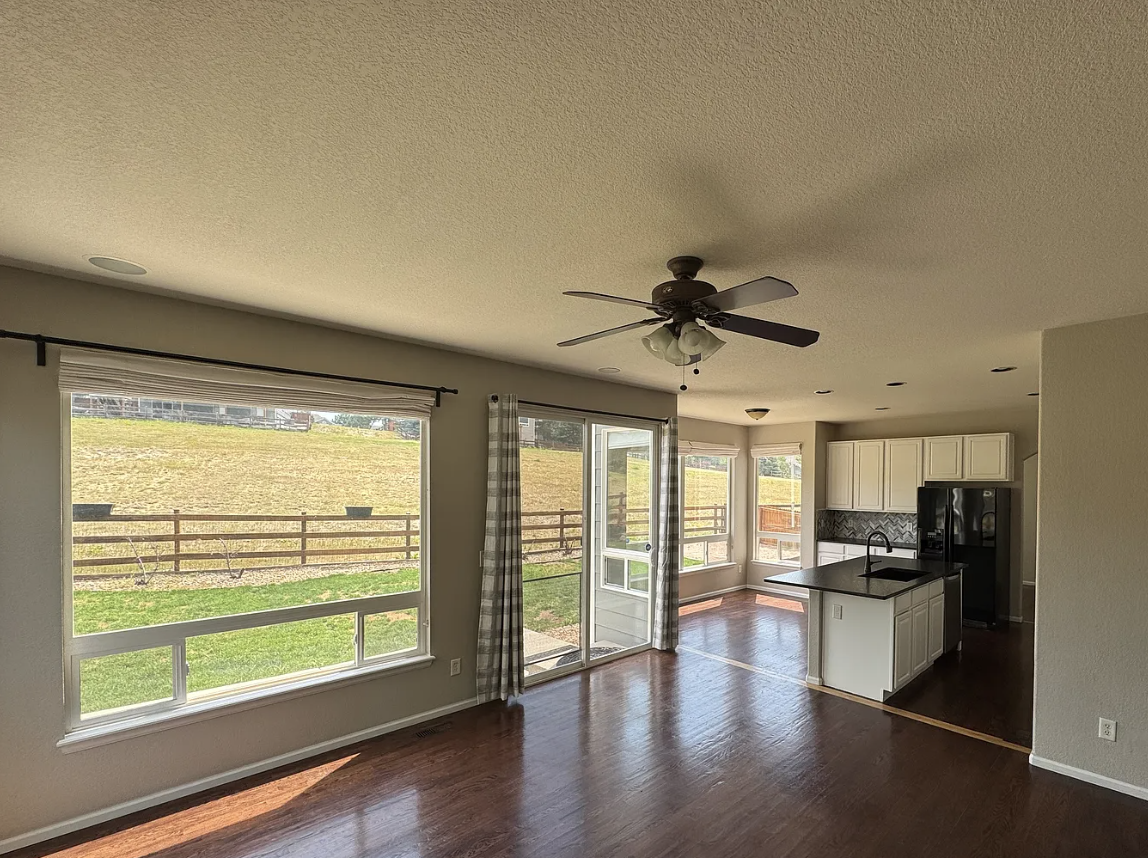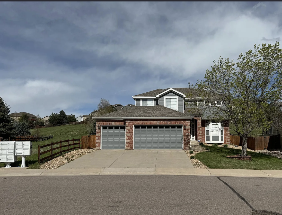 Dark hardwood flooring, expansive windows, and a well-appointed layout establish a polished environment for living in this elegant abode. Its brick and siding exterior sets a distinguished first impression, while the generous driveway and three-car garage offer everyday convenience. Your main living areas feature rich hardwood flooring that extends across the first level, tying the formal dining area to the bright gathering spaces overlooking the backyard. Built-in shelving gives you a practical spot for display or media, while the dedicated office offers a quiet, well-defined place to work. In the kitchen, white cabinetry pairs with a herringbone backsplash for a tasteful contrast, complemented by stainless steel appliances and a spacious island for prep and gathering. An adjacent dining nook sits beside large windows, giving you a bright corner for meals. Located in Castle Rock, this address enjoys quick access to Mitchell Gulch Park, Butterfield Park, and hiking trails throughout the nearby open spaces. Everyday errands are simple with King Soopers, Sprouts, and restaurants along Founders Parkway all within a short drive, and several cafés and local shops add convenience close to home. *Our homes come as-is with all essentials in working order. Want upgrades? Request it through the Belong app, and our trusted pros will take care of the rest!