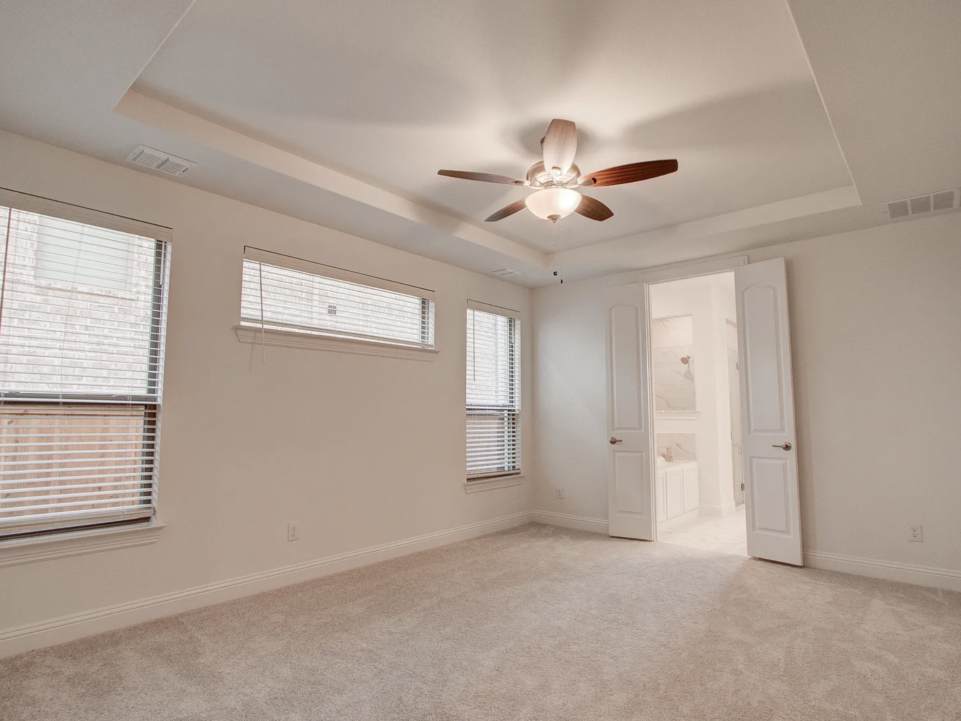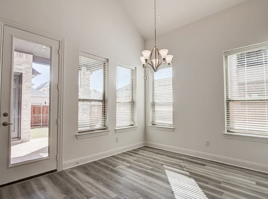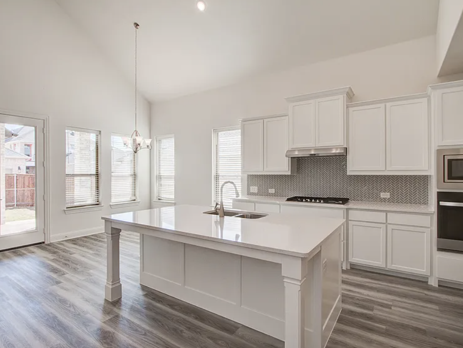 This contemporary four-bedroom home in Celina offers 2,368 square feet of thoughtfully designed living space. Bright and inviting, the main living area features an open layout with wood-look flooring and large windows that flood the space with natural light. The modern kitchen is a centerpiece with white shaker cabinets, white quartz countertops, a striking gray patterned tile backsplash, and a generous island with seating, perfect for both casual meals and entertaining. Each bedroom enjoys neutral carpeting, white walls, ceiling fans with integrated lighting, and blinds for privacy. The master retreat impresses with a luxurious bathroom showcasing a double vanity, soaking tub with marble surround, tile flooring, and a separate glass-enclosed walk-in shower. Additional baths maintain a clean, modern appeal with quality fixtures throughout. Practical comforts continue with a dedicated laundry room featuring built-in shelves and utility hookups. The home’s pristine condition and contemporary finishes underscore its move-in readiness. Set in a welcoming Celina neighborhood, this residence balances modern convenience with a comfortable lifestyle. *Our homes come as-is with all essentials in working order. Want upgrades? Request it through the Belong app, and our trusted pros will take care of the rest!