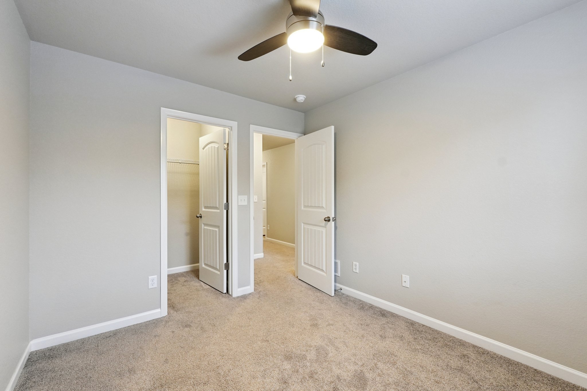 This lovely home brings together an open layout, generous storage, and warm finishes to create a comfortable place to settle in. Its open-concept main floor flows easily from the living area into a spacious kitchen, where a huge island anchors the space and provides room for casual meals, prep, or gathering with friends. Pendant lighting, recessed lights, and clean-lined cabinetry add to the inviting feel, while a smart refrigerator adds everyday convenience. All three bedrooms feature spacious walk-in closets, giving you plenty of room to stay organized without sacrificing comfort. A full laundry room on the second floor keeps daily routines close at hand. With 2.5 baths, mornings and evenings feel manageable, even with a full household. The two-car garage includes a south-facing driveway, a thoughtful touch for winter months. Beyond the front door, the community offers amenities designed to support a relaxed lifestyle. Enjoy access to a community center with a gym and kid activities, plus a playground for outdoor time. The neighborhood is dog friendly, and up to three pets are allowed, making it easy to feel at home with your furry companions. Conveniently located near I-25, this area places you close to Colorado Springs Airport, nearby shopping and dining options, and easy access to a local military base, helping keep commutes and errands simple. *Our homes come as-is with all essentials in working order. Want upgrades? Request it through the Belong app, and our trusted pros will take care of the rest!