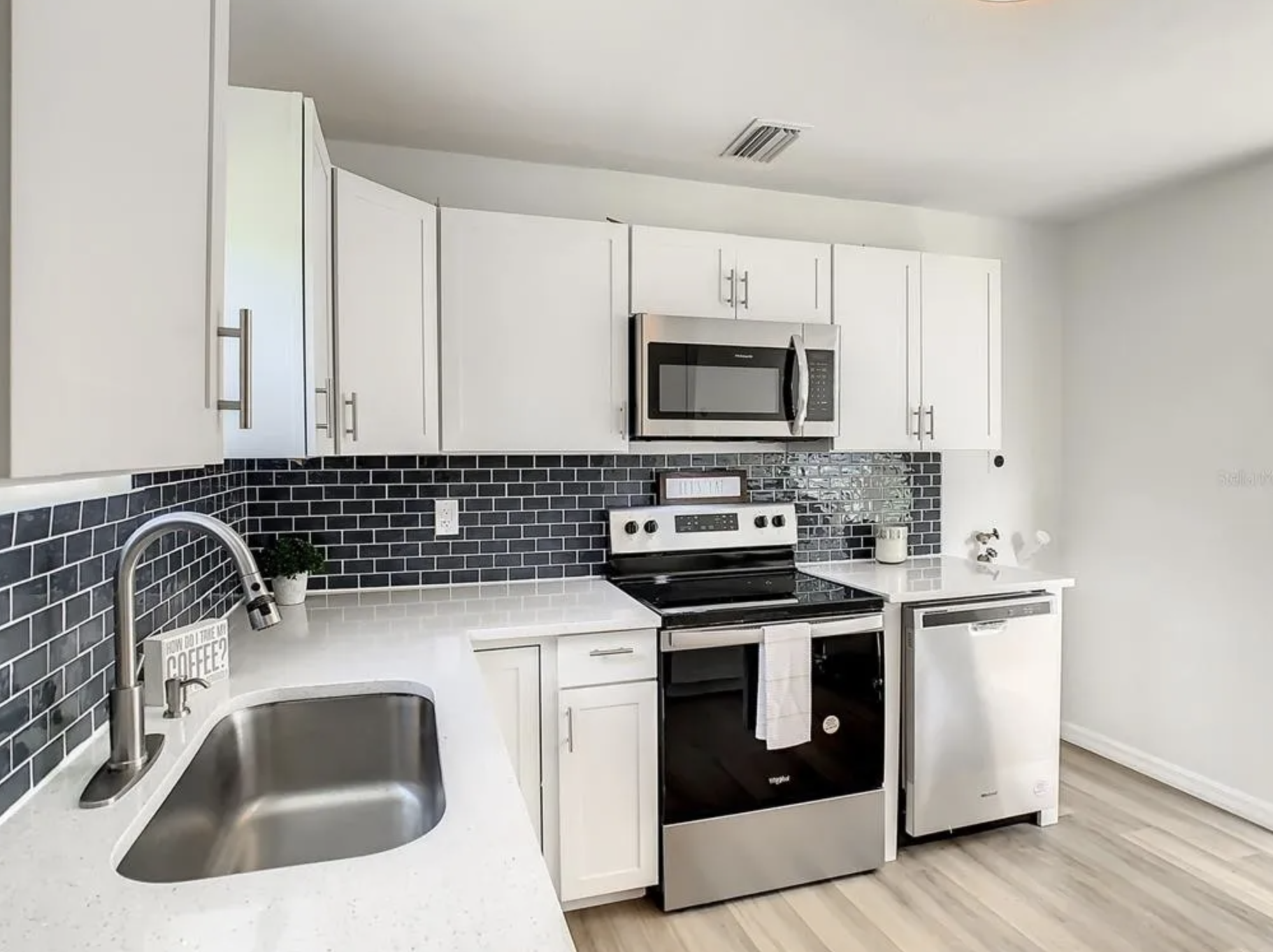 Receive $200 off your first month’s rent when you apply by the end of the month. A fully renovated three-bedroom home in Davenport that makes an immediate impression. Cobalt blue siding and a bold yellow front door set against manicured landscaping give this cottage-style bungalow a curb appeal that's hard to overlook. Inside, the layout opens cleanly from the living room through to the kitchen, with light wood-tone vinyl plank floors running throughout and oversized windows pulling in natural light from multiple angles. A wood-planked ceiling accent in the entry adds warmth and texture without interrupting the home's clean, modern palette. The sputnik chandelier in the dining area is a small but deliberate touch, the kind of detail that signals this renovation was done with intention. The kitchen is a genuine centerpiece: white shaker cabinets, quartz countertops, a dark slate subway tile backsplash, and a full stainless appliance package. It functions as efficiently as it looks, with a pass-through opening that keeps the space connected rather than closed off. Three well-proportioned bedrooms offer flexibility for households of different sizes, each with ample natural light and closet space. Located along US-17-92 in Davenport, the home sits minutes from everyday conveniences while maintaining the quieter pace of a residential neighborhood, a practical base for commuters and a genuinely comfortable place to live. *Our homes come as-is with all essentials in working order. Want upgrades? Request it through the Belong app, and our trusted pros will take care of the rest!