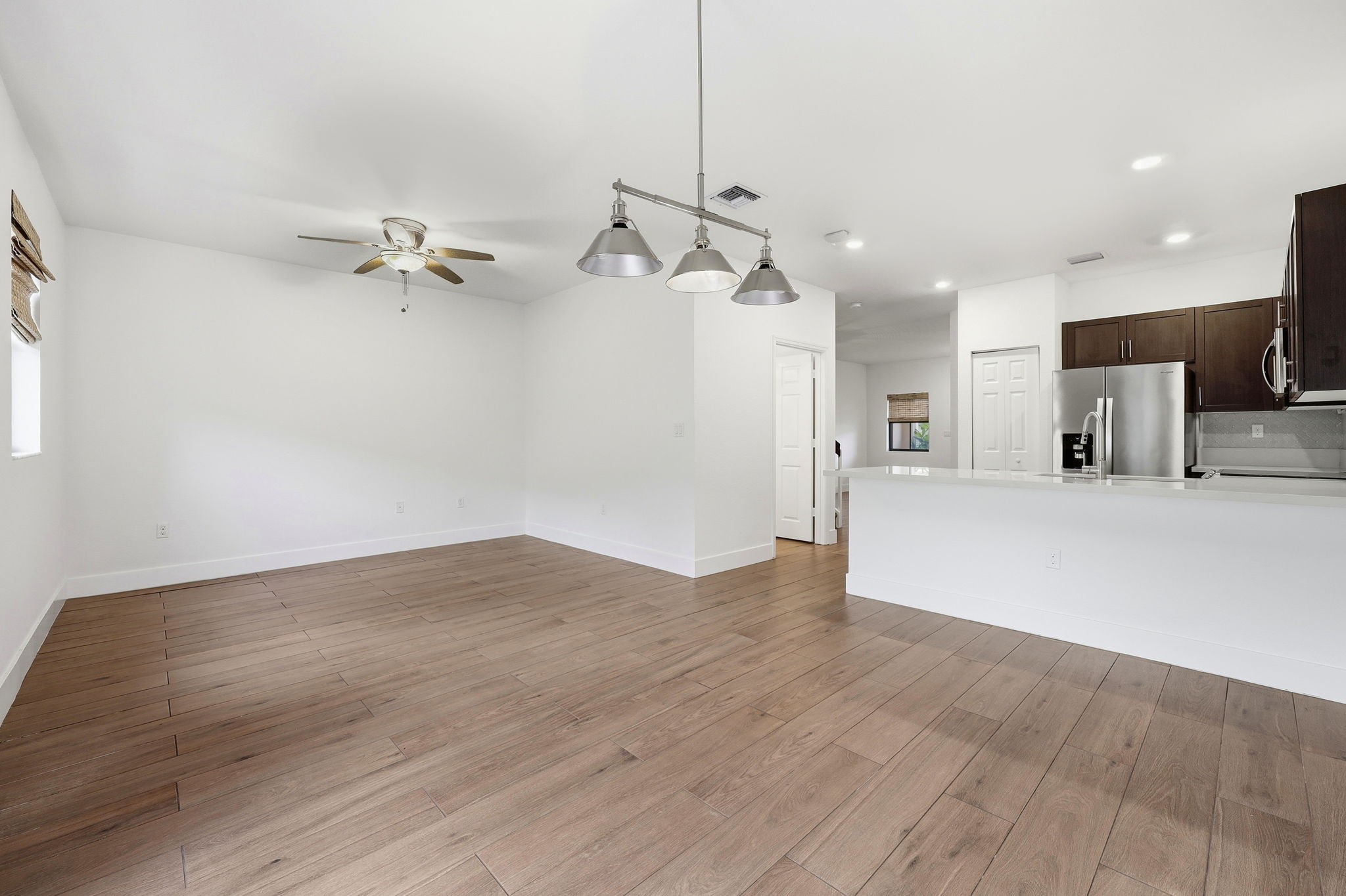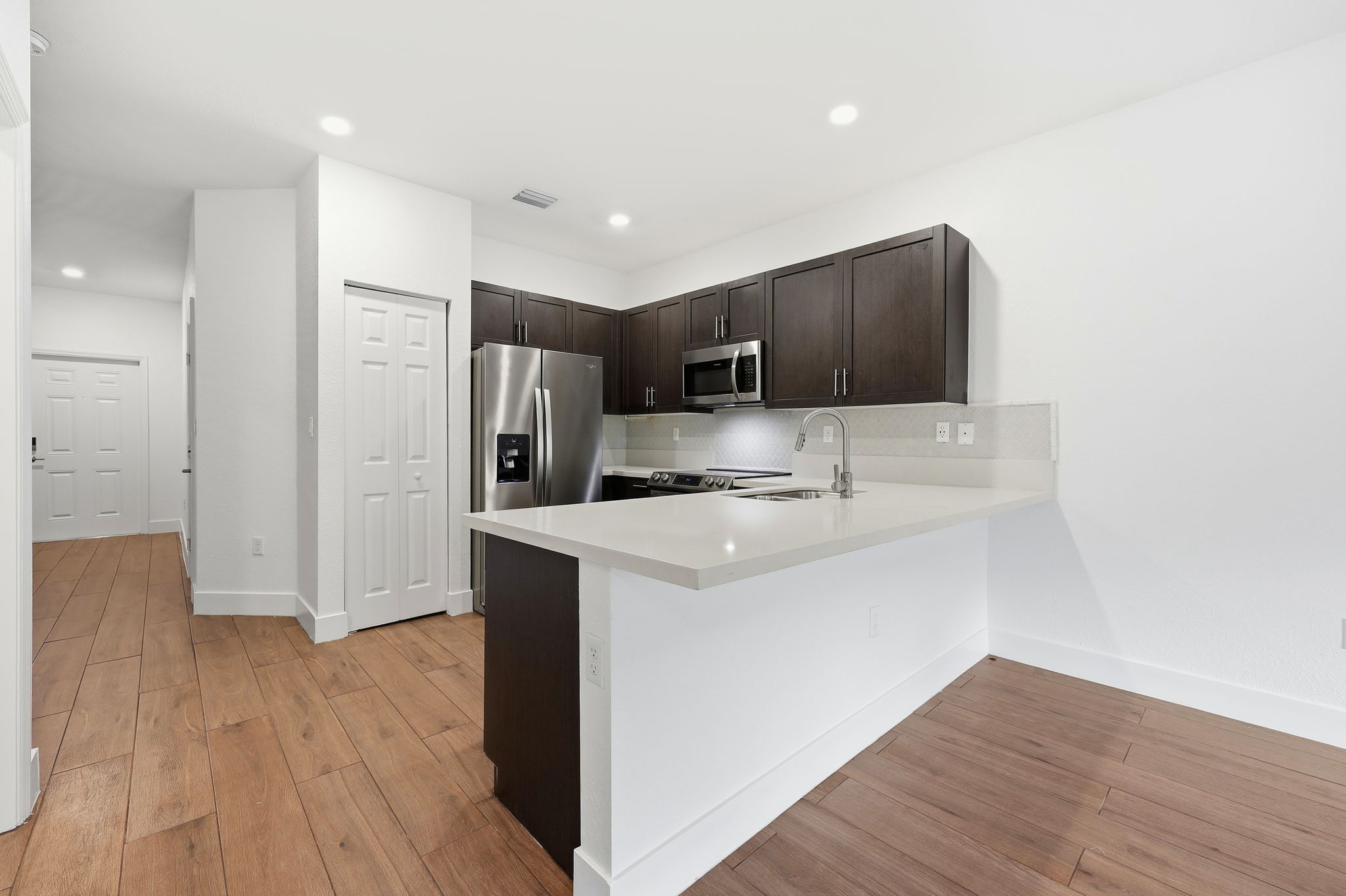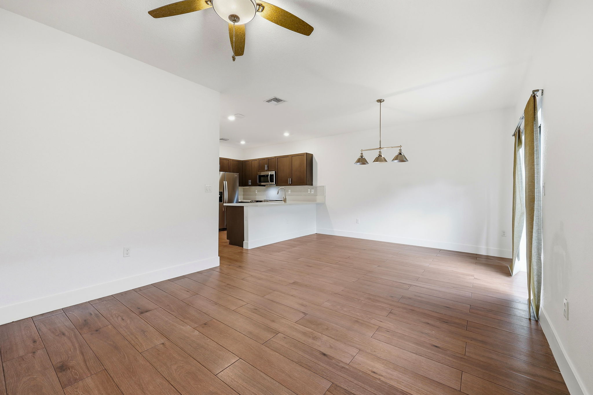 This fully renovated 3-bedroom, 2.5-bath home offers a composed, modern setting supported by practical features throughout. Newer construction and smart-home capabilities set it apart in Davie, where this level of update is uncommon. Wood-tone flooring runs continuously through the main living areas, creating a cohesive feel from the living space into the dining area and kitchen. A digital thermostat supports everyday comfort with simple, centralized control. The kitchen is designed for function and clarity, featuring dark cabinetry, generous counter space, and stainless steel appliances, including a refrigerator, range and oven, microwave, and dishwasher. A large island anchors the space and naturally connects cooking, dining, and living areas without feeling crowded. Sliding glass doors introduce natural light and provide a clear transition between indoor gathering areas. The location places you near Nova Southeastern University and nearby colleges and schools and provides quick access to the Turnpike for commuting across South Florida. Everyday needs are close at hand, with grocery options like Publix and Whole Foods Market nearby, along with local dining and coffee spots. Outdoor time is easy to enjoy at Tree Tops Park and other green spaces throughout Davie, offering trails and open areas for recreation. *Our homes come as-is with all essentials in working order. Want upgrades? Request it through the Belong app, and our trusted pros will take care of the rest.
