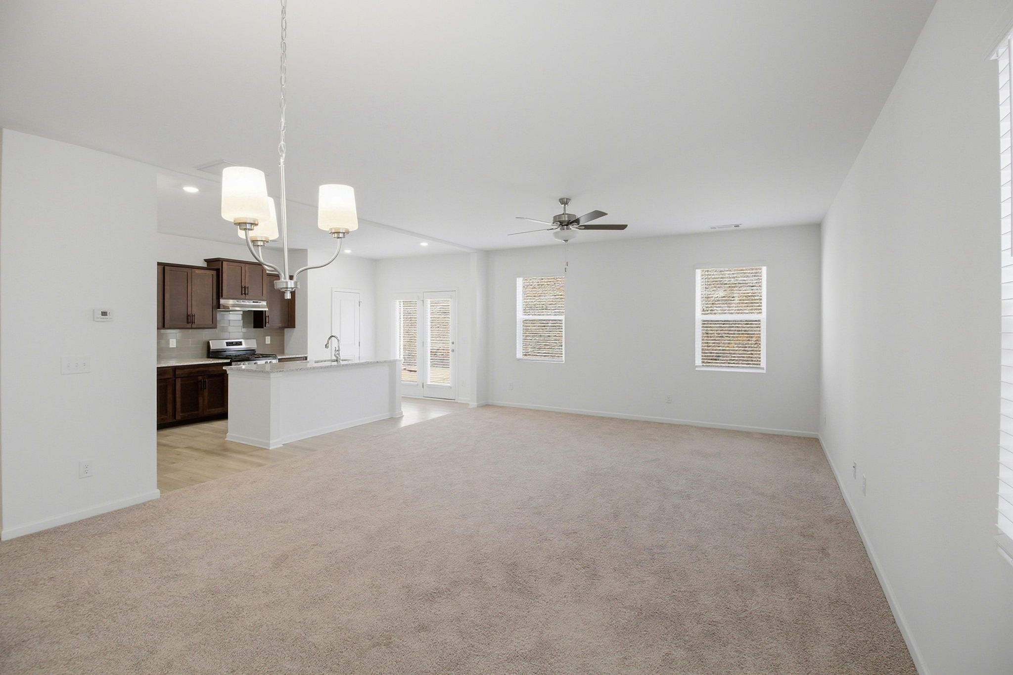 Space, light, and a beautifully appointed kitchen come together in this 4-bedroom, 2.5-bath home built for modern living. An oversized island anchors the kitchen, topped with sleek counters and fitted with a deep sink and pull-down faucet. Rich dark cabinetry contrasts elegantly with stainless steel appliances, including a side-by-side refrigerator, gas range, built-in microwave, and dishwasher. Just beyond, the open living and dining areas stretch wide with plush carpeting underfoot and multiple windows that invite in natural light. A ceiling fan adds comfort, while a contemporary chandelier defines the dining space. Glass doors lead outside, extending your entertaining options and keeping the layout connected and functional. Four well-proportioned bedrooms and two full baths offer flexibility for work, rest, or creative space. A convenient half bath on the main level supports daily routines and guests alike. Recessed lighting keeps everything bright and crisp, while neutral tones and thoughtful finishes throughout make it easy to settle in and make it your own. Location seals the deal. Quick access to GA400 keeps commuting simple, while North Georgia Premium Outlets, Kroger, Publix, and a variety of local restaurants and cafes are just minutes away. Spend weekends exploring Lake Lanier, hiking at Amicalola Falls State Park, or enjoying downtown Dawsonville’s growing dining scene. *Our homes come as-is with all essentials in working order. Want upgrades? Request it through the Belong app, and our trusted pros will take care of the rest!