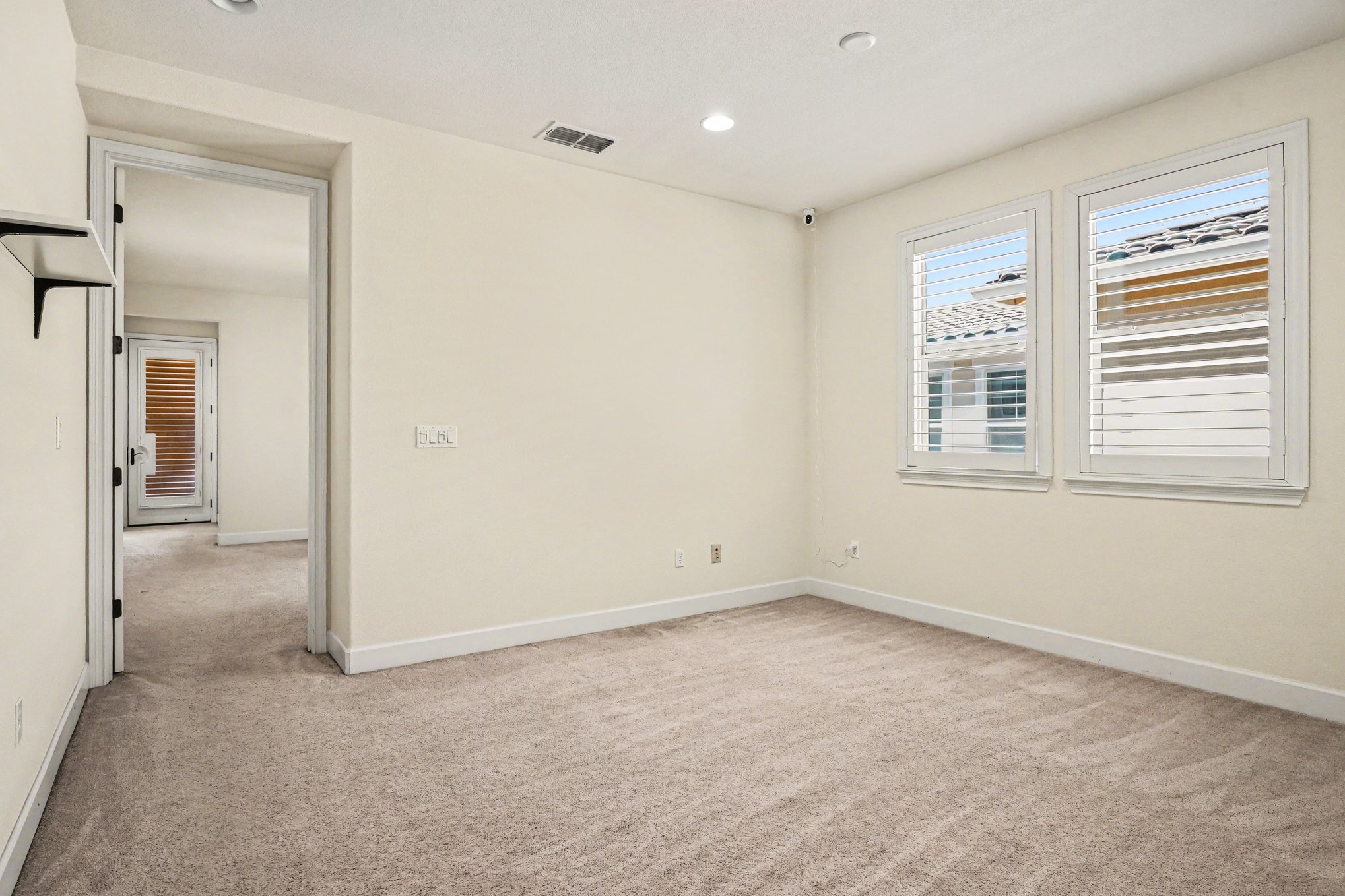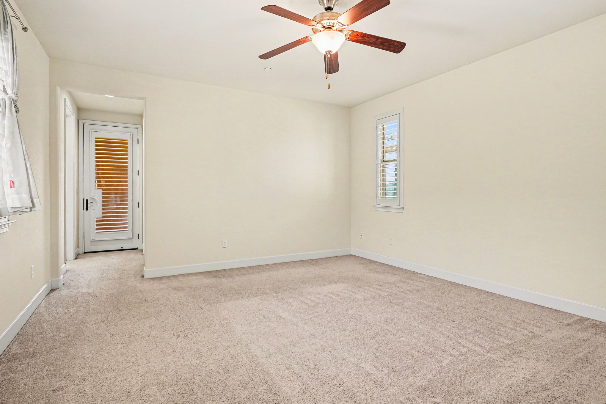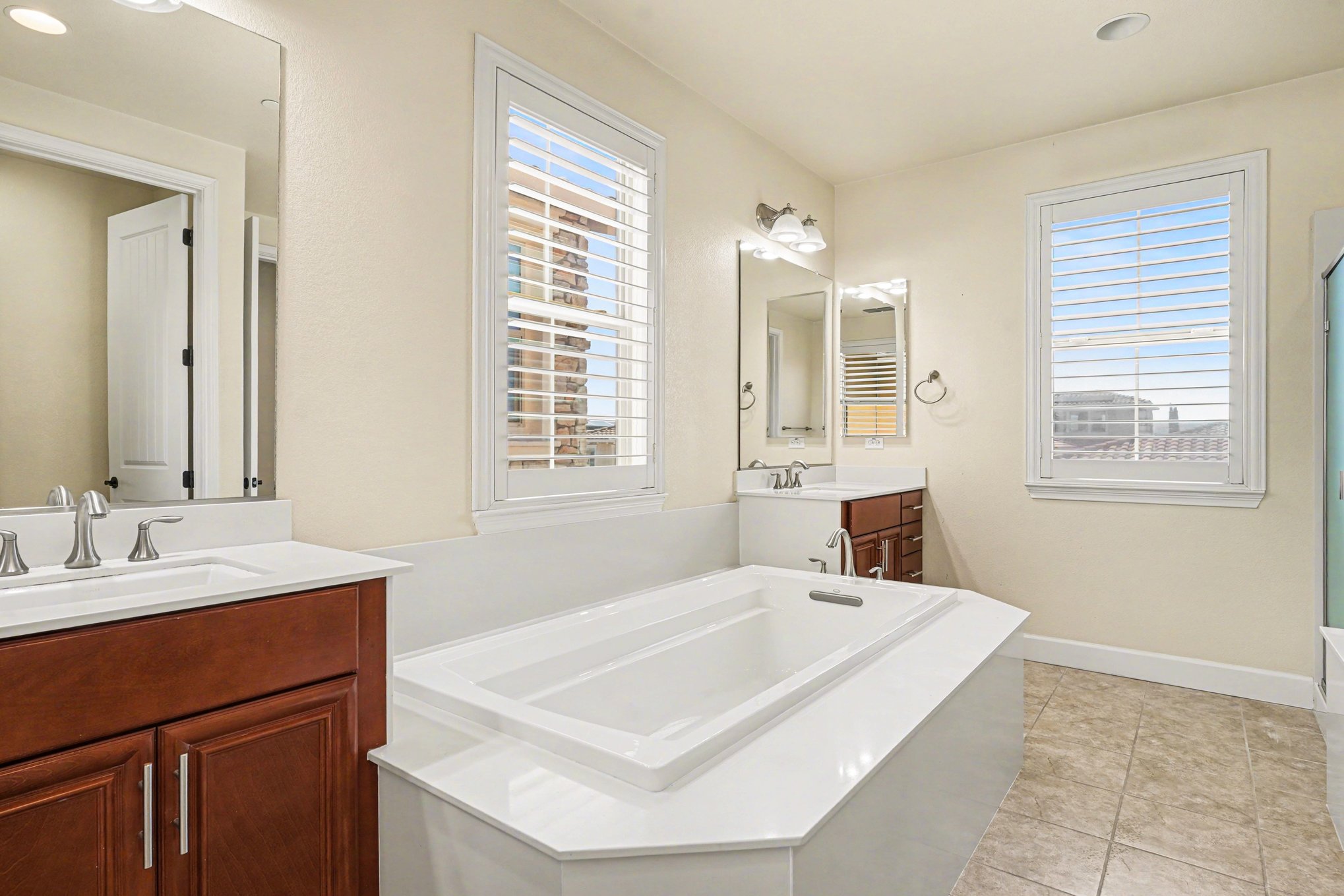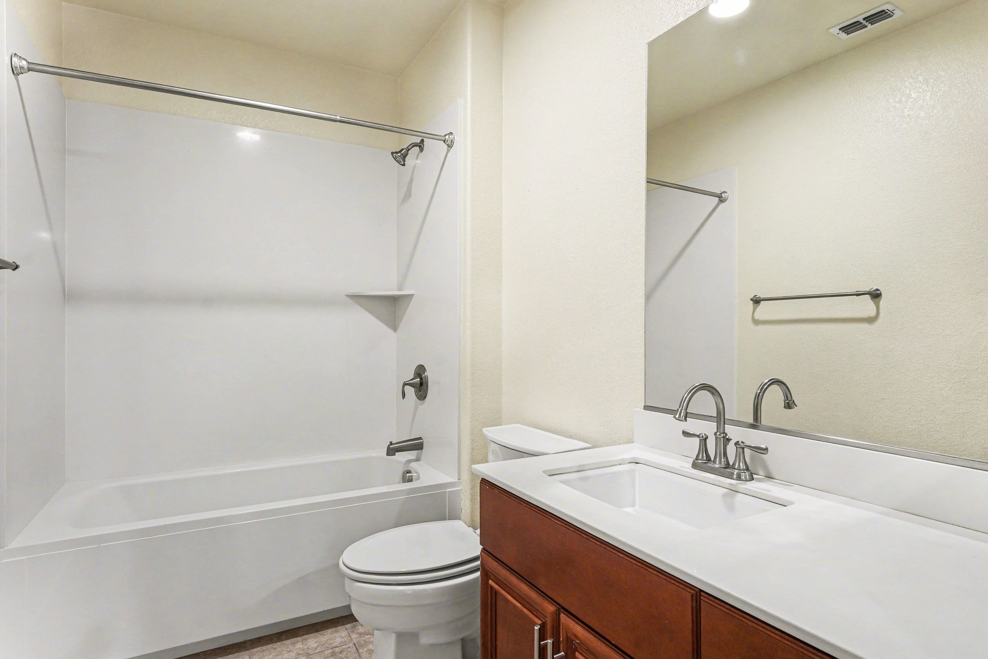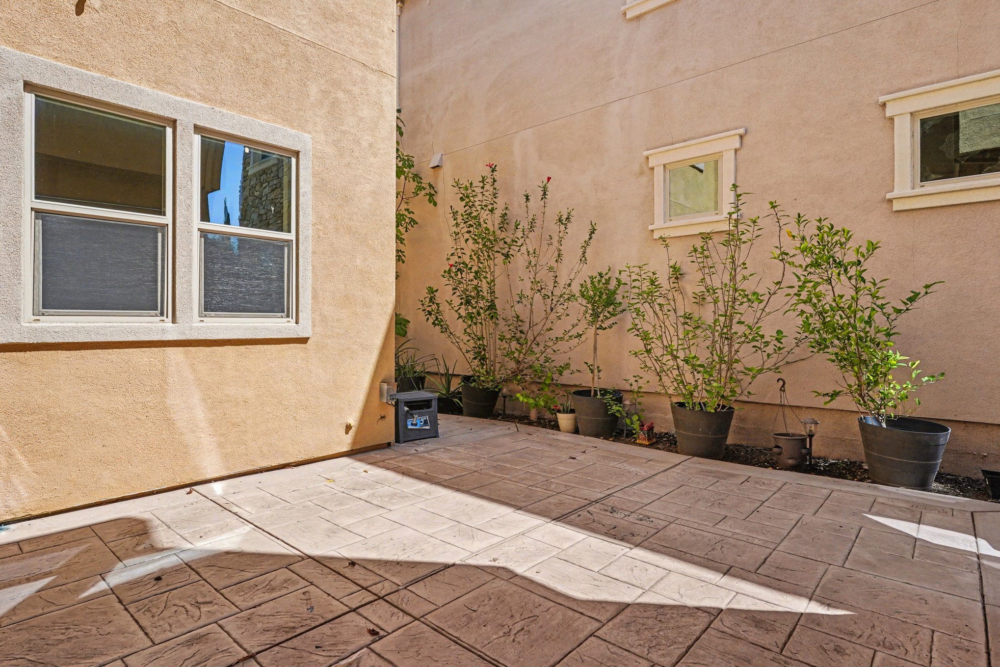This Mediterranean-style residence blends classic stucco walls with a clay tile roof, creating an inviting and elegant curb appeal. The arched entryway welcomes you into a spacious interior filled with natural light, accentuated by multiple windows dressed with plantation shutters. Hardwood floors extend through the open living area, where ceiling fans add comfort and a graceful stairway connects the home’s levels. The well-appointed bedrooms combine carpet and vinyl flooring for a cozy yet practical feel, each outfitted with carefully placed windows to balance privacy and illumination. The primary suite offers ample space paired with a luxurious bathroom featuring a large soaking tub and neutral tile flooring, complemented by modern fixtures and large mirrors that enhance brightness throughout the home. Outdoor living shines in the private, gated courtyard paved and accented with planter pots, perfect for relaxing or entertaining. The covered balcony with decorative ironwork offers an elevated retreat. Thoughtful touches include decorative window shutters and an exterior security camera for peace of mind. Nestled in a vibrant Dublin neighborhood, this home offers a balanced lifestyle with easy access to everyday conveniences and a welcoming community atmosphere. *Our homes come as-is with all essentials in working order. Want upgrades? Request it through the Belong app, and our trusted pros will take care of the rest!
