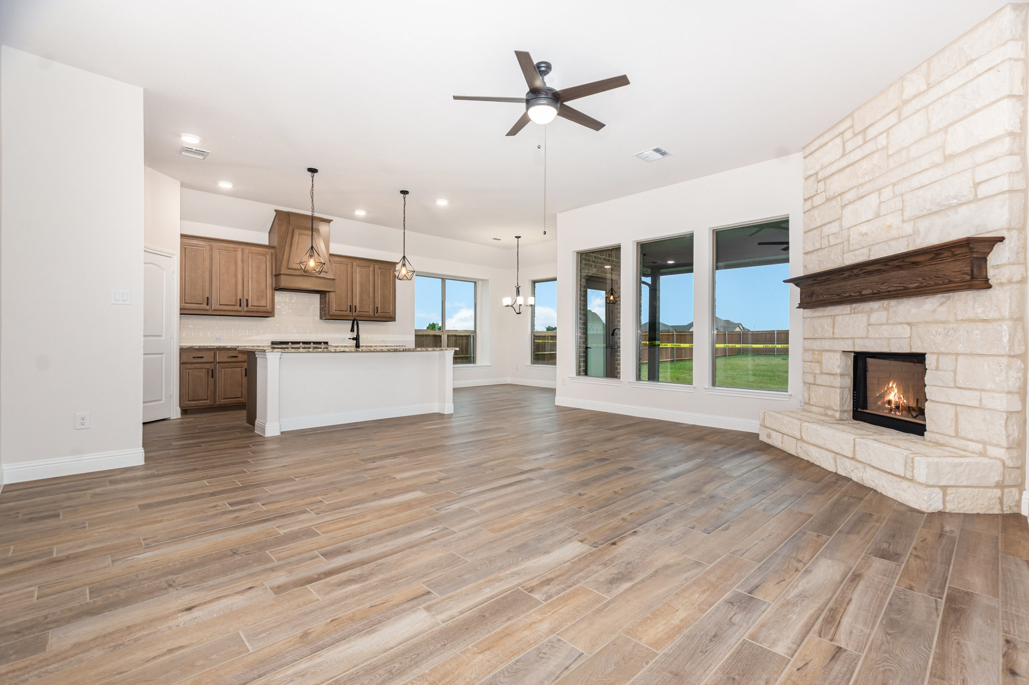 A bright living area welcomes you with large windows, warm flooring, and a stone fireplace that naturally becomes the room’s focal point. It is an inviting place to unwind, enjoy quiet evenings, or gather with people you love. From there, the layout opens into the kitchen and dining area, creating a comfortable setting for mealtimes and conversation. Generous counter space, ample cabinetry, and a spacious island make cooking feel relaxed and organized, while nearby windows bring in backyard views and natural light that keeps the space cheerful throughout the day. Four bedrooms support the lifestyle you choose, offering room for sleep, study, guests, or a dedicated home office. Your main bedroom features an ensuite bath with a soaking tub, separate shower, and dual vanities, giving you a calm retreat at the end of the day. Up to two pets are welcome in this gorgeous home. A large private backyard extends your living space outdoors, offering plenty of room for play, gardening, or weekend barbecues. Daily routines stay convenient with an attached 2-car garage and additional driveway parking to give you easy arrivals and departures. Nestled in a new community in Forney, within a peaceful and quiet neighborhood, this home also places you close to daily essentials at Kroger, Walmart Supercenter, and H-E-B, as well as parks, dining, and recreation, such as the nearby Forney Community Park. *Fireplace is for decorative use only and cannot be used without consent from Belong. *Our homes come as-is with all essentials in working order. Want upgrades? Request it through the Belong app, and our trusted pros will take care of the rest!