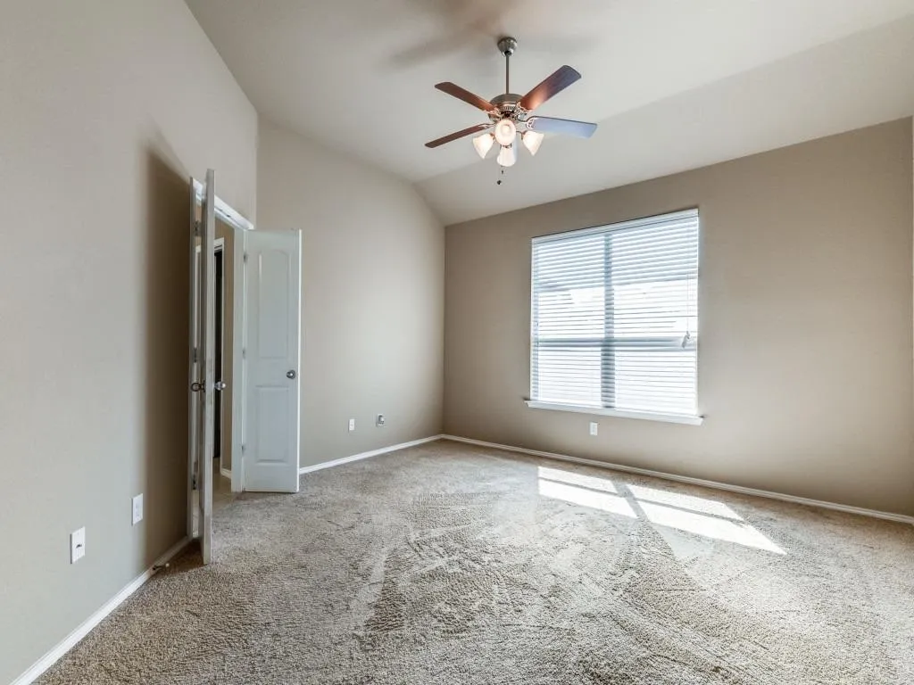 The main living area offers a wide footprint with soft carpeting underfoot, a ceiling fan overhead, and a fireplace positioned along one wall. Natural light enters through multiple windows and a rear door, supporting a bright and usable setting for seating arrangements or a media setup. An arched opening connects this space to the kitchen and dining areas, allowing for clear transitions between each zone. The kitchen is arranged with extensive cabinetry, ample counter space, and a central island that can be used for meal prep or casual seating. Stainless steel appliances, including a built-in microwave and dishwasher, are integrated into the layout. Nearby dining space sits beneath a dedicated light fixture and adjacent window, providing a defined area for daily meals. Located in the 76244 area, this home places everyday essentials nearby, including Tom Thumb and Walmart for groceries, Alliance Town Center for shopping and dining, and local parks such as Arcadia Trail Park for outdoor recreation. Fort Worth’s broader attractions, including Sundance Square and the Stockyards, remain within driving distance. *Fireplace is for decorative use only and cannot be used without consent from Belong. *Our homes come as-is with all essentials in working order. Want upgrades? Request it through the Belong app, and our trusted pros will take care of the rest!