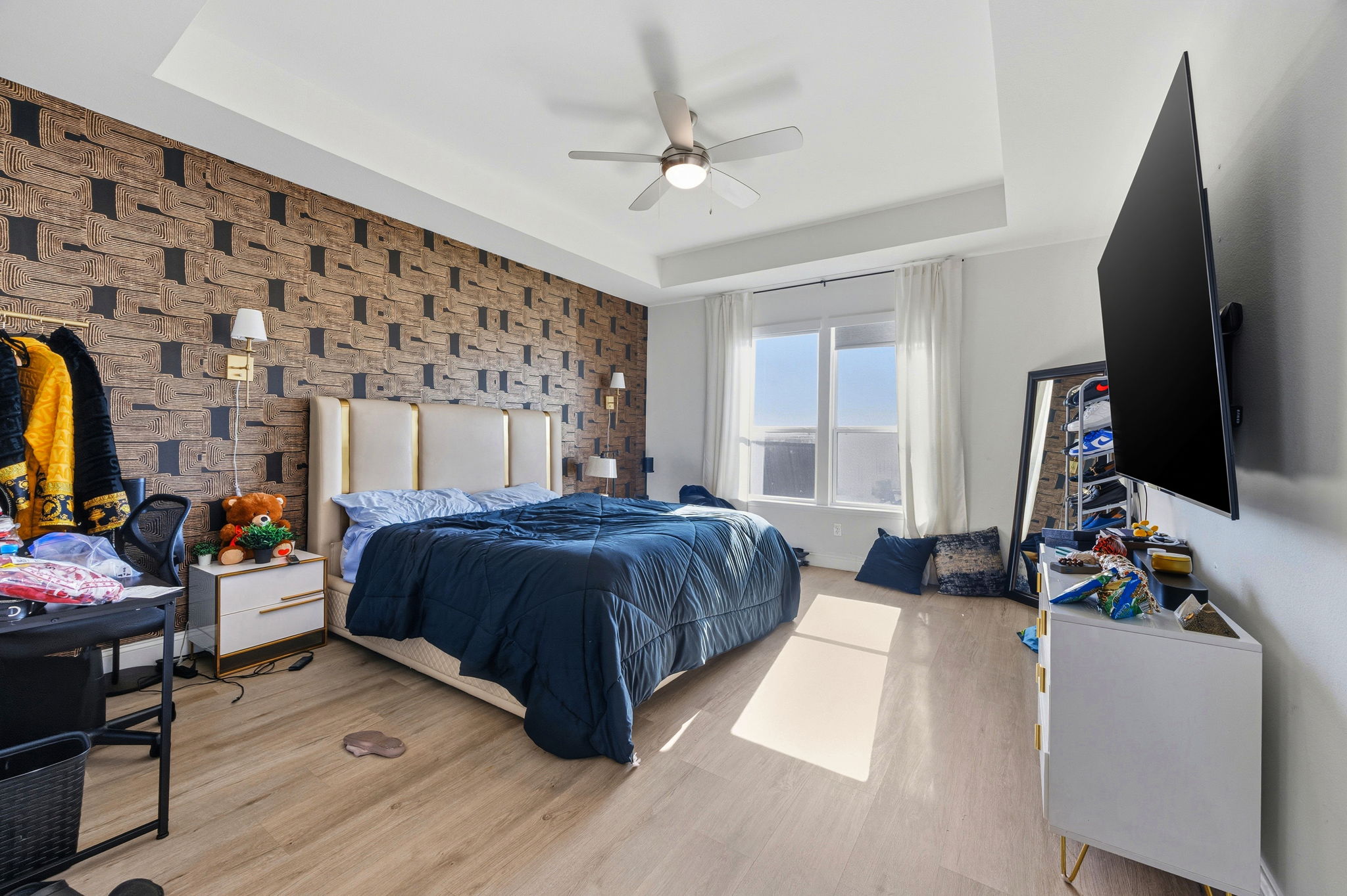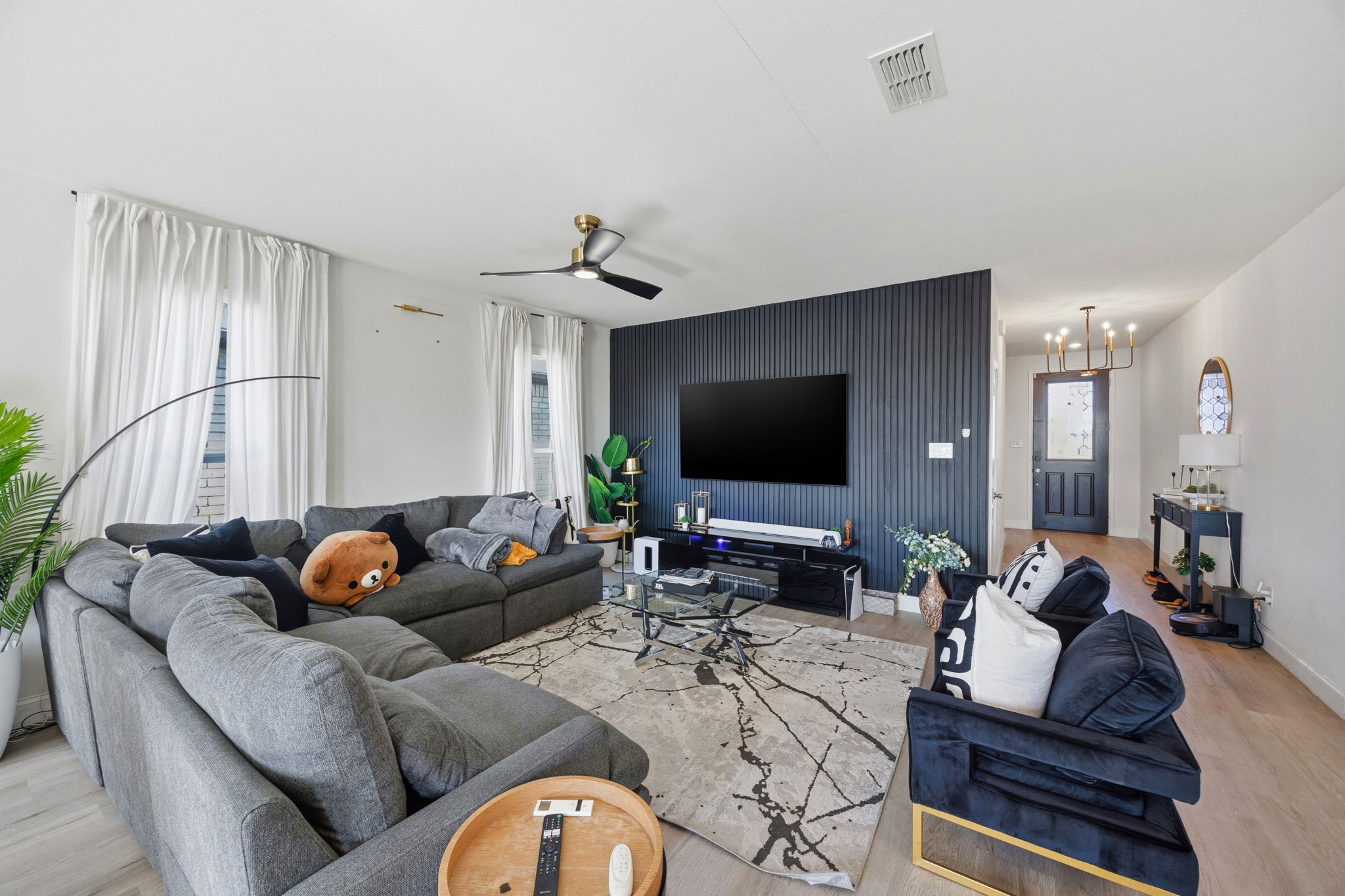 Modern furnishings and a thoughtfully designed layout set the tone throughout this 3-bedroom, 2-bath home, beautifully adorned with stylish décor and smart home features that support a connected, flexible lifestyle. The look is current and polished, making it a strong fit for professionals or families seeking a move-in-ready space with personality. The kitchen anchors the main living area with an oversized island that invites everything from casual breakfasts to evening conversations. Sleek cabinetry, ample counter space, and sleek lighting create a space that feels both functional and visually striking, while the open flow keeps everyday routines feeling easy and social. Furnishings throughout the home lean modern and intentional, balancing comfort with a refined, city-savvy aesthetic. Three well-proportioned bedrooms and two full baths provide privacy and versatility, whether you need room for guests, remote work, or a growing household. One pet dog is welcome in this lovely home. Nearby shopping and dining options include Alliance Town Center and Presidio Town Crossing, with grocery staples like Costco, Kroger, and H-E-B just minutes away. Cafes, casual eateries, and national favorites are easy to reach, while nearby parks and green spaces offer room to unwind when you want a break from the buzz. This location keeps you connected while still offering a comfortable place to land at the end of the day. *Our homes come as-is with all essentials in working order. Want upgrades? Request it through the Belong app, and our trusted pros will take care of the rest. *This home is available for future residents unfurnished.