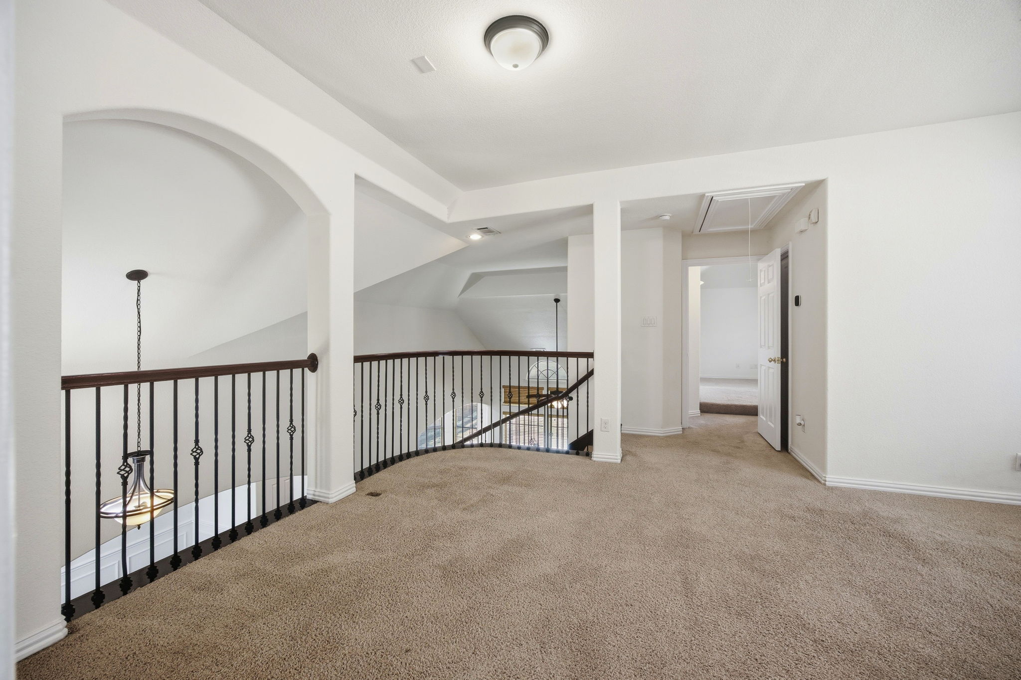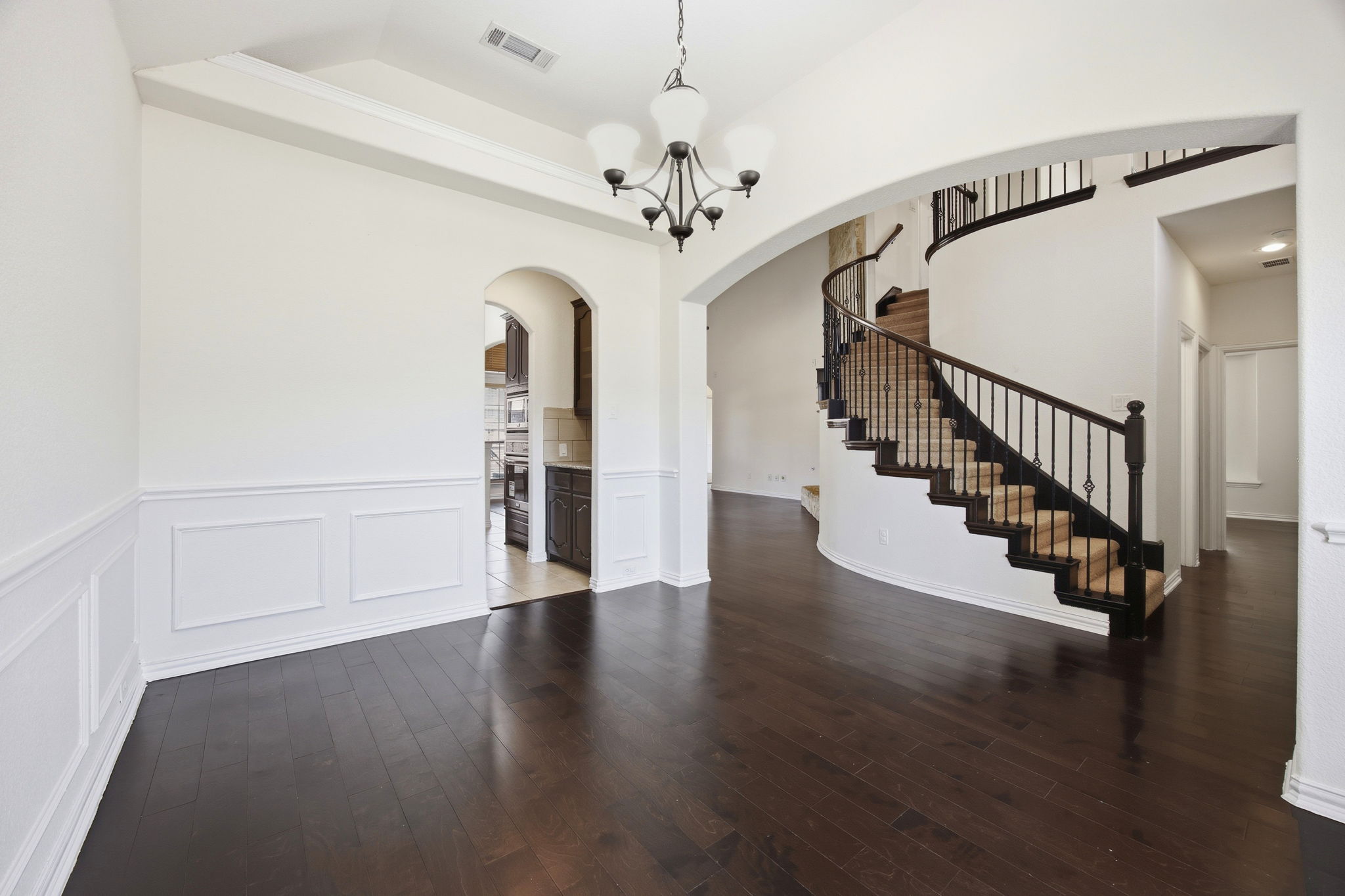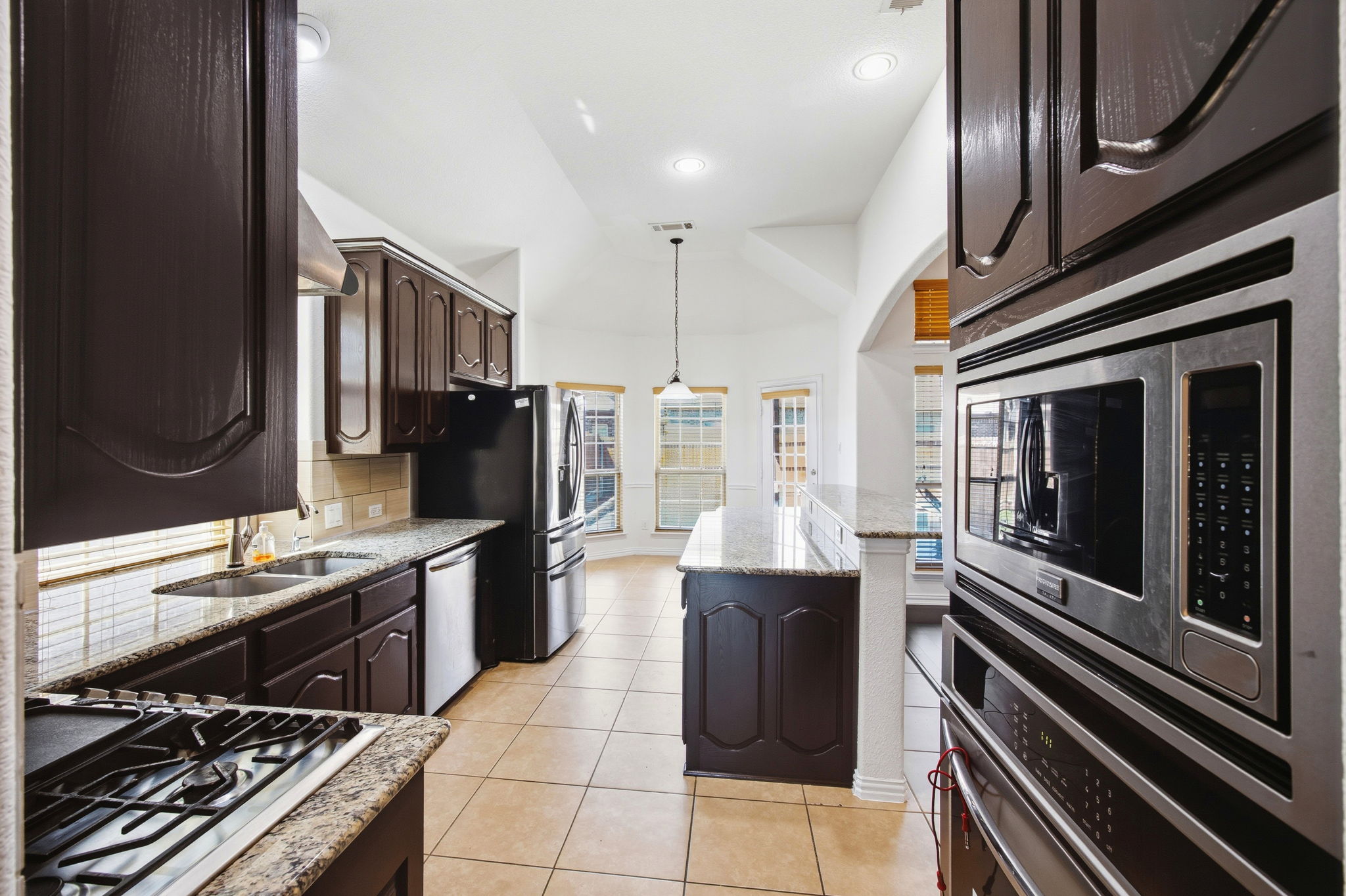 Soaring ceilings, rich wood flooring, and a full-height stone fireplace immediately set this 4-bedroom, 2.5-bath home apart. There’s a sense of volume here that’s hard to miss. Light filters in through tall windows, while ceiling fans above keep the space comfortable year-round. The main living area offers plenty of room to spread out, whether you’re setting up a media zone or creating a more relaxed seating arrangement. That stone fireplace anchors the space visually, adding character without overwhelming it. Just off to the side, a separate dining area framed by large windows brings in even more natural light and gives you a dedicated place for meals or gatherings. An arched opening leads into the kitchen, where you’ll find extensive cabinetry, generous counter space, and stainless steel appliances. Its central island provides additional prep room and a natural spot to gather. Nearby, the breakfast nook sits beside tall windows, making everyday meals feel a little brighter. Upstairs, a lofted area opens up possibilities - a second living space, a workspace, or a casual hangout. The dedicated home theater adds another layer of flexibility, perfect for movie nights or game days. Set in a quiet, comfortable neighborhood, this home offers a great place to walk and unwind. Daily errands are easy with Alliance Town Center, Walmart, and H-E-B nearby, along with restaurants, cafés, and quick access to I-35W for commuting. *Fireplace is for decorative use only and cannot be used without consent from Belong. *Our homes come as-is with all essentials in working order. Want upgrades? Request it through the Belong app, and our trusted pros will take care of the rest!