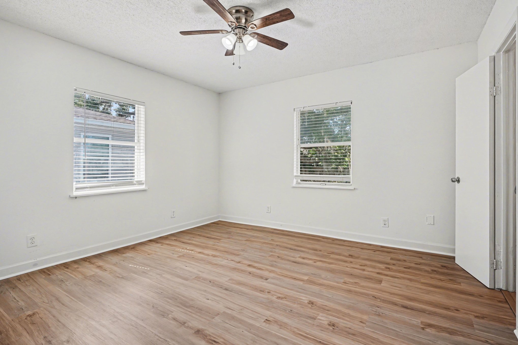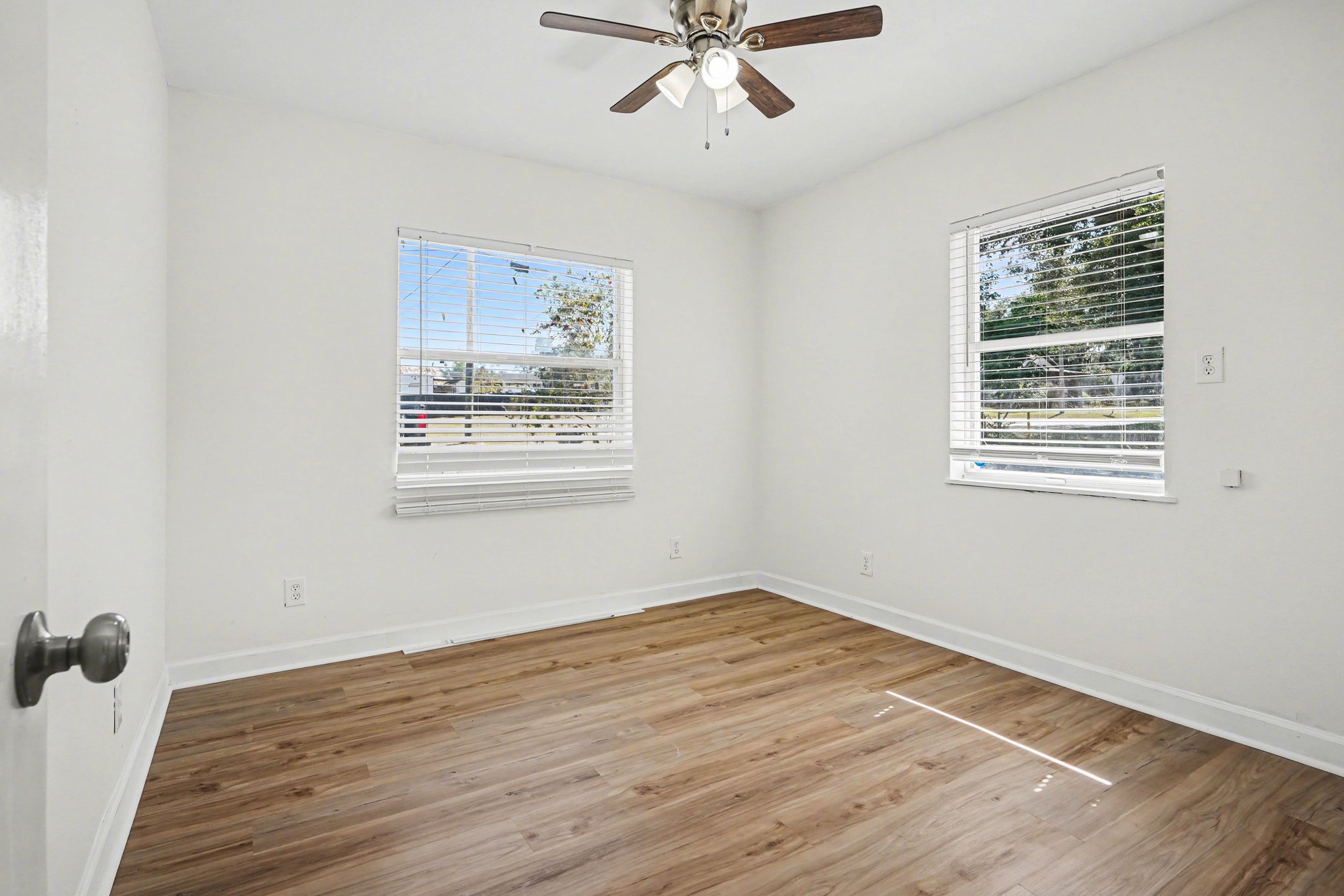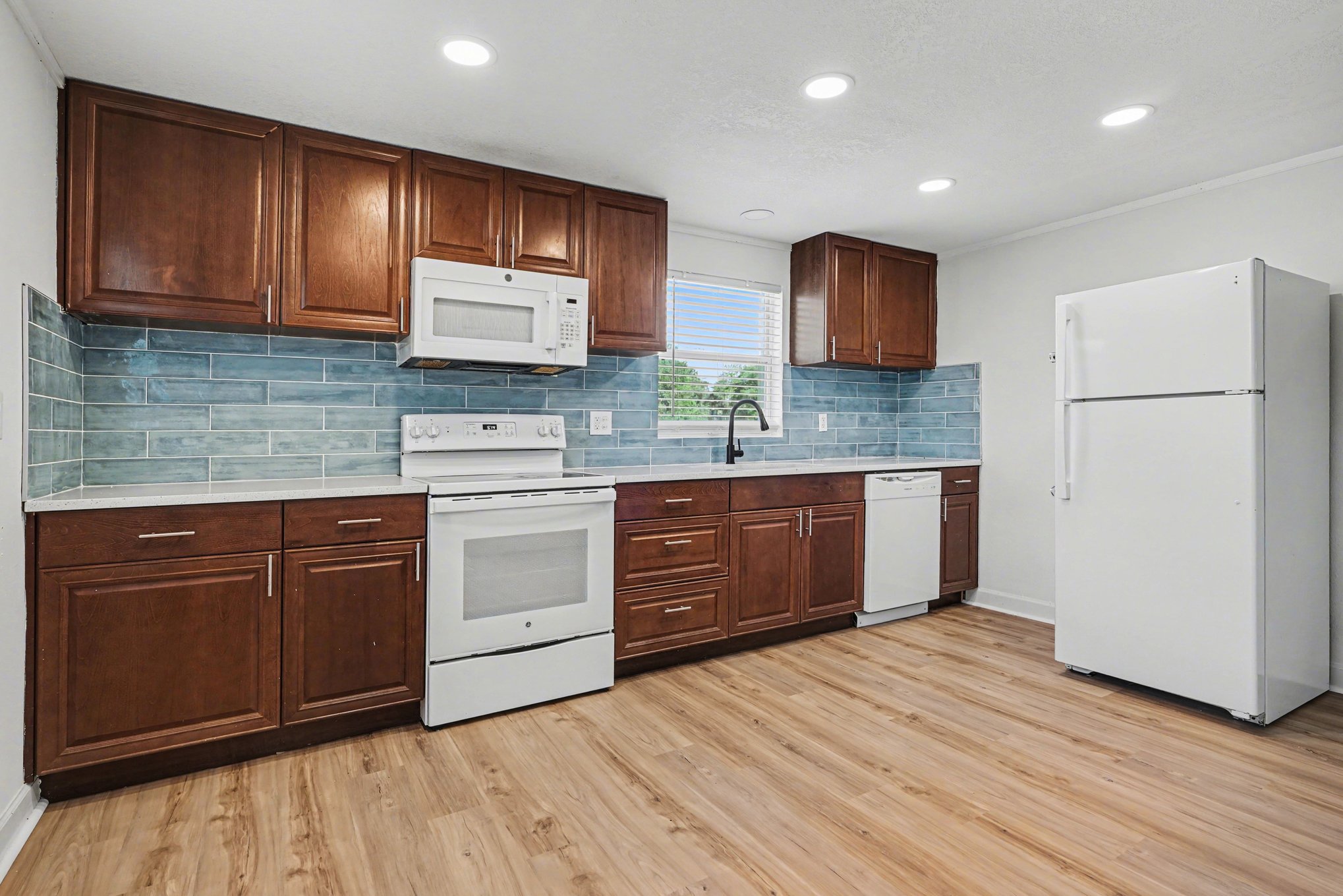 This freshly updated three-bedroom, two-bath home in Frostproof offers 1,326 square feet of comfortable living with a timeless Florida ranch style. The light blue-gray exterior and screened front porch welcome you to a spacious, well-maintained setting framed by mature trees draped in hanging moss. A covered carport along the asphalt driveway provides convenient shelter for your vehicle. Inside, the open layout is bright and airy with recessed lighting and multiple windows fitted with blinds. Wood-look laminate flooring flows throughout the living spaces, complementing the warm wood-stained cabinetry in the kitchen. Modern gray tile backsplash and clean white appliances blend functionality with understated style. Each bedroom features fresh paint, ceiling fans, and ample closet space for added convenience. Two full bathrooms ensure practical comfort for family or guests. Outside, generous grassy areas offer room to enjoy Florida’s climate, partially fenced for privacy and bordered by minimal landscaping that invites your personal touch. Set in a peaceful residential area, this home balances quiet suburban living with easy access to daily essentials. Experience the charm of a classic ranch home updated for today’s lifestyle. *Our homes come as-is with all essentials in working order. Want upgrades? Request it through the Belong app, and our trusted pros will take care of the rest!
