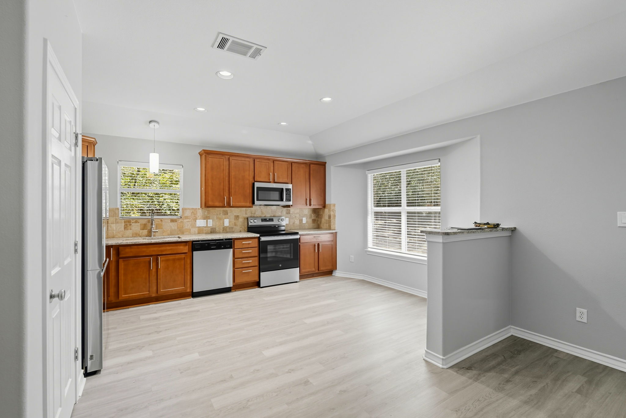 Welcome to a light-filled Georgetown home with 3 bedrooms, 2 bathrooms, and inviting spaces designed for both comfort and ease! A spacious living area serves as the centerpiece, complete with a fireplace that adds warmth and character. Neutral tones, recessed lighting, and an overhead fan create a fresh, modern feel, while sliding glass doors connect you to the outdoors with ease. Central A/C ensures steady comfort, even on the warmest days. Your kitchen offers style and function with stainless steel appliances, abundant cabinet space, and a practical layout that makes cooking and cleanup simple. A dining nook framed by large windows brings in natural light, creating a cheerful spot for everyday meals or relaxed conversation. Living in this Serenada Drive location means being close to everything that makes Georgetown shine. H-E-B and Walmart are just minutes away for quick grocery runs, while local favorites along Williams Drive offer dining options from casual bites to Texas-style barbecue. San Gabriel Park and Lake Georgetown invite you to enjoy hiking, fishing, and outdoor fun, while easy access to I-35 simplifies commutes to Austin and beyond. *Fireplace is for decorative use only and cannot be used without consent from Belong. *Our homes come as-is with all essentials in working order. Want upgrades? Request it through the Belong app, and our trusted pros will take care of the rest!