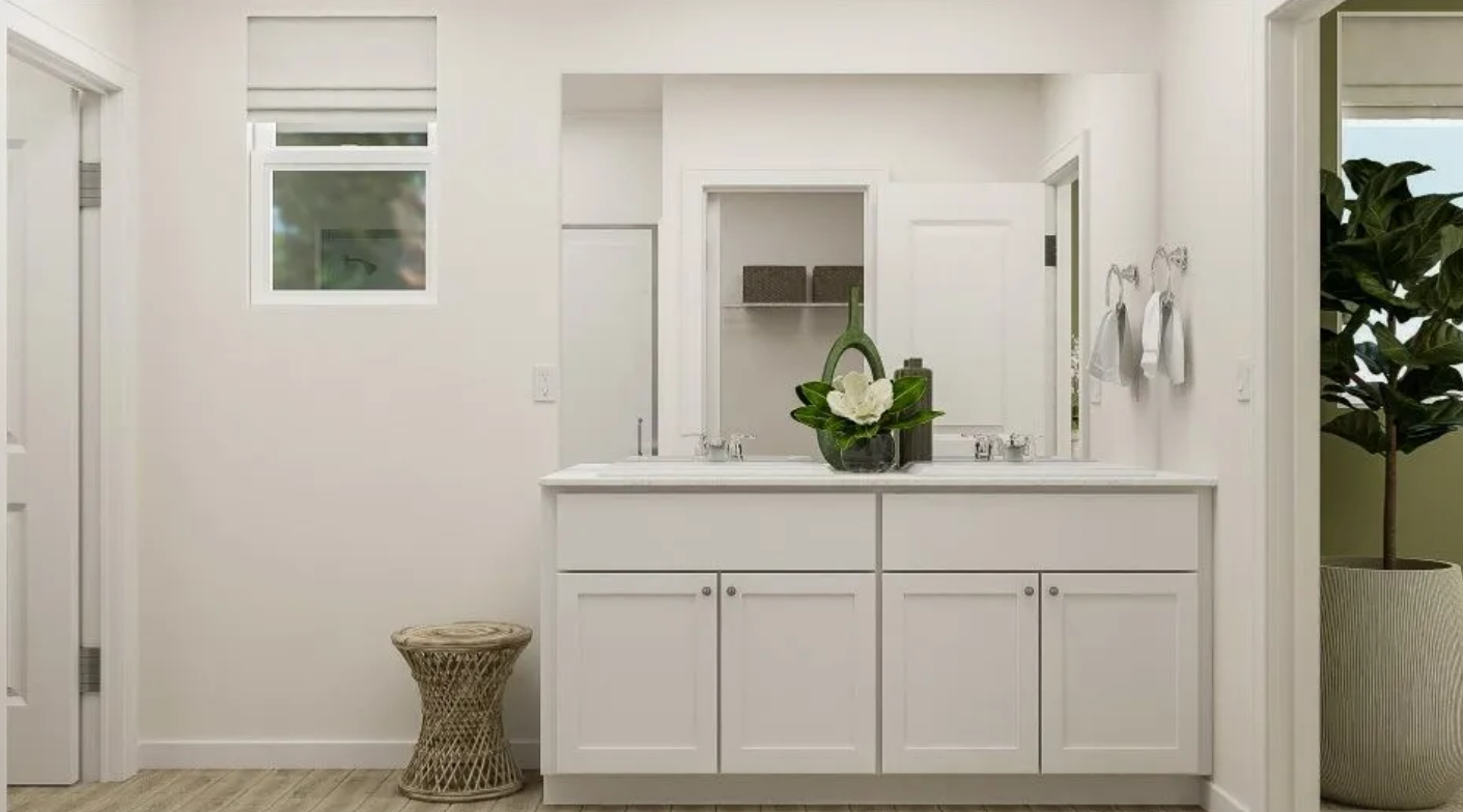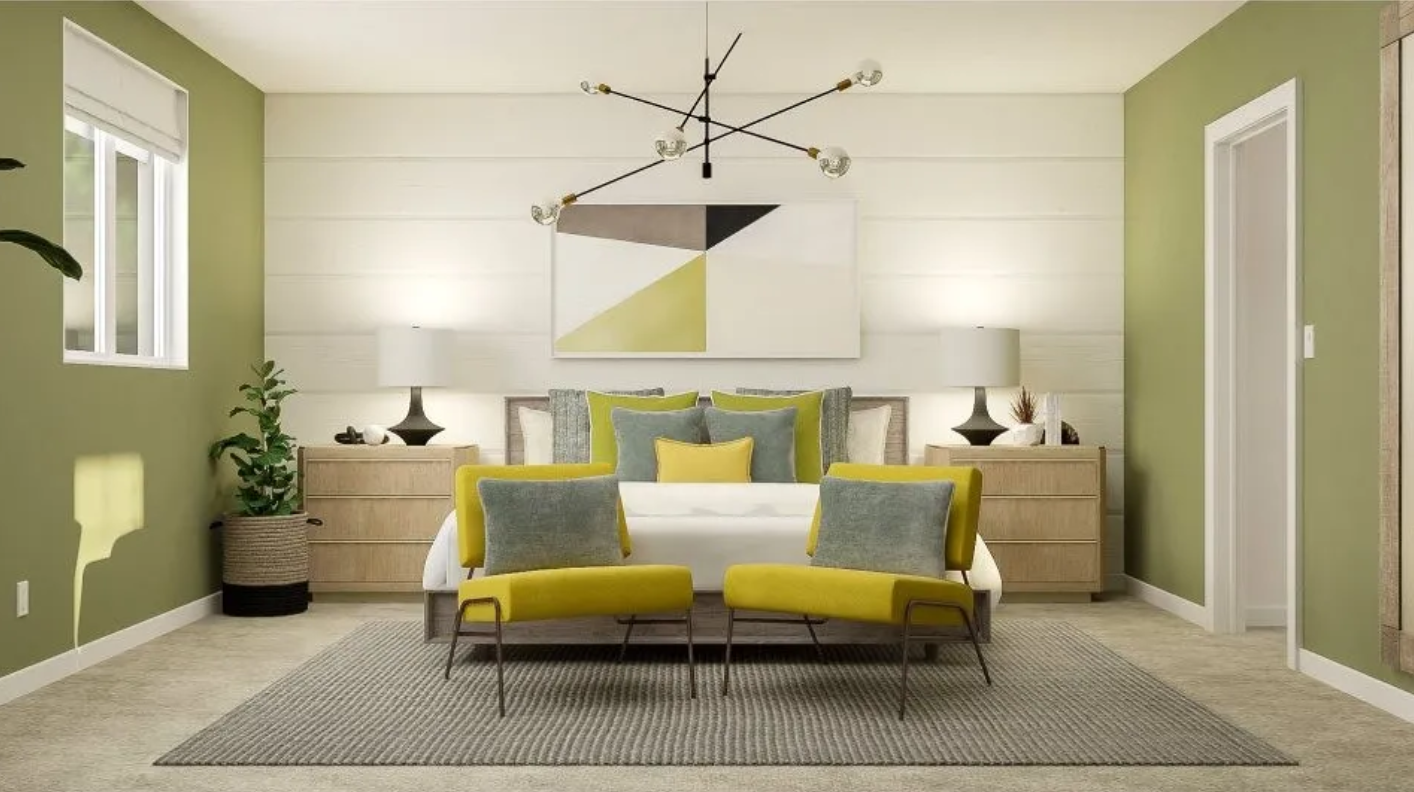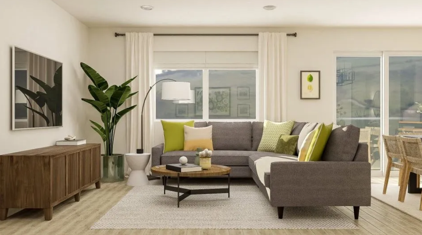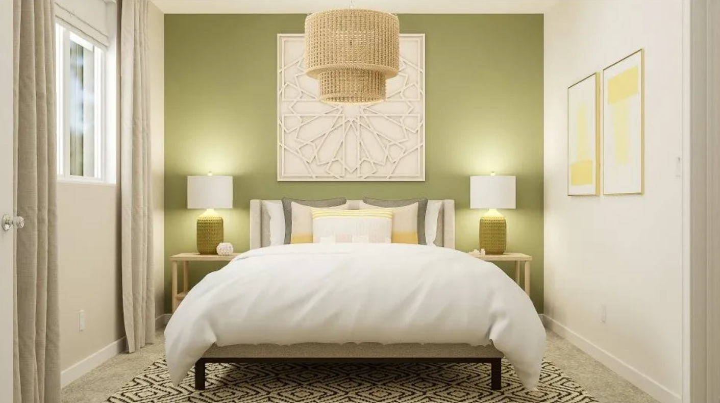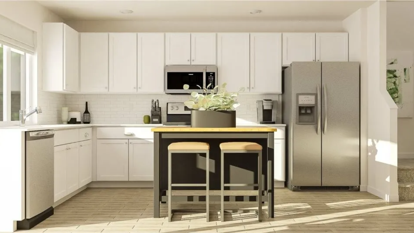 This contemporary three-bedroom, two-and-a-half-bath home blends modern farmhouse charm with thoughtful design across 1,881 square feet. Its striking two-story facade pairs board and batten siding on the upper level with clean horizontal lap below, complemented by a three-car garage featuring dark paneled doors and a neatly landscaped front yard. Inside, the open living space welcomes natural light through large windows and a sliding glass door that opens to the manicured lawn. Soft wood-look flooring runs throughout, uniting the living room’s sectional sofa and wood console with the central kitchen island. The kitchen stands out with white cabinetry, a farmhouse sink, stainless steel appliances, and a subway tile backsplash, offering both style and function with seating for two at the island. Each bedroom is carpeted for comfort, with the primary suite and additional bedrooms featuring green accent walls and ample natural light. A charming nursery rounds out the sleeping spaces, providing flexibility for growing families. Two full bathrooms and a powder room reinforce everyday convenience. Set in a peaceful residential area, this home delivers a refined, modern lifestyle close to everyday amenities. *Our homes come as-is with all essentials in working order. Want upgrades? Request it through the Belong app, and our trusted pros will take care of the rest!