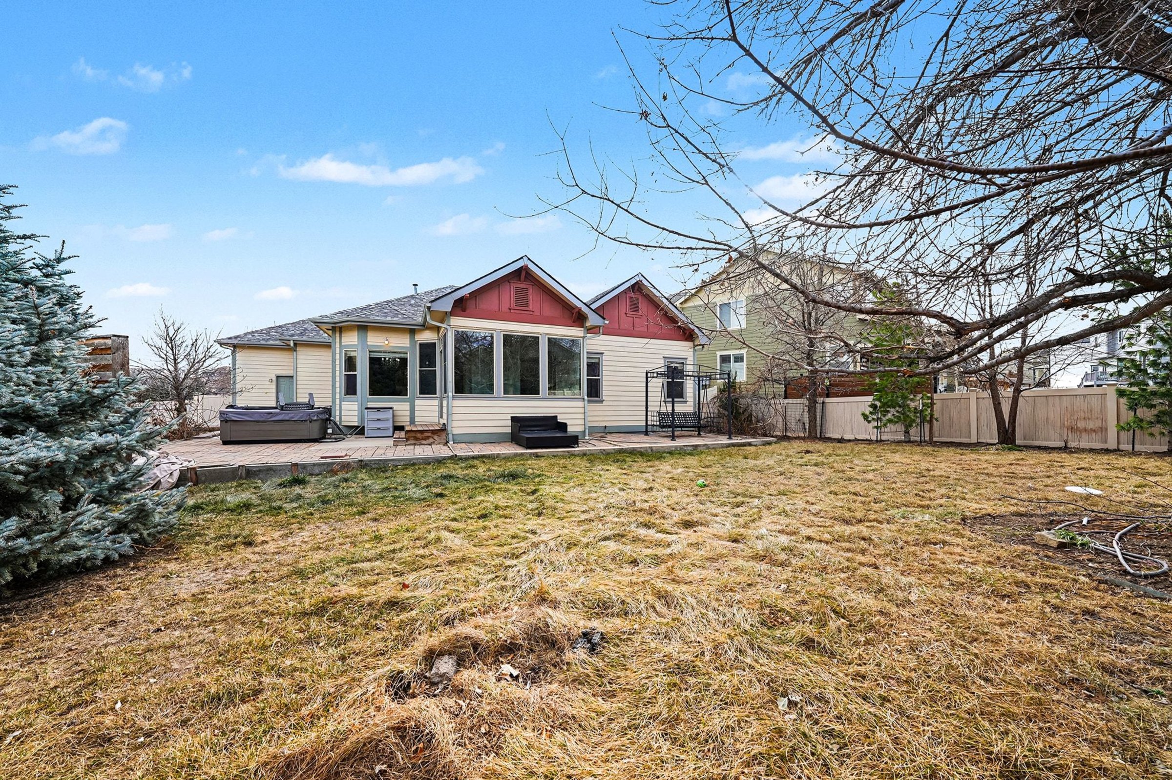 This spacious 3-bedroom, 2-bath home delivers room to spread out with an impressive 3,102 square feet of living space, all thoughtfully arranged on a single level. With only two steps to enter and exit, everyday movement feels easy and comfortable, while bright shared areas set an upbeat tone for daily life and casual gatherings. Living, dining, and kitchen spaces connect naturally, giving you plenty of flexibility for hosting, relaxing, or enjoying quiet evenings at home. The sunroom adds a bonus space where natural light pours in, creating a lovely spot for reading, hobbies, or surrounding yourself with greenery. Landscaping in the yard includes grapevines, raspberry bushes, a peach tree, a maple tree, assorted pine trees, and a tranquil water feature that adds a calming sound to the yard. An automatic sprinkler system helps keep everything looking its best. The 3-car garage includes a workbench, giving you space for projects, storage, or weekend tinkering. Tucked into a quiet, family-friendly cul-de-sac with minimal traffic, this location is known for great schools and a welcoming neighborhood feel. Nearby parks, local shopping, grocery stores, and everyday conveniences are all within easy reach, making this a place where comfort, space, and community come together beautifully. *Fireplace is for decorative use only and cannot be used without consent from Belong. *Our homes come as-is with all essentials in working order. Want upgrades? Request it through the Belong app, and our trusted pros will take care of the rest!