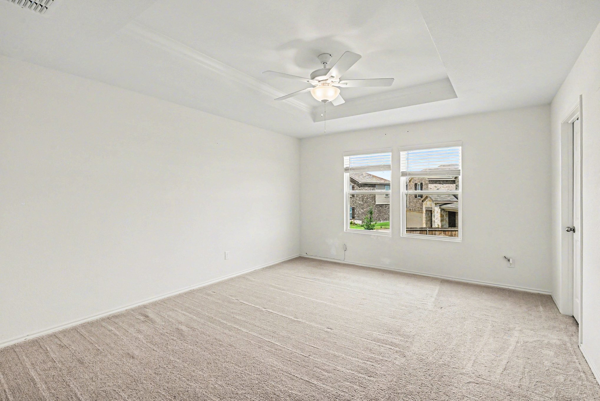 Tucked into a peaceful Haslet neighborhood, this four-bedroom, three-bath home offers 2,144 square feet of modern comfort and thoughtful design. A classic brick facade and attached two-car garage set a welcoming tone, while the expansive backyard provides a blank canvas for weekend gatherings, play, or simply unwinding outdoors. Step inside to an open-concept main floor where wood-style flooring flows beneath abundant natural light. The kitchen pairs crisp white cabinetry with light countertops and stainless steel appliances, anchored by a center island that doubles as a breakfast bar. Its seamless connection to the living and dining areas makes everyday life and entertaining feel effortless. Upstairs, the primary suite impresses with a tray ceiling, ceiling fan, and generous proportions, opening into a spa-inspired bath with a dual-sink vanity, walk-in shower, and spacious walk-in closet. Three additional bedrooms offer plush carpeting, ample closet space, and plenty of natural light, giving every resident room to settle in comfortably. A second full bath with a tub and shower combo serves the secondary bedrooms beautifully. Set in a growing community north of Fort Worth, the location delivers the best of suburban living with convenient access to nearby shopping, dining, and major commuter routes. *Our homes come as-is with all essentials in working order. Want upgrades? Request it through the Belong app, and our trusted pros will take care of the rest!