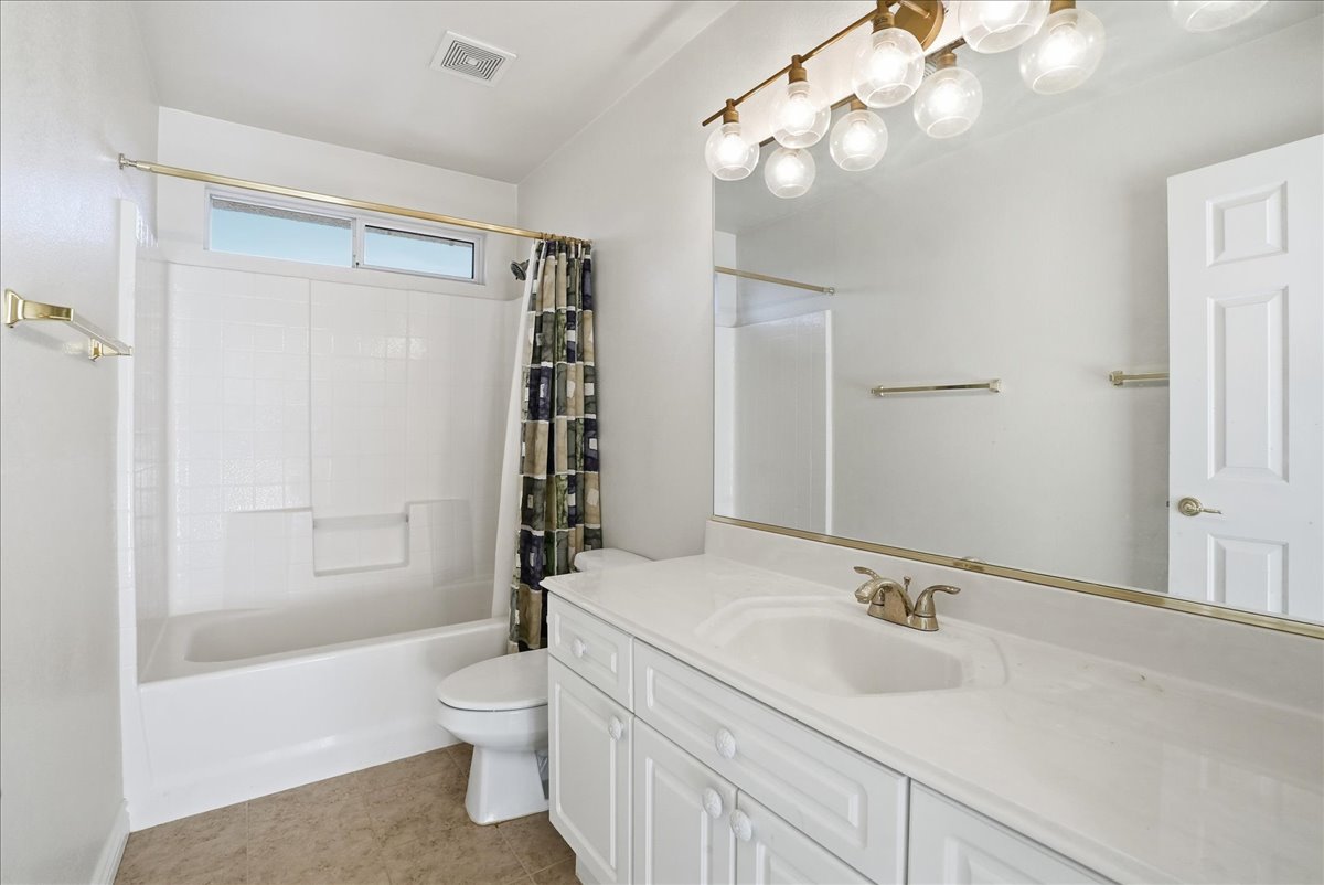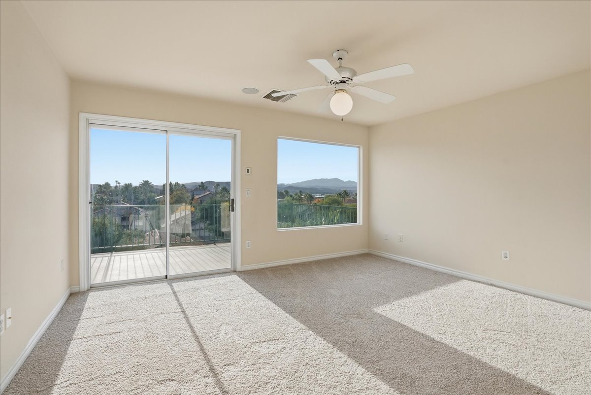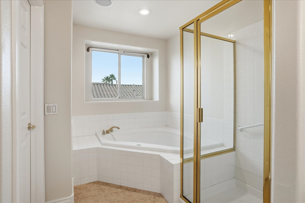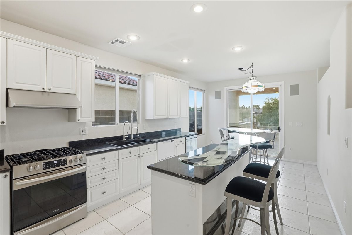 This gorgeous 5-bedroom, 3.5-bath home invites you into a setting designed for upscale living. Its outdoor spaces take center stage, offering a sparkling pool framed by clear sunset views, a built-in grill station, and generous covered areas for lounging or dining al fresco. The living area blends comfort and sophistication with wood-tone flooring, a ceiling fan, and a fireplace surrounded by clean tile lines. Nearby, the kitchen provides abundant cabinet storage, sleek counters, and stainless-steel appliances, along with an island layout that supports both hosting and day-to-day ease. A dedicated wine cellar adds another layer of luxury, offering the perfect spot to store your favorite bottles in style. Two full primary suites offer impressive flexibility. One suite sits on the main level, with direct access to the pool deck and soft carpet underfoot. Its ensuite includes a spacious shower, dual sinks, and a soaking tub by the window. Additional bedrooms are well sized, creating comfortable spaces for guests, work, or hobbies. This location places you moments from several conveniences, including The District at Green Valley Ranch, Whole Foods, Target, and a variety of cafes and restaurants. Parks such as Harmony Park and Paseo Vista Park are also close by, giving you inviting outdoor options for fresh air, recreation, and weekend strolls. *Fireplace is for decorative use only and cannot be used without consent from Belong. *Our homes come as-is with all essentials in working order. Want upgrades? Request it through the Belong app, and our trusted pros will take care of the rest!