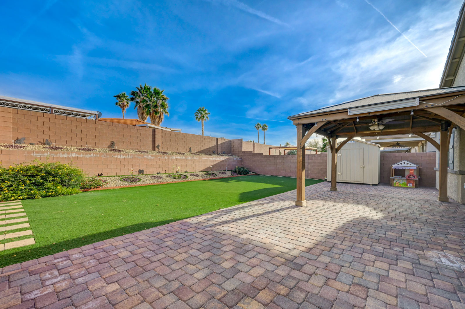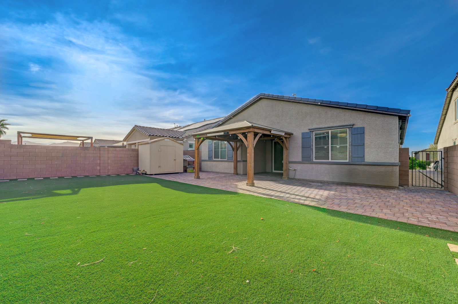 Thoughtful features such as an open main living area and durable tile flooring provide a calm, functional foundation for daily living in this 4-bedroom, 3-bath home. The living and dining areas connect easily, offering flexibility for everyday routines and casual gatherings. Natural light filters through the windows, and a modern ceiling fixture adds a polished touch without overwhelming the space. The kitchen is designed with practicality in mind, offering ample cabinetry, a spacious island that works well for prep or casual meals, and stainless steel appliances that support everyday cooking. Its placement supports smooth movement between cooking, dining, and living zones. An attached garage offers secure parking and additional storage, with clean finishes and direct interior access. Out back, a paved patio sits beneath a wood pergola, creating a defined outdoor area for relaxing or entertaining. Set in Henderson, this home is close to everyday conveniences. Grocery options like Smith’s, Albertsons, and Sprouts are nearby, with shopping and dining at Galleria at Sunset and The District at Green Valley Ranch. Cornerstone Park and Heritage Park provide trails, open space, and recreation just minutes away, rounding out a location that supports both convenience and balance. *Our homes come as-is with all essentials in working order. Want upgrades? Request it through the Belong app, and our trusted pros will take care of the rest.
