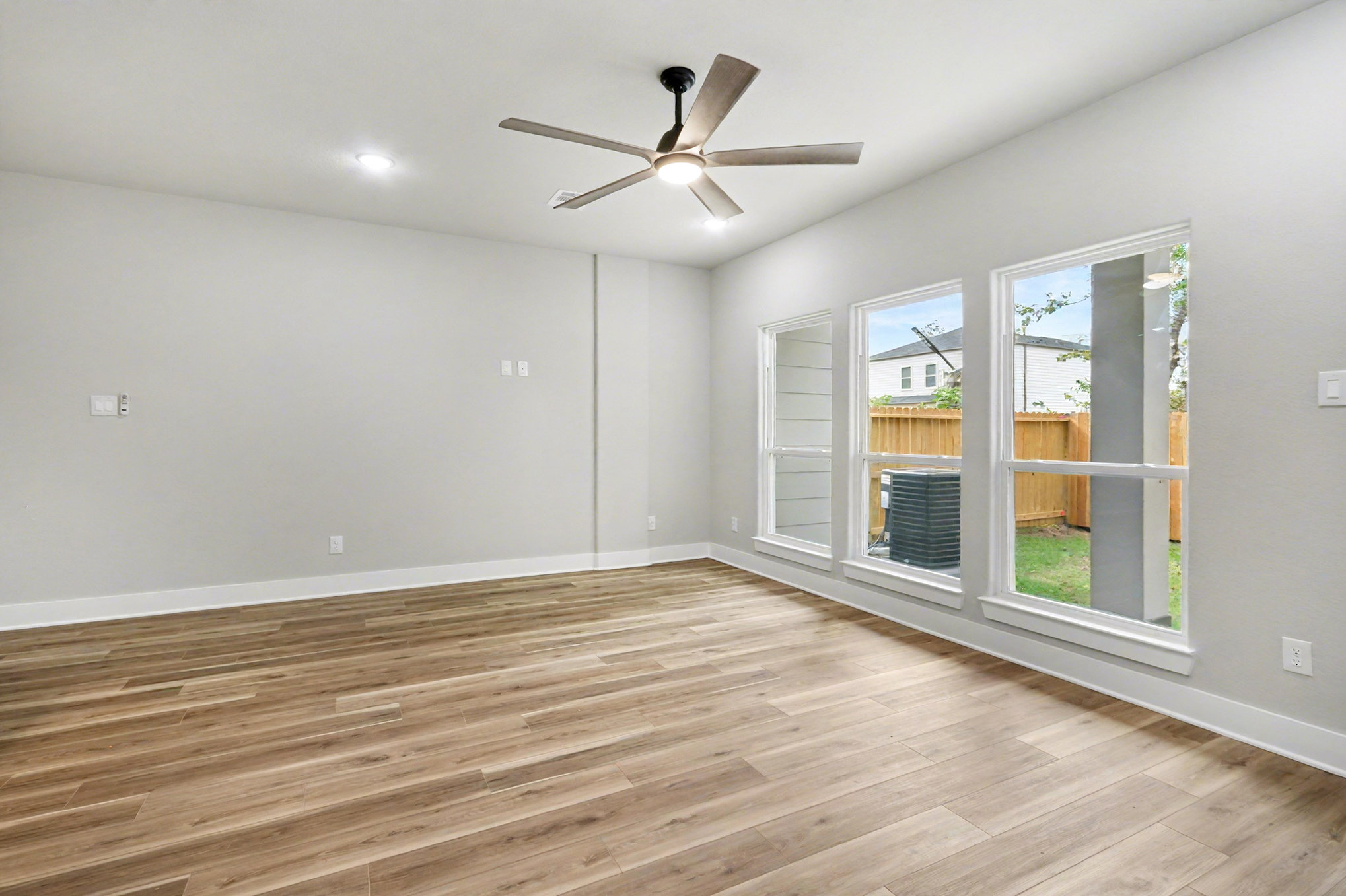 This home features an open living area with wide windows, recessed lighting, and wood-style flooring, creating a bright and comfortable central space. Its layout offers room for both relaxing and dining, with a clear view toward the fenced backyard. The kitchen is positioned just beside the living space and centers around a generous island that provides both workspace and casual seating. Stainless steel appliances, a clean tile backsplash, and well-crafted cabinetry offer a polished and practical setup for daily cooking. Three bedrooms provide private retreats and flexibility for personal needs, while 2.5 baths support smooth routines throughout the day. Laundry hookups are included, and both heat and A/C help keep the home comfortable in every season. Located with convenient access to everyday essentials and major Houston destinations, grocery trips to H-E-B are nearby, and Highway 288 connects directly to the Texas Medical Center, Downtown Houston, and the University of Houston. MacGregor Park offers open space for walks, exercise, and fresh air. *Our homes come as-is with all essentials in working order. Want upgrades? Request it through the Belong app, and our trusted pros will take care of the rest!