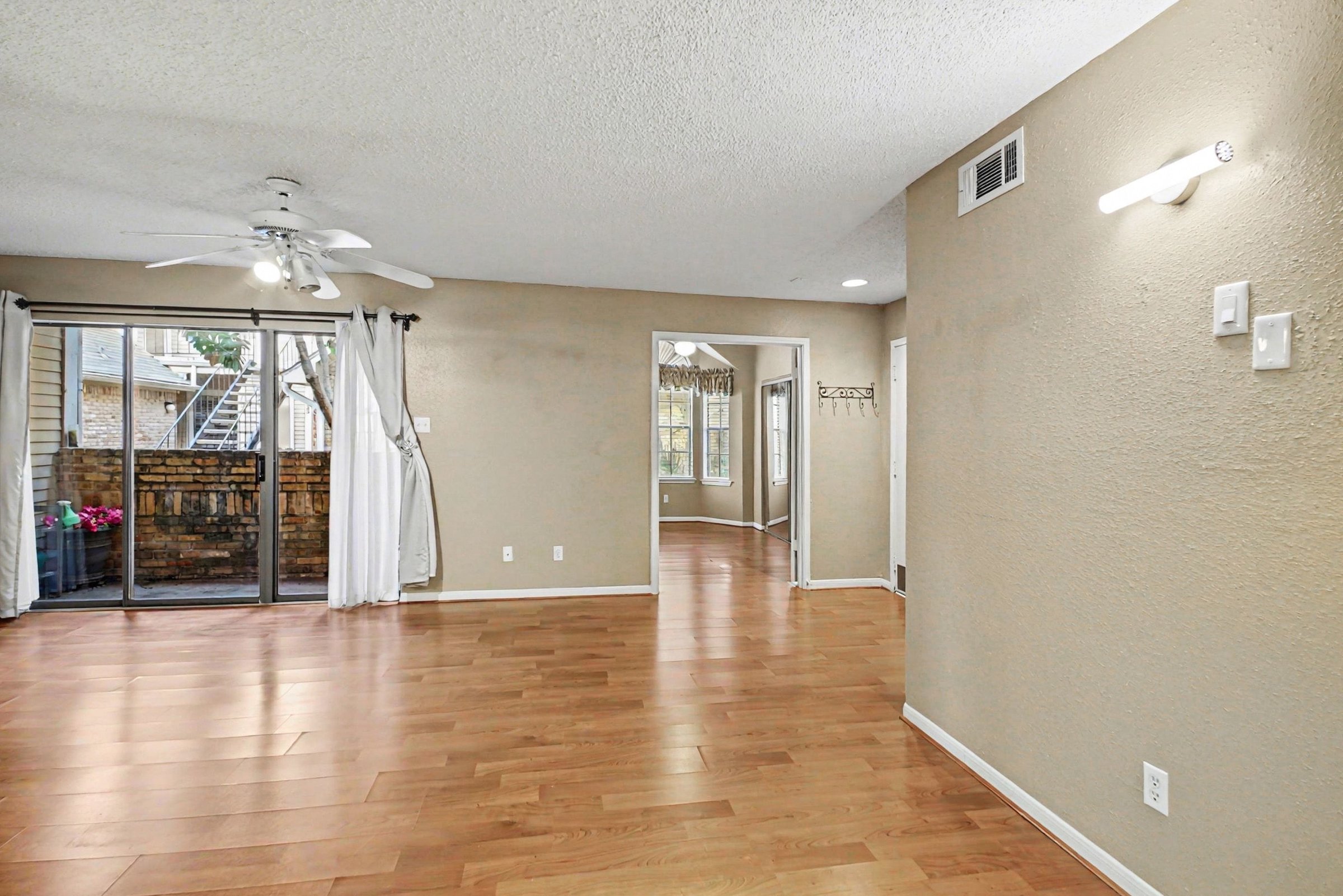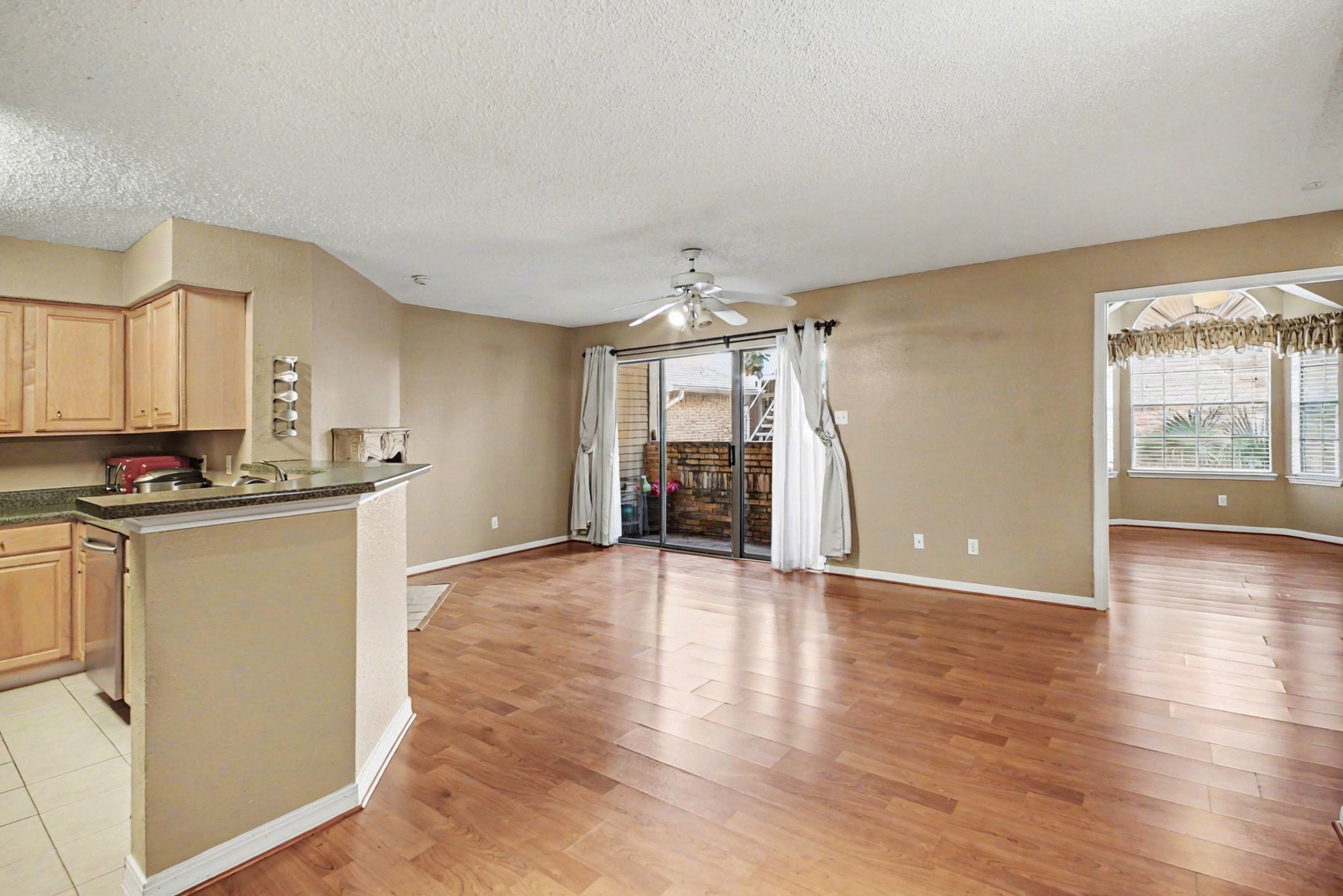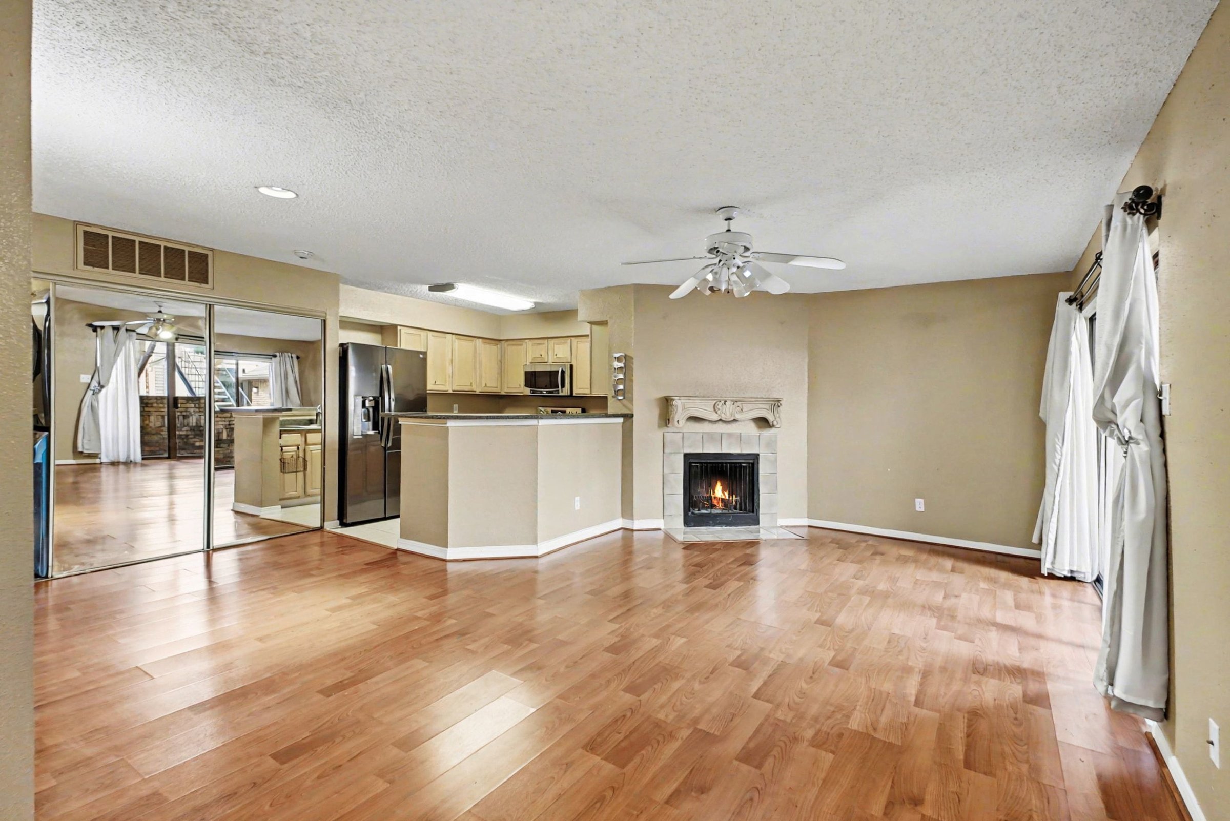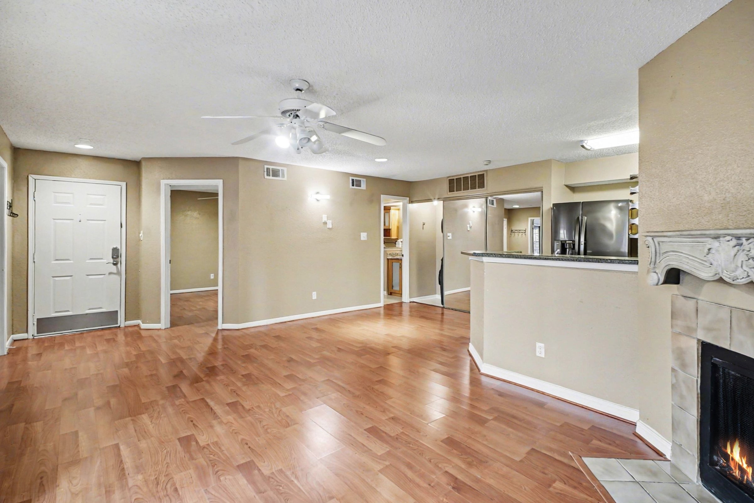 This 2-bedroom, 1-bath home offers a clear, practical layout in one of Houston’s most connected neighborhoods, giving you direct access to work, dining, and recreation across the city. Every space is defined with intention, creating a setup that’s easy to navigate and comfortable to maintain. An open living and dining area anchors the home, filled with natural light from wide windows and glass doors. Ceiling fan circulation and warm flooring help the space feel relaxed and usable throughout the day. A fireplace adds a distinctive focal point and brings character to the main gathering area. The kitchen is arranged for efficiency, with generous cabinet storage, extended counter space, and a full appliance set that includes a refrigerator, range, and built-in microwave. A raised breakfast bar connects directly to the living area and offers a nice spot for quick meals or casual seating. Positioned near Houston’s Medical Center, you’re minutes from Hermann Park, the Houston Zoo, and the Museum District. Nearby options like OST Plaza, Shops at Kirby Drive, and local dining spots keep essentials and outings close, while major employers such as Baylor College of Medicine and UT Health are easily accessible. *Fireplace is for decorative use only and cannot be used without consent from Belong. *Our homes come as-is with all essentials in working order. Want upgrades? Request it through the Belong app, and our trusted pros will take care of the rest!