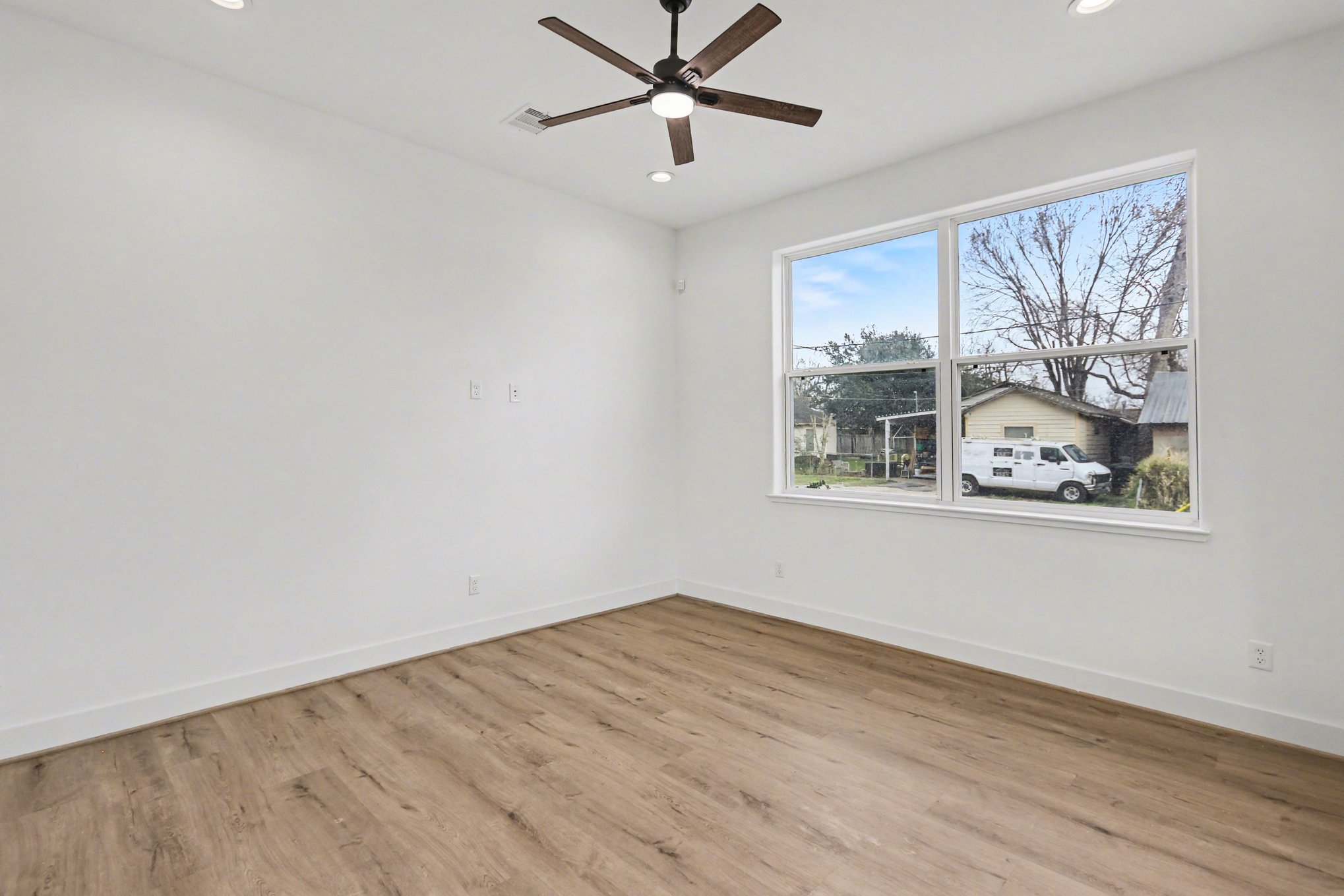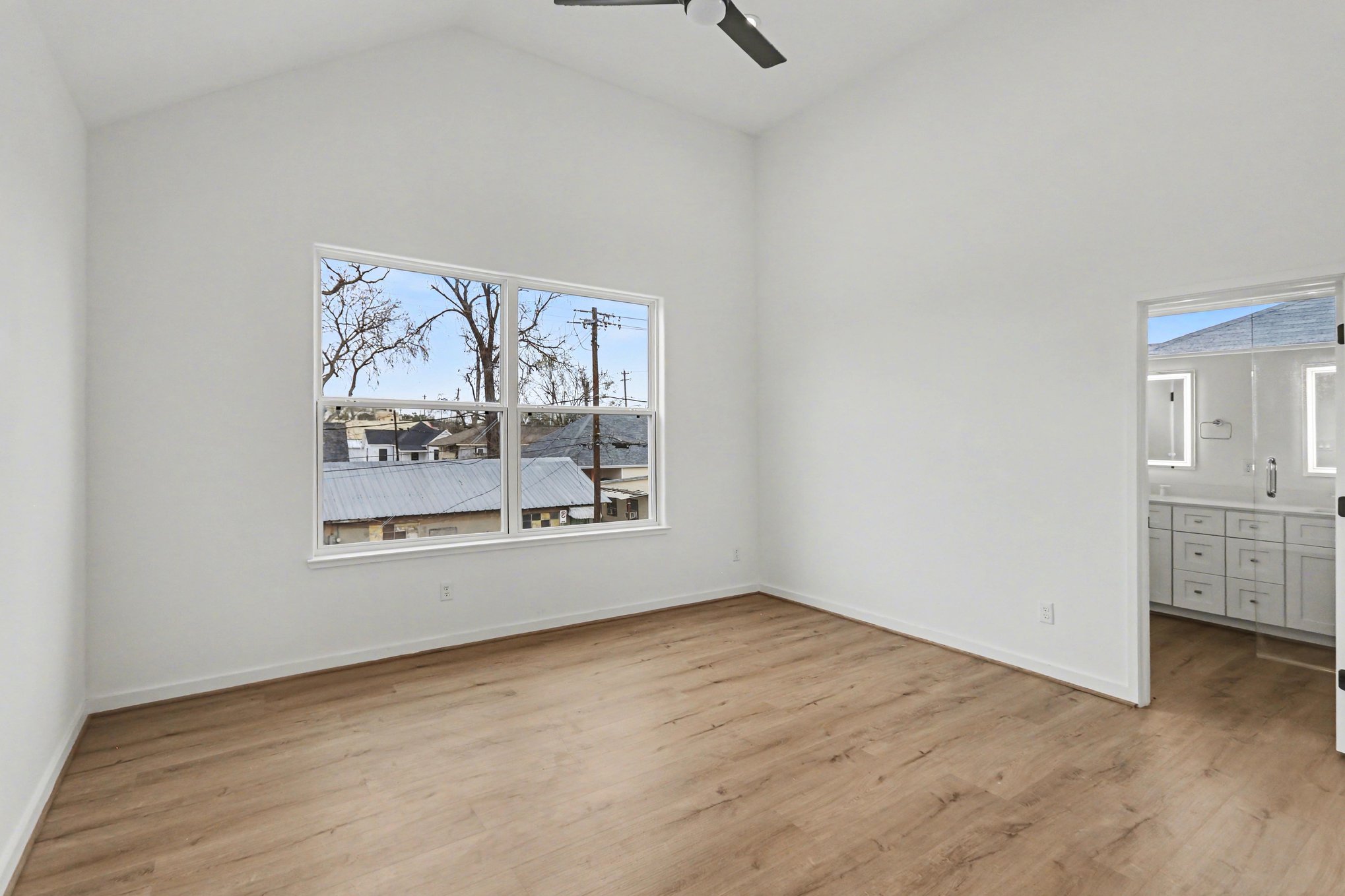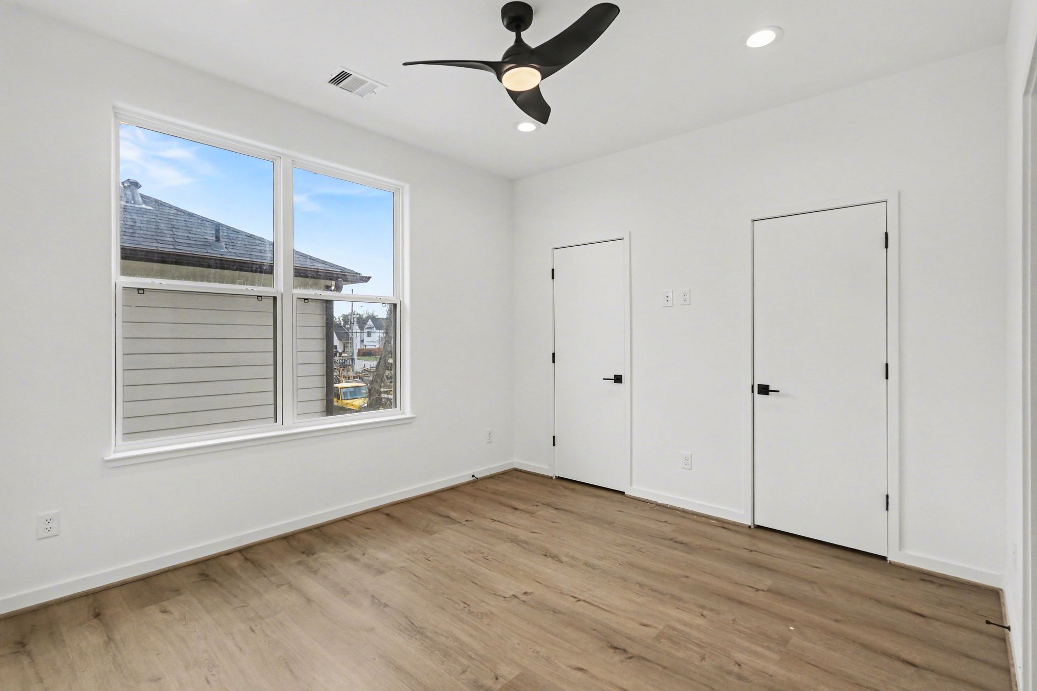 High ceilings, wide-plank flooring, and a beautifully open layout give this 2-bedroom, 2.5-bath home an immediate sense of refinement. The living and dining areas flow together under recessed lighting and a modern ceiling fan, creating a space that feels both expansive and welcoming. Your kitchen stands out with crisp cabinetry, sleek counters, stainless steel appliances, and a spacious island that anchors the room with confidence. Pendant lighting adds a polished touch, while the open design keeps everything connected, whether you are hosting friends or enjoying a quiet evening in. A stacked washer and dryer are neatly included, adding everyday practicality to this elevated interior. Upstairs, the primary bedroom impresses with a cathedral ceiling and oversized windows that bring in soft daylight. Its ensuite bath offers dual vanities and ample storage, creating a setup that feels considered and comfortable. A second bedroom and full bath provide flexibility for guests, a home office, or additional living needs, complemented by a convenient half bath for visitors. Located in Houston’s vibrant Near Northside area, you are minutes from White Oak Music Hall, Saint Arnold Brewing Company, and the trails at Buffalo Bayou Park. Quick access to I-45 and downtown keeps dining, shopping, and entertainment within easy reach. *Our homes come as-is with all essentials in working order. Want upgrades? Request it through the Belong app, and our trusted pros will take care of the rest!