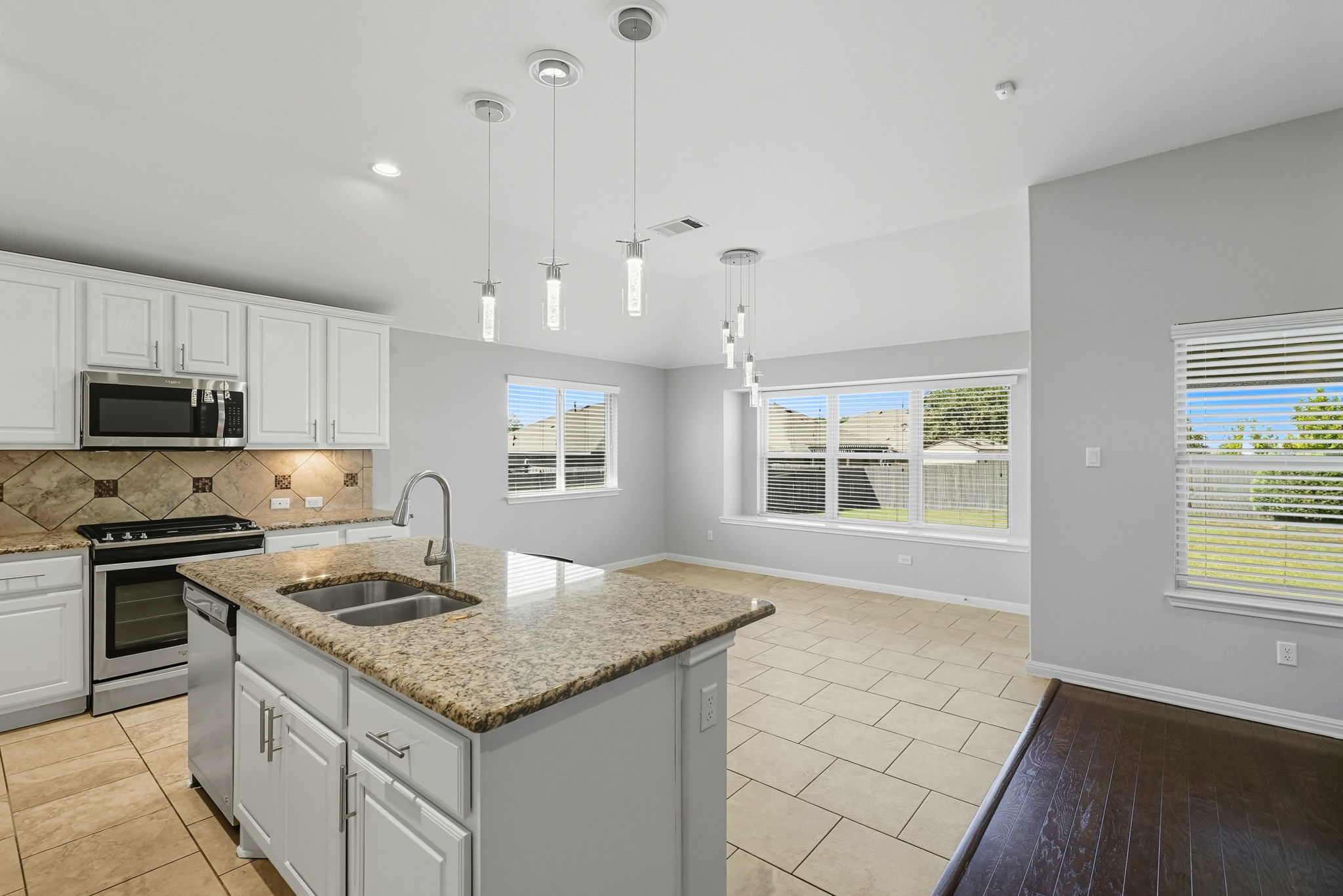 Offering 4 bedrooms, 2 bathrooms, and a bright open layout, this Hutto home combines comfort, style, and everyday convenience! A spacious living area sits at the heart of the layout, highlighted by tall windows and neutral tones that make it easy to relax or gather with friends. Your living space transitions into the dining nook, creating a natural spot for daily meals or weekend celebrations. The kitchen stands ready with white cabinetry, generous counter space, and stainless steel appliances, including a gas range. Pendant lighting above the island adds both brightness and style, while tile flooring keeps everything practical and low-maintenance. From here, you can enjoy a view into the backyard, where there’s room to play, garden, or dine outdoors. Your main bedroom offers a quiet retreat with soft carpeting, a walk-in closet, and an ensuite bathroom featuring dual sinks, a soaking tub, and a separate glass-enclosed shower. Three additional bedrooms share a second full bath, giving you space for guests, family, or even a home office. Convenience continues with central A/C and an attached garage. This Hutto location makes daily living a breeze! Grocery runs are simple with H-E-B just minutes away, and you’ll love nearby dining favorites along Highway 79. Parks and trails give you plenty of outdoor options, while quick access to US-79 and SH-130 ensures smooth commutes to Round Rock, Austin, or beyond. *Our homes come as-is with all essentials in working order. Want upgrades? Request it through the Belong app, and our trusted pros will take care of the rest!