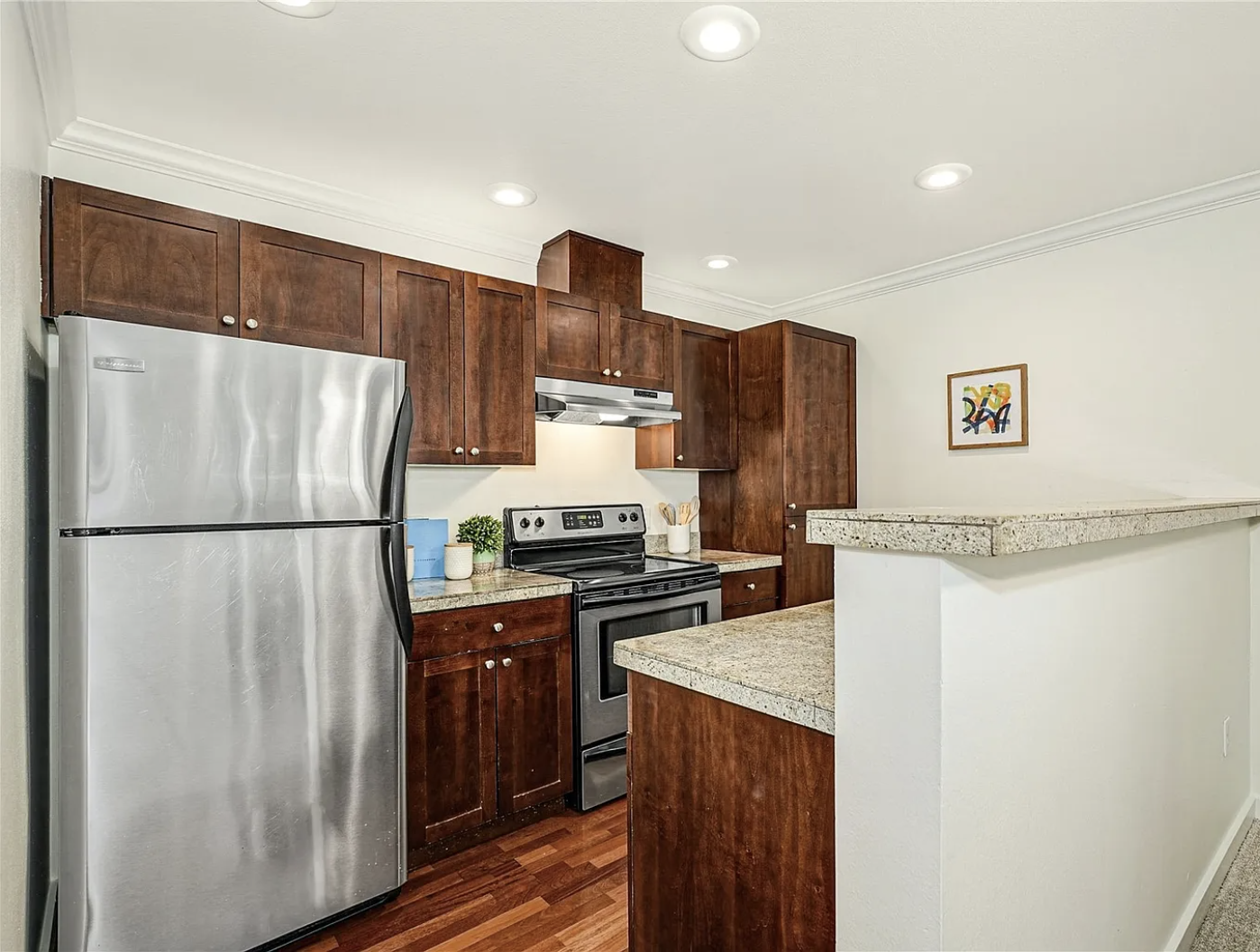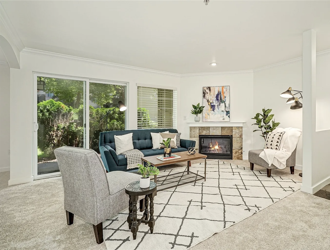 Stylish updates and a smart, ground-level layout give this refreshed Tanglewood space a distinctly modern edge, all set within the sought-after Klahanie community. With two bedrooms, two baths, and no steps, the layout feels easy and well considered, enhanced by brand-new carpet, fresh paint, and hardwood floors that add warmth and contrast throughout. The living area offers a comfortable place to unwind, with direct access to the patio for a natural indoor-outdoor connection. Nearby, the kitchen balances form and function with stainless steel appliances, granite counters, and generous cabinetry, creating a clean backdrop for everyday cooking and entertaining. A newer, full-sized LG washer and dryer add convenience, while additional unit storage keeps seasonal items neatly tucked away. Two dedicated parking spaces plus visitor parking make coming and going simple. Life here extends well beyond the front door. Klahanie residents enjoy lush walking trails, playfields, tennis and basketball courts, pools, hot tubs, and multiple clubhouses with an exercise room. Challenger Elementary and the highly regarded Issaquah School District are close by, with easy access to I-90 connecting you to the Issaquah Highlands, local cafes, shopping, and outdoor recreation. One pet is welcome, completing the appeal of this connected, city-savvy lifestyle. *Fireplace is for decorative use only and cannot be used without consent from Belong. *Our homes come as-is with all essentials in working order. Want upgrades? Request it through the Belong app, and our trusted pros will take care of the rest!
