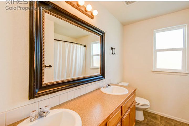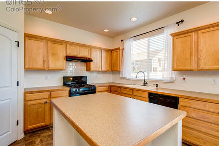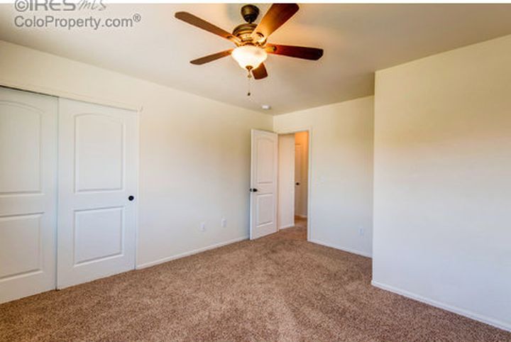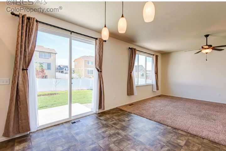Set in a quiet Johnstown neighborhood, this four-bedroom, two-and-a-half-bath home offers 2,034 square feet of comfortable living with classic Colorado style. A handsome exterior combining muted green siding, stone accents, and a welcoming covered front porch creates strong curb appeal, while the attached two-car garage adds everyday convenience. Inside, an open-concept main floor connects the living, dining, and kitchen areas for effortless flow. The kitchen features warm wood cabinetry, ample counter space, and a full appliance package including a gas range. A spacious center island topped by pendant lighting anchors the room, providing extra prep space and a casual spot for quick meals. Large windows and a patio door fill the home with natural light and lead out to the backyard. Upstairs, the primary suite offers generous proportions, a ceiling fan, and a private bath with a dual-sink vanity and walk-in closet. Three additional bedrooms feature plush carpeting and ceiling fans, giving every resident a comfortable, restful retreat. A convenient half bath serves guests on the main level. Out back, a fully fenced grassy yard with a concrete patio sets the stage for summer cookouts, pets, and weekend relaxation. The community location offers easy access to nearby schools, shopping, and I-25, keeping both Fort Collins and Denver within simple reach. *Our homes come as-is with all essentials in working order. Want upgrades? Request it through the Belong app, and our trusted pros will take care of the rest!