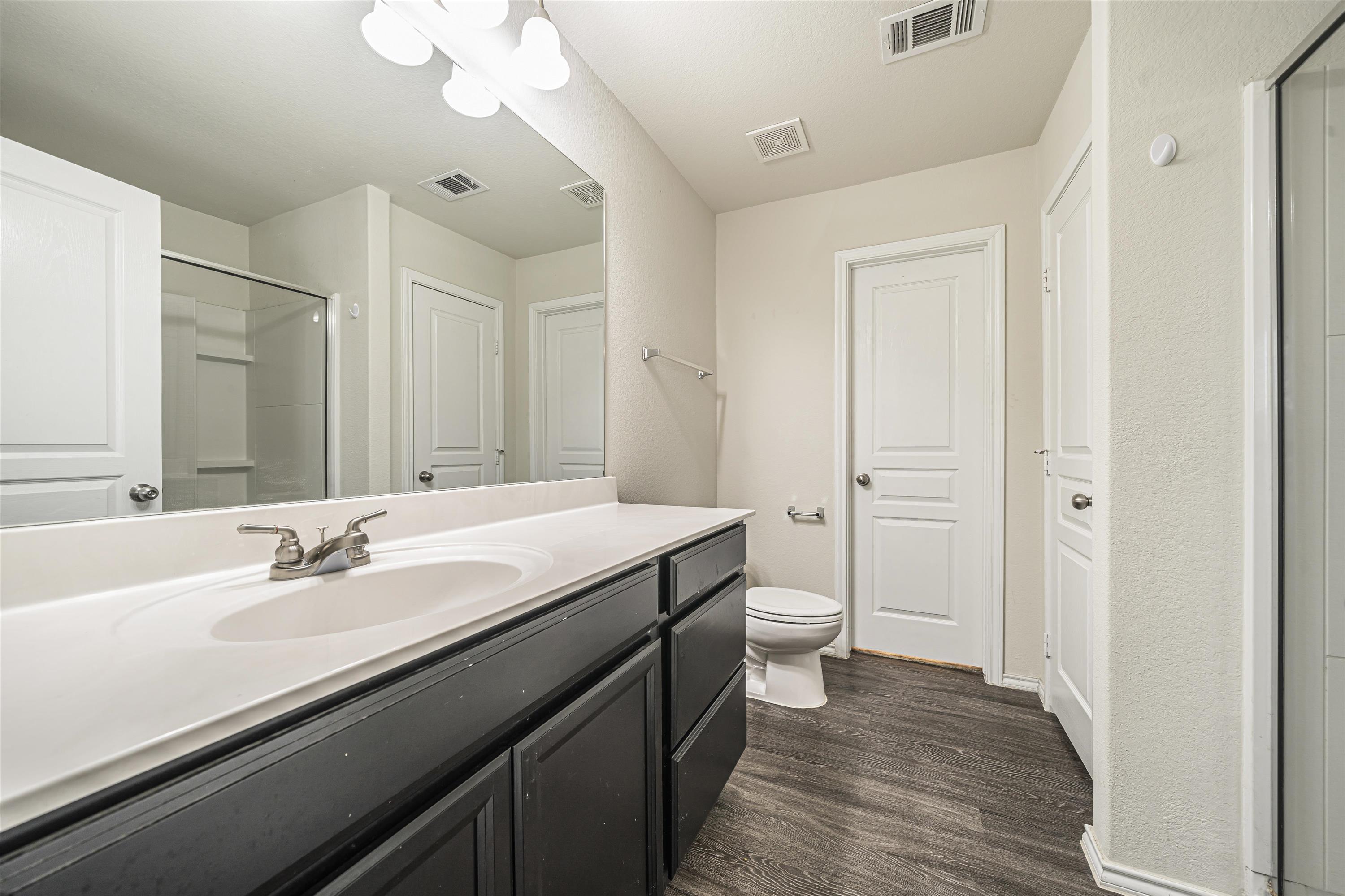 Come home to this elegant two-story home, where classic curb appeal meets modern sophistication. A lovely porch warmly invites you toward a spacious entryway framed by a charming blend of brickwork and siding. With a retention pond directly behind and only one direct neighbor, the property provides an ideal blend of serenity and convenience. Luxury vinyl plank flooring extends throughout the entire downstairs, including the bedroom and closet, adding both durability and style. The open-concept living space features a dining area and kitchen that flow effortlessly together, creating a bright and inviting area perfect for gatherings. Dark cabinetry pairs beautifully with a marble-inspired backsplash and stainless steel appliances, while a large island with seating adds convenience and style. Expansive windows fill the space with natural light, enhancing its modern appeal. A sprawling backyard allows you to host large gatherings or unwind in private and enjoy the Texas breeze. This pet-friendly home allows up to 2 pets with a maximum weight of 50 lbs each. If your pet exceeds the weight limit, please reach out to see if we can accommodate. Proof of vaccinations is required, and pets must be kept on a leash outside and cleaned up after. Nestled in Katy, TX, this home provides access to the well-regarded Katy Independent School District and a community-oriented atmosphere. Retail, parks, and local amenities are just minutes away, making this location as convenient as it is desirable. *Our homes come as-is with all essentials in working order. Want upgrades? Request it through the Belong app, and our trusted pros will take care of the rest!