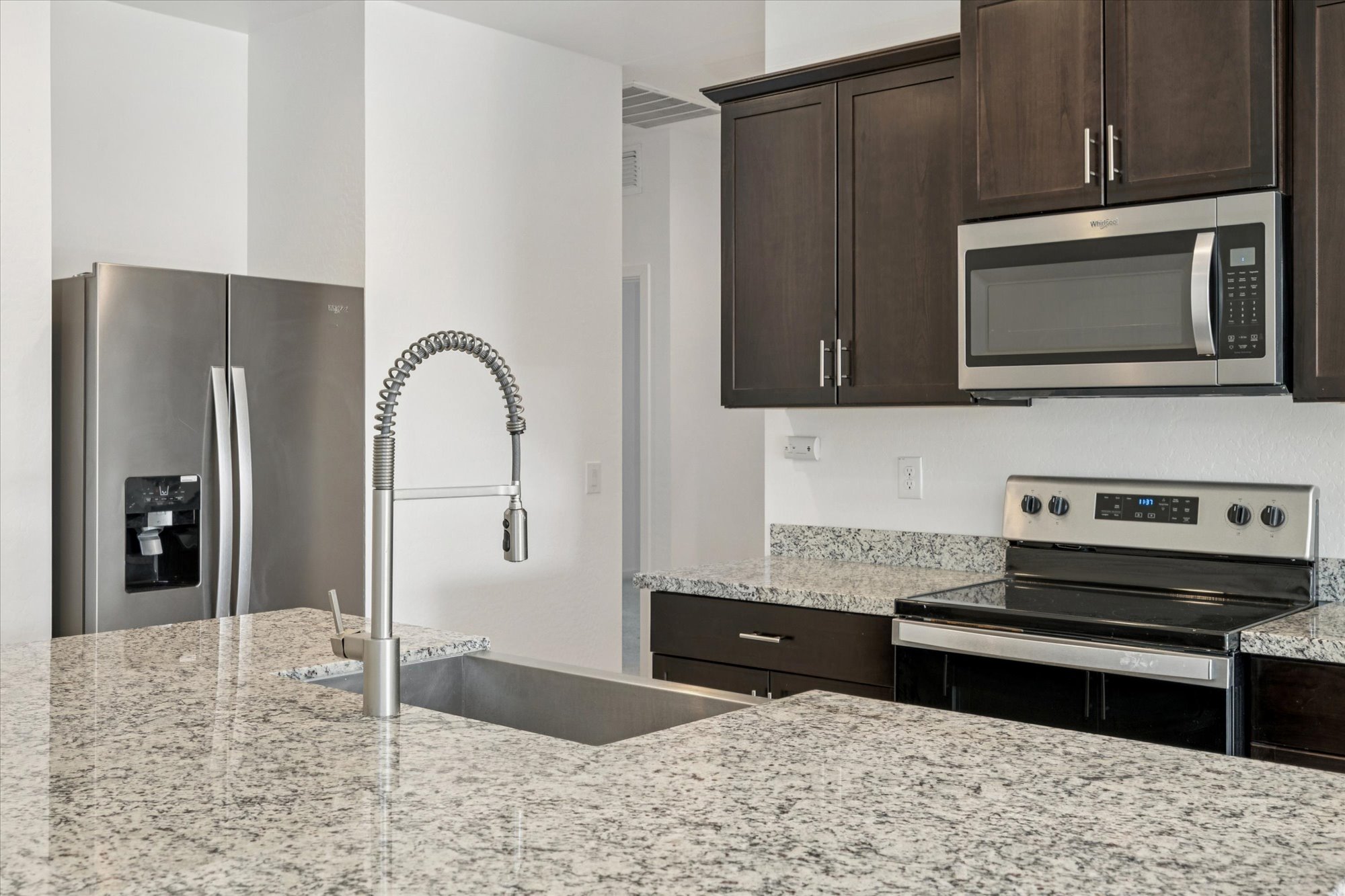 This 3-bedroom, 2-bath home in Laveen Village combines modern comfort with a low-maintenance backyard and a covered patio perfect for outdoor living. Inside, you’ll love the open-concept flow and the warm, modern finishes. Natural light gently filters into the living room, which connects you seamlessly to the heart of the home: the kitchen. The kitchen features granite countertops, rich cabinetry, and a generous island that’s perfect for morning coffee or gathering with friends. Appliances are sleek and stainless, making everyday life a breeze. Just off the kitchen is your dining area, designed for both comfort and convenience. A laundry nook with a washer and dryer is tucked away just steps from the main living zones. Each of the three bedrooms offers peaceful respite, while the two baths deliver clean, functional design. The backyard is low-maintenance with rock landscaping and a covered patio - ideal for evening relaxation or weekend BBQs. Living in Laveen Village offers a unique blend of rural charm and city convenience. You’re just a short drive from Safeway (5035 W Baseline Road) for groceries and essentials. The area is growing steadily yet still preserves its calm, community feel. Laveen is one of Phoenix’s urban villages - part countryside, part suburb - and is bounded by the Salt River to the north and South Mountain to the south, giving you natural beauty close by. *Our homes come as-is with all essentials in working order. Want upgrades? Request it through the Belong app, and our trusted pros will take care of the rest.