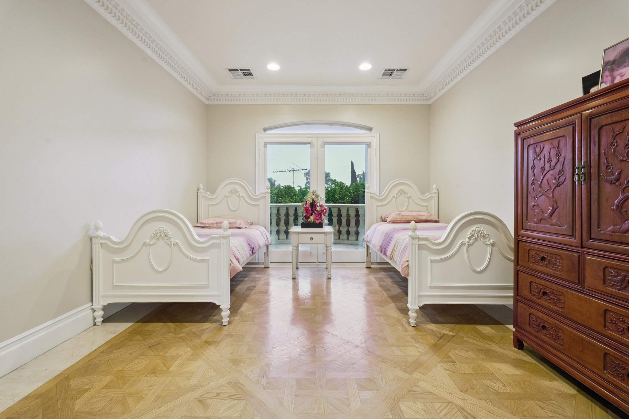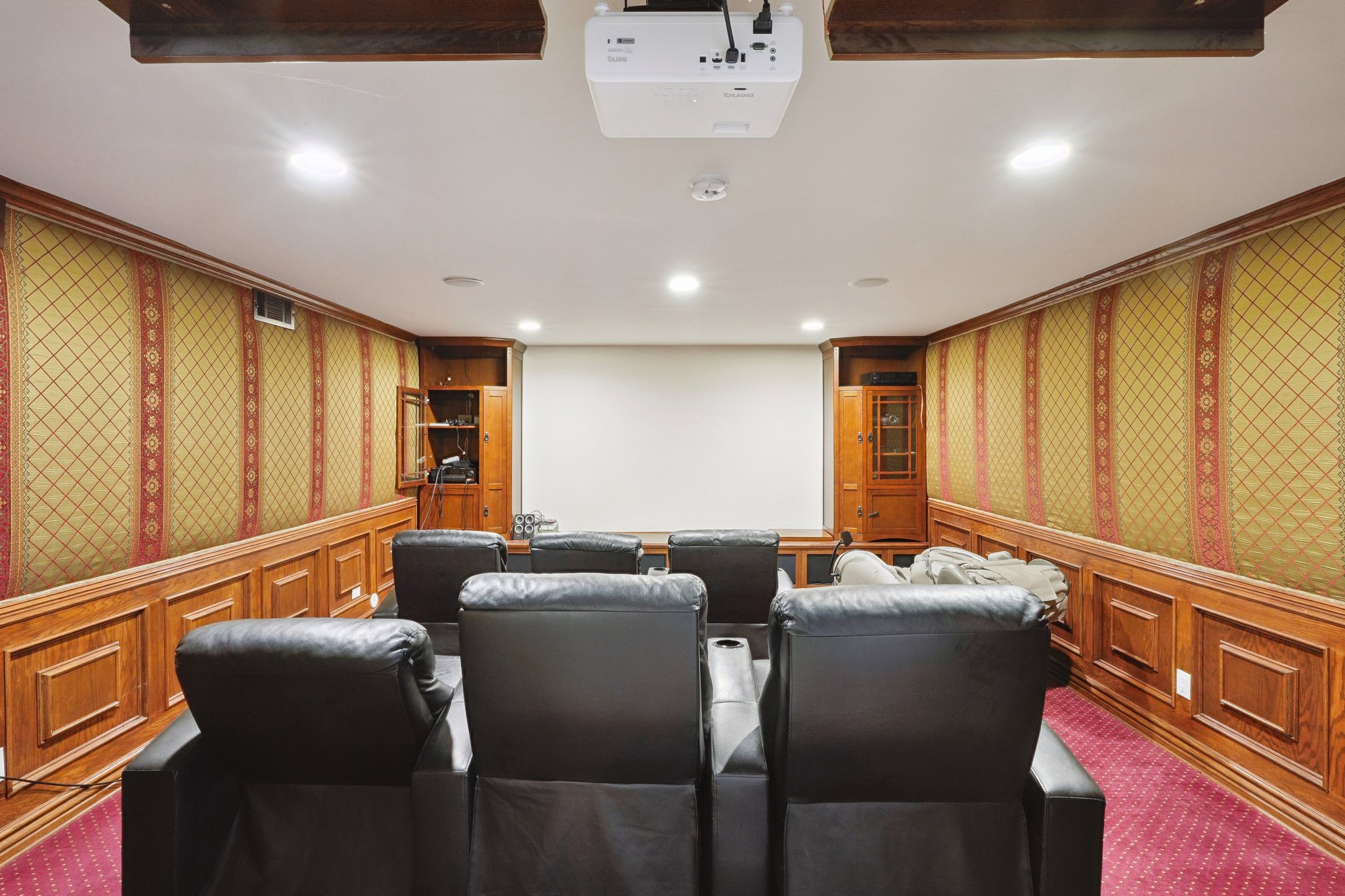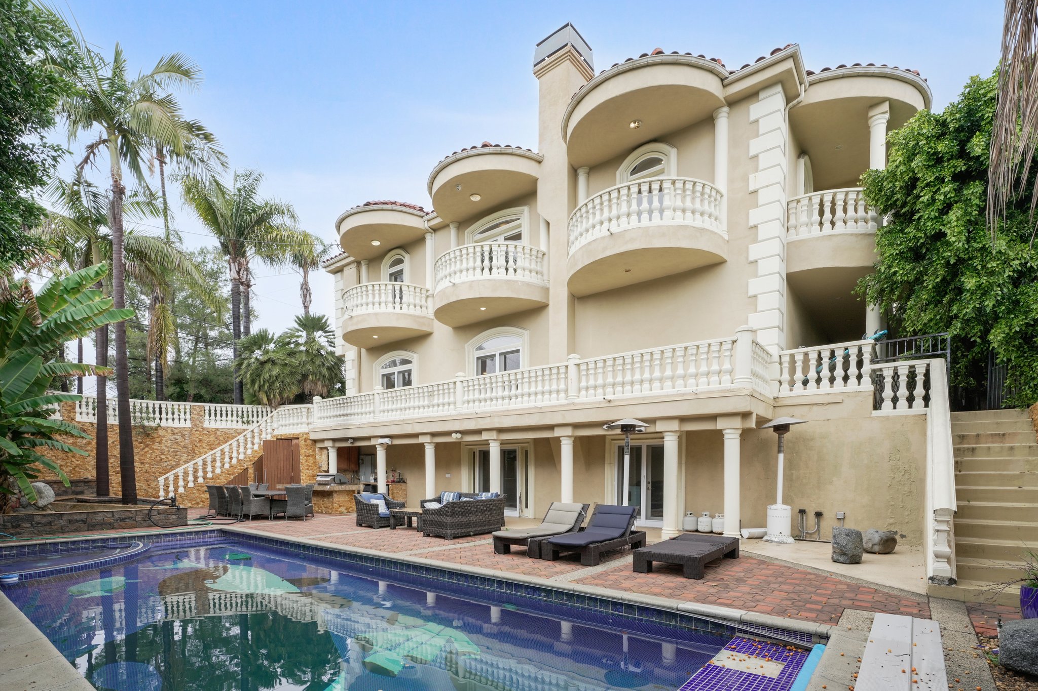Spanning 9,410 square feet, this stately 7-bedroom estate offers 7 full baths and 2 half baths, delivering exceptional scale, architectural detail, and purposeful design. Grand proportions, intricate crown moldings, and finely crafted built-ins establish a tone of quiet distinction throughout. Formal living and dining spaces are defined by coffered ceilings, crystal chandeliers, and rich wood inlays that underscore the home’s caliber. A carved fireplace anchors the dining room, while expansive windows and French doors invite natural light into the main gathering areas. The kitchen is appointed with extensive custom cabinetry, generous stone countertops, a substantial center island, and professional-grade appliances, creating a setting suited to both intimate meals and large-scale entertaining. Beyond the primary living areas, a private office lined with custom shelving offers a refined workspace. The lower-level family room provides a spacious retreat, complemented by a dedicated gym with mirrored walls and fitness equipment. Outdoors, a tiled pool with an integrated spa is framed by mature greenery, creating a secluded backdrop. An outdoor kitchen equipped with a built-in grill, sink, refrigeration, and bar seating extends entertaining possibilities with ease. Automatic sprinklers maintain the grounds, and a comprehensive security system with cameras, motion detectors, and alarm components enhances peace of mind. Located in Sherman Oaks, moments from Ventura Boulevard, you are close to Westfield Fashion Square, Gelson’s Market, Whole Foods Market, notable dining destinations, and Van Nuys Sherman Oaks Park, with convenient access to major freeways connecting you to the greater Los Angeles area. *Fireplace is for decorative use only and cannot be used without consent from Belong. *Our homes come as-is with all essentials in working order. Want upgrades? Request it through the Belong app, and our trusted pros will take care of the rest!