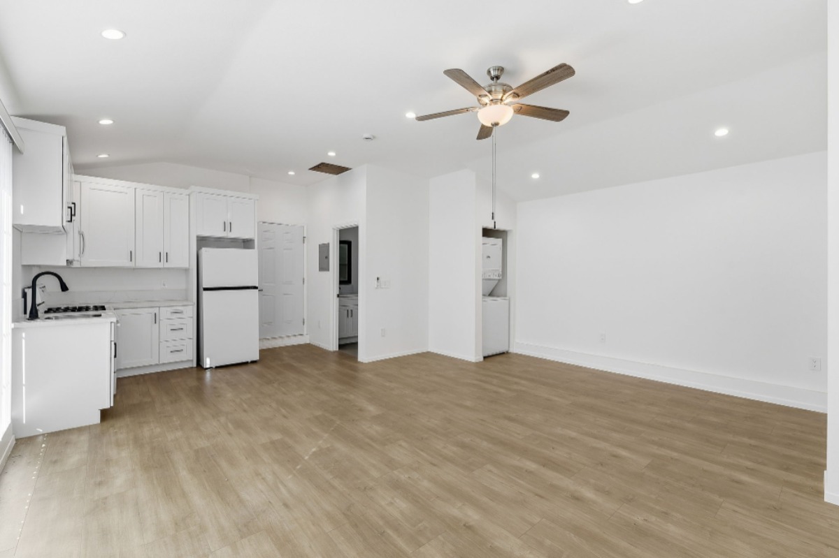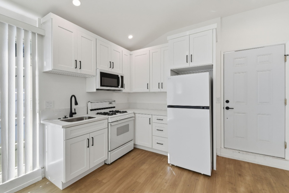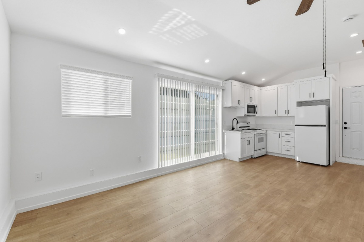 Sunlight pours across the open living area, giving you a bright and calming place to unwind after a long day. Wide windows frame the view of the yard, where low-maintenance artificial turf creates a clean and open outdoor space without the need for upkeep. There is plenty of room to arrange your favorite pieces, enjoy quiet mornings, or relax with a book in the afternoon breeze. Just steps away, the kitchen sits neatly along one wall, offering generous cabinetry, a gas range, a refrigerator, and a microwave to support everyday cooking. Meals can be prepped and enjoyed while still staying connected to the rest of the space, and having your own washer and dryer adds everyday comfort and independence. The bathroom feels thoughtfully finished, with a modern vanity and a beautiful glass-enclosed shower featuring pebble-style flooring and built-in niche shelving to keep essentials organized. Located in a low-rise condo community in North Hollywood, you are walking distance from great restaurants, including popular Thai spots and In-N-Out. Grocery runs are easy, casual dining is close by, and nearby neighborhood conveniences help simplify your routine. This relaxing, well-situated studio gives you a tranquil and peaceful home base with everyday comforts close at hand. * Monthly fee of $150 on top of rent will be charged to cover utility costs. *Our homes come as-is with all essentials in working order. Want upgrades? Request it through the Belong app, and our trusted pros will take care of the rest!