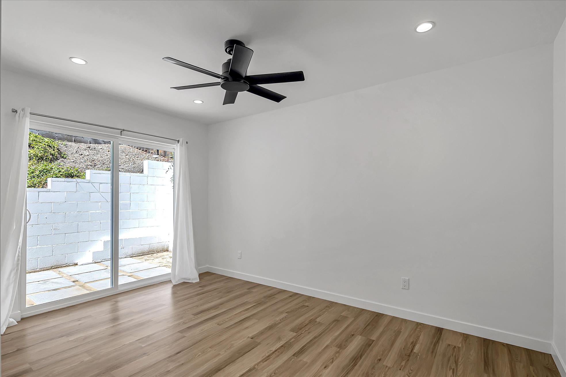 Introducing a brand-new offering, this modern and private 1-bedroom, 1-bathroom home exudes an aura of modernity and quietude. Tucked behind the main property, a separate entrance up a quaint side street provides this fully detached ADU with a unique sense of seclusion. Just a heads-up: parking's on the street, and there's a little incline to walk up, but nothing too steep! The front yard is entirely fenced, giving you a private spot to make your own. Whether you're into gardening, outdoor workouts, or just lounging in the sun, this area awaits your creative touch! Generously proportioned windows suffuse the open-concept living area with abundant natural light. An ultra-modern ceiling fan adds a contemporary touch, while ample storage solutions ensure a clutter-free environment. Discreetly tucked within a laundry nook are a stacked washer and dryer, offering convenience without sacrificing aesthetics. In the galley-style kitchen, stainless steel appliances harmonize with sleek black fixtures—a fusion of style and practicality. Echoing this theme, the bathroom presents a vanity paired with a mirror, plus coordinating black fixtures that contribute to the meticulously curated design. Nestled within a family-centric community renowned for its exceptional educational institutions, this home extends beyond a mere dwelling—it embodies a lifestyle waiting to be embraced. *Water and gas utilities are split by adults between 22254 Avenue San Luis and this unit.