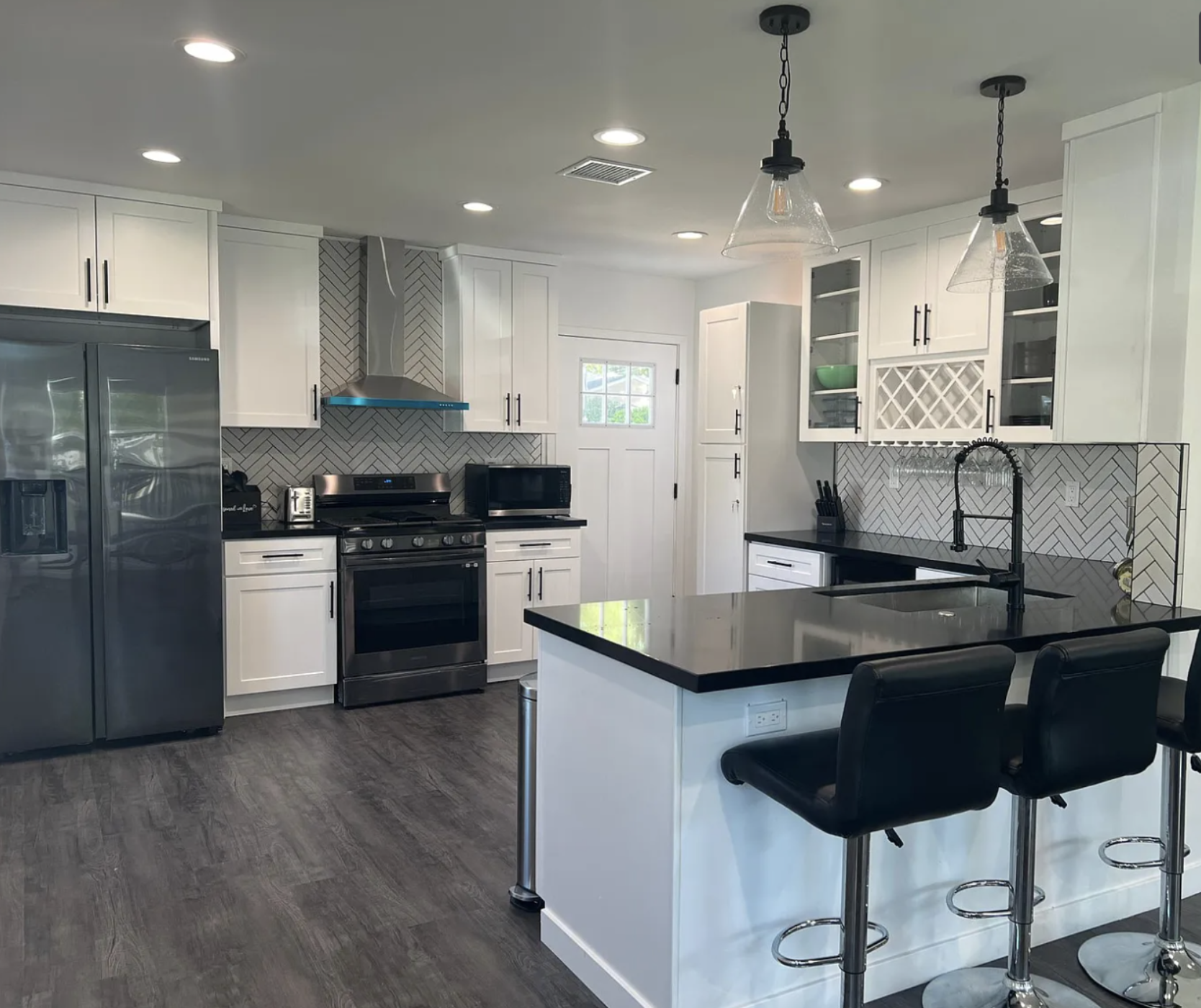 Contemporary elements such as the streamlined front entry and clean exterior lines contribute to a modern, uncluttered aesthetic throughout this 3-bedroom, 1-bath home. Inside, the living area offers an open layout with recessed lighting, smooth flooring, and neutral walls that keep the space calm and adaptable. Large windows steady the natural light, giving this area a bright, versatile backdrop. The kitchen follows the same minimal rhythm with sleek counters, white cabinetry finished with black hardware, and a herringbone backsplash that adds subtle pattern. Stainless-steel appliances, a deep single-basin sink, and pendant lighting support daily cooking. All three bedrooms maintain the clean palette, offering simple, adaptable spaces. The updated bathroom features modern tilework, a glass-enclosed tub and shower combination, and a wide vanity that supplies helpful storage without interrupting the streamlined look. Outside, a fenced deck creates a lovely spot for relaxing in the open air, keeping maintenance easy while adding a useful extension of your living space. Nearby grocery options include Vallarta Supermarket and Ralphs, and you have coffee spots such as Starbucks and Coffee Circus within easy reach. Lake Balboa Park, the Japanese Garden, and the Sepulveda Basin Sports Complex offer popular outdoor destinations, while Sherman Way and Victory Boulevard provide convenient dining and everyday services. *Our homes come as-is with all essentials in working order. Want upgrades? Request it through the Belong app, and our trusted pros will take care of the rest!