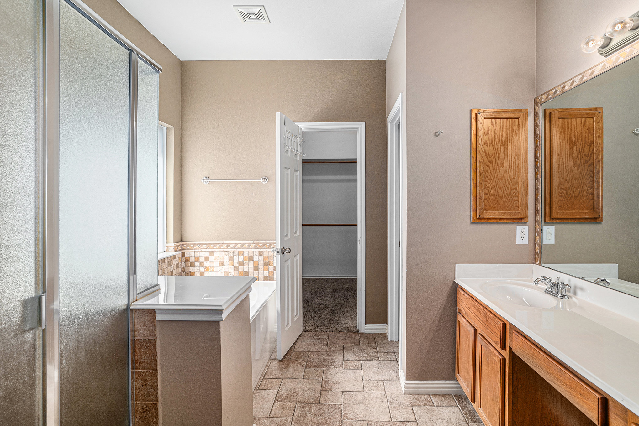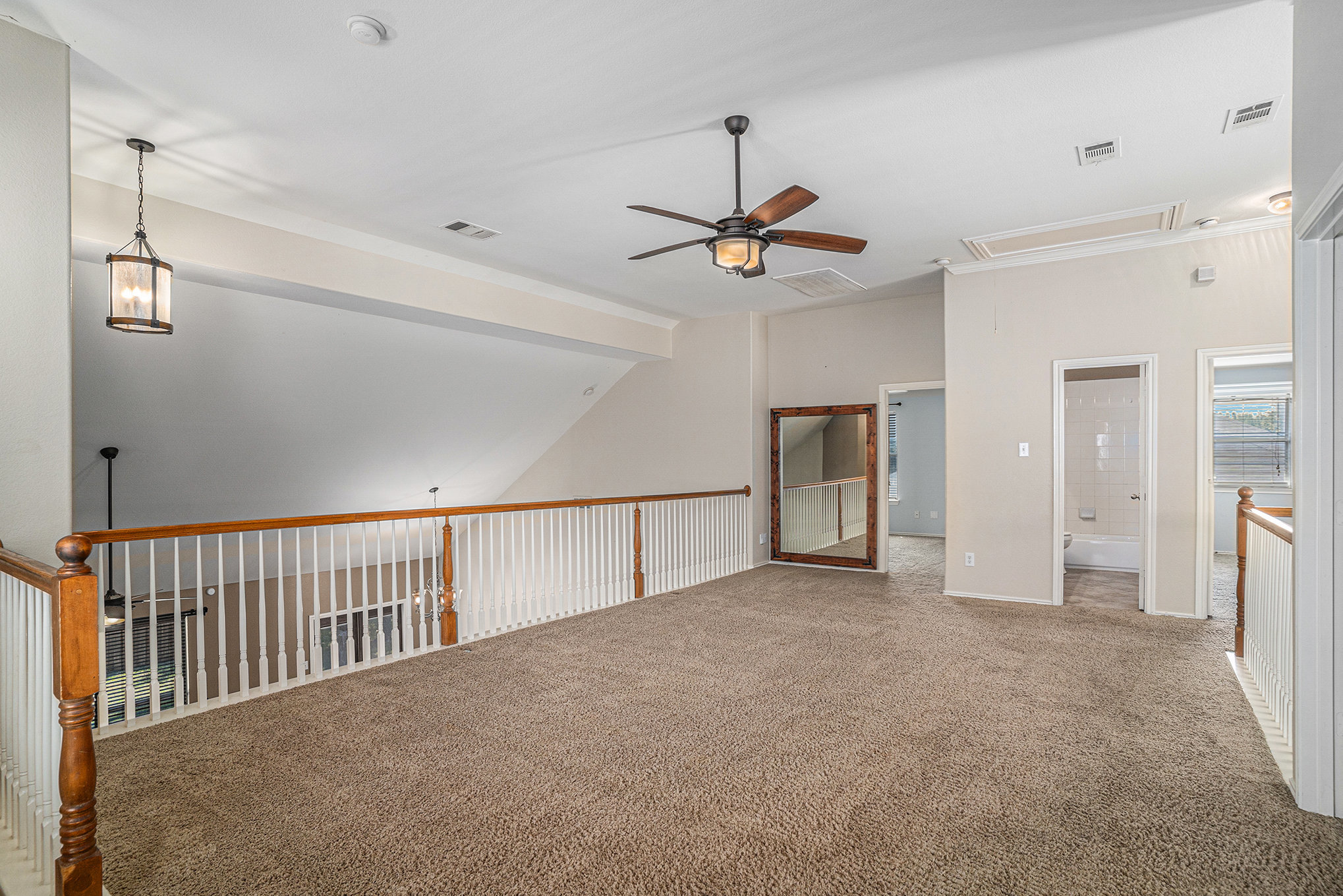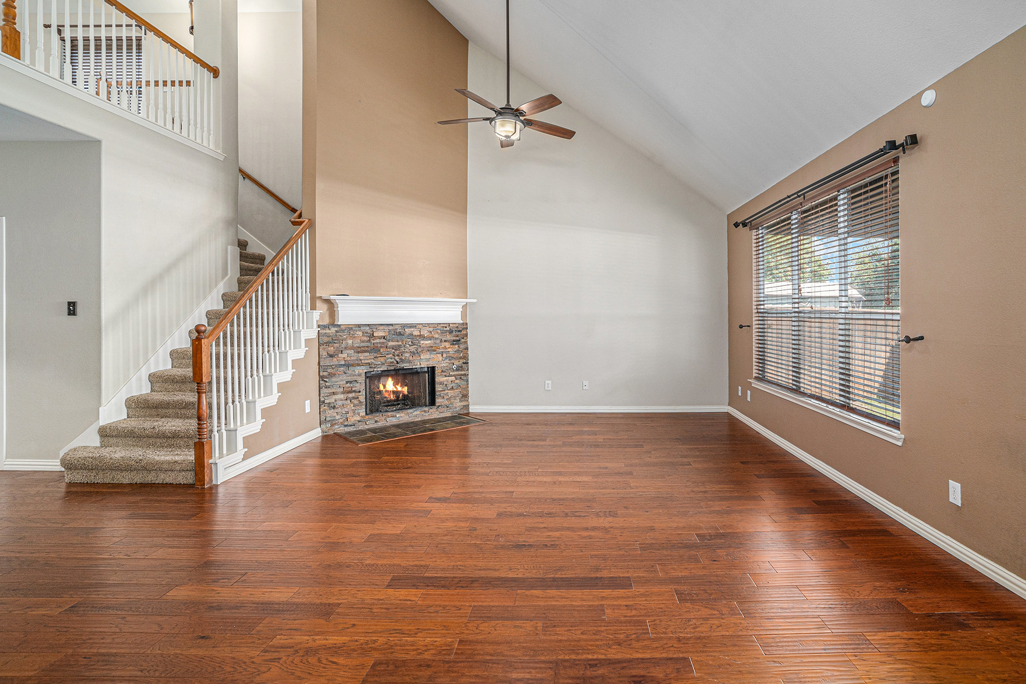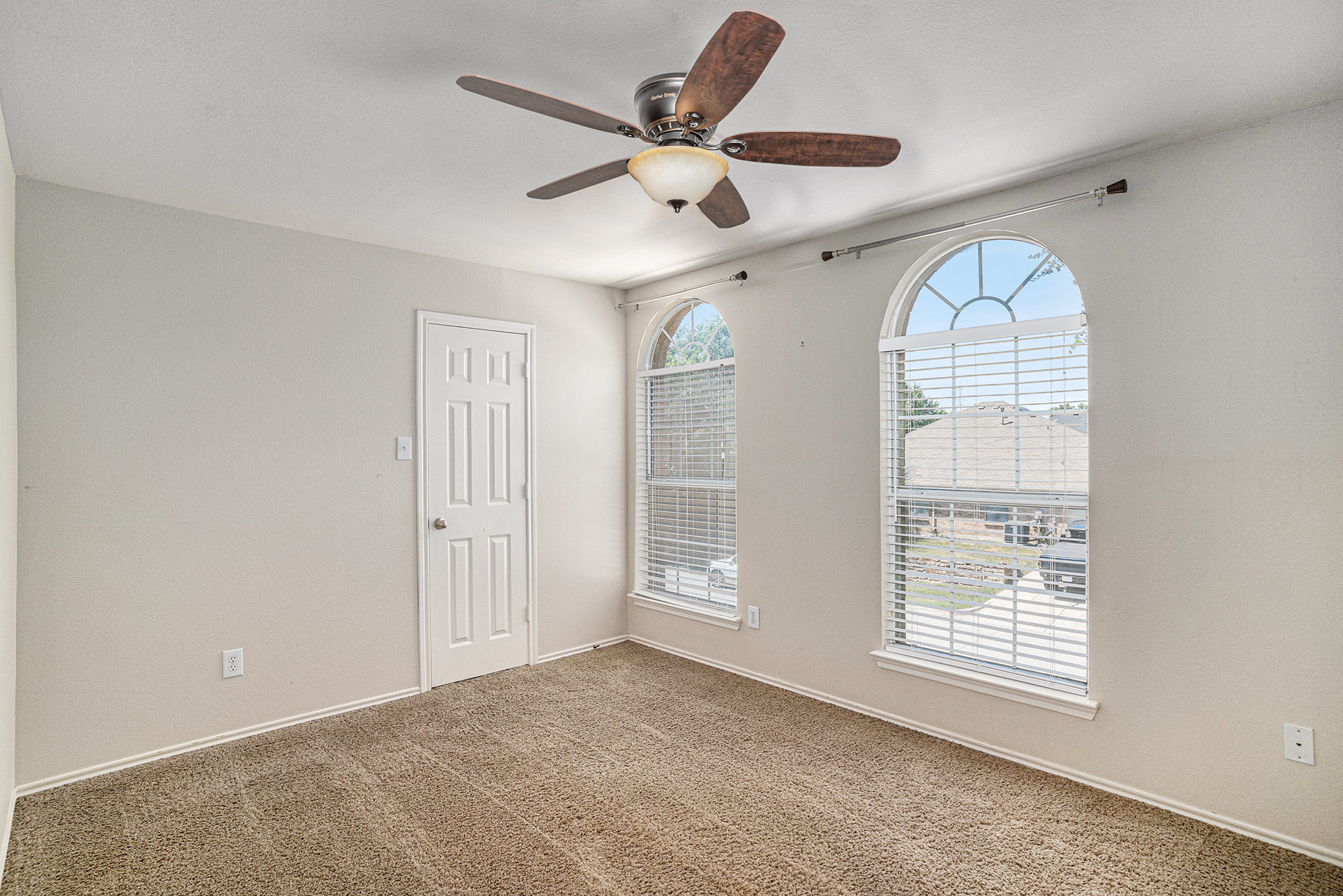 Graceful curb appeal invites you into this 5-bedroom home in Holland Estates, where soaring vaulted ceilings and generous windows fill the interiors with natural light. Neutral paint tones and open-concept flow make the living spaces feel both inviting and versatile. A stone fireplace anchors the main living area, paired with rich wood floors and French doors that add timeless character. The kitchen is designed with both function and style in mind, offering granite countertops, black appliances, and a breakfast bar that’s perfect for casual meals. A dedicated dining area gives you space to host more formal gatherings, while the layout makes everyday living feel connected. Your primary suite offers the comfort of a spacious retreat, complete with a bath that features dual sinks, a separate shower, and a soaking tub. A large lofted area becomes the perfect hub for play, hobbies, or movie nights, while four additional bedrooms stand ready to accommodate family, guests, or work-from-home needs. Step outside to a backyard built for entertaining. A covered patio invites you to dine or relax in the shade, while an additional seating area is already plumbed for a firepit. A water fountain, flower beds, and a storage shed add even more appeal to this thoughtfully designed outdoor space. Pets are welcome, too, making this home a true fit for the whole household. *Fireplace is for decorative use only and cannot be used without consent from Belong. *Our homes come as-is with all essentials in working order. Want upgrades? Request it through the Belong app, and our trusted pros will take care of the rest!