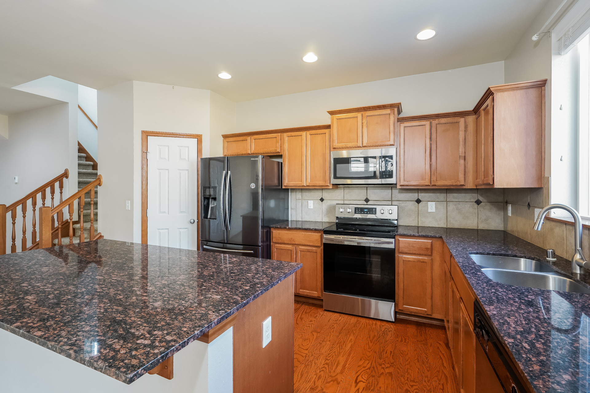 Welcome to this exquisite home offering a gorgeous blend of comfort and elegance. Step inside and be greeted by hardwood floors that guide you toward the stunning kitchen. Adorned with granite countertops, an island with a bar, and a range of stainless steel appliances, including an induction stove, a new oven, and a microwave, this culinary haven will inspire your inner chef. Adjacent to the kitchen is the dining area and the comfortable living room, complete with a gas fireplace that sets the stage for cozy evenings and intimate gatherings. Venture upstairs to find three bedrooms, each offering tranquility, and respite. The primary suite, boasting vaulted ceilings, presents a private sanctuary with its own 5-piece bath and a spacious walk-in closet for your personal storage needs. Convenience is at hand with the laundry room that helps streamline your laundry tasks. Stained millwork and tile countertops with beautiful backsplashes grace the bathrooms, while double-pane windows with screens fill the space with natural light. The front and rear landscaping add to the home’s charm, and the fully fenced yard ensures privacy and security. Moreover, the new fire alarms ensure your safety and peace of mind. Located within the highly sought-after Tahoma School District, you'll have access to exceptional educational opportunities for your family. Schedule a visit today and embrace the exceptional lifestyle that awaits you in this lovely home!