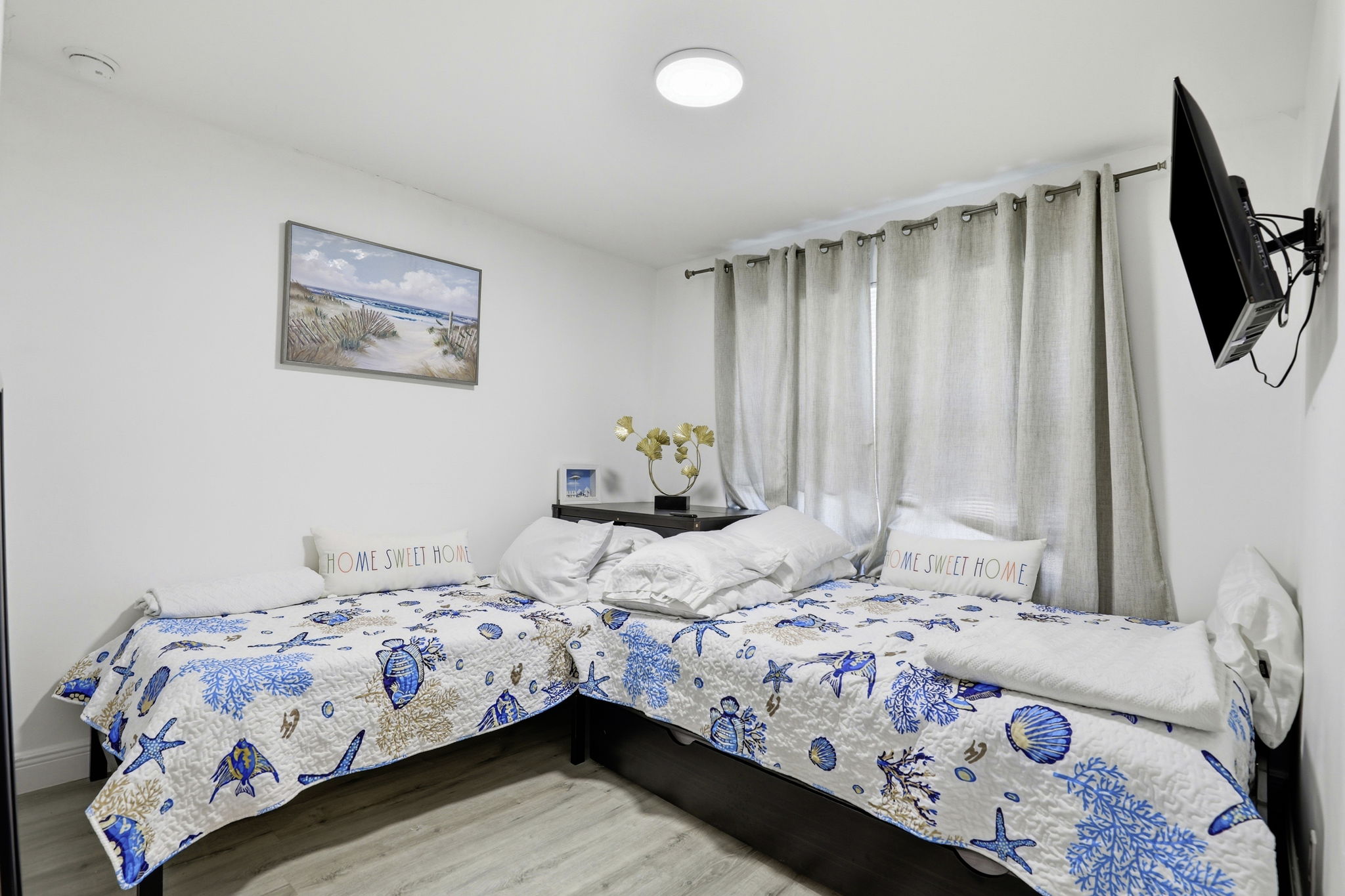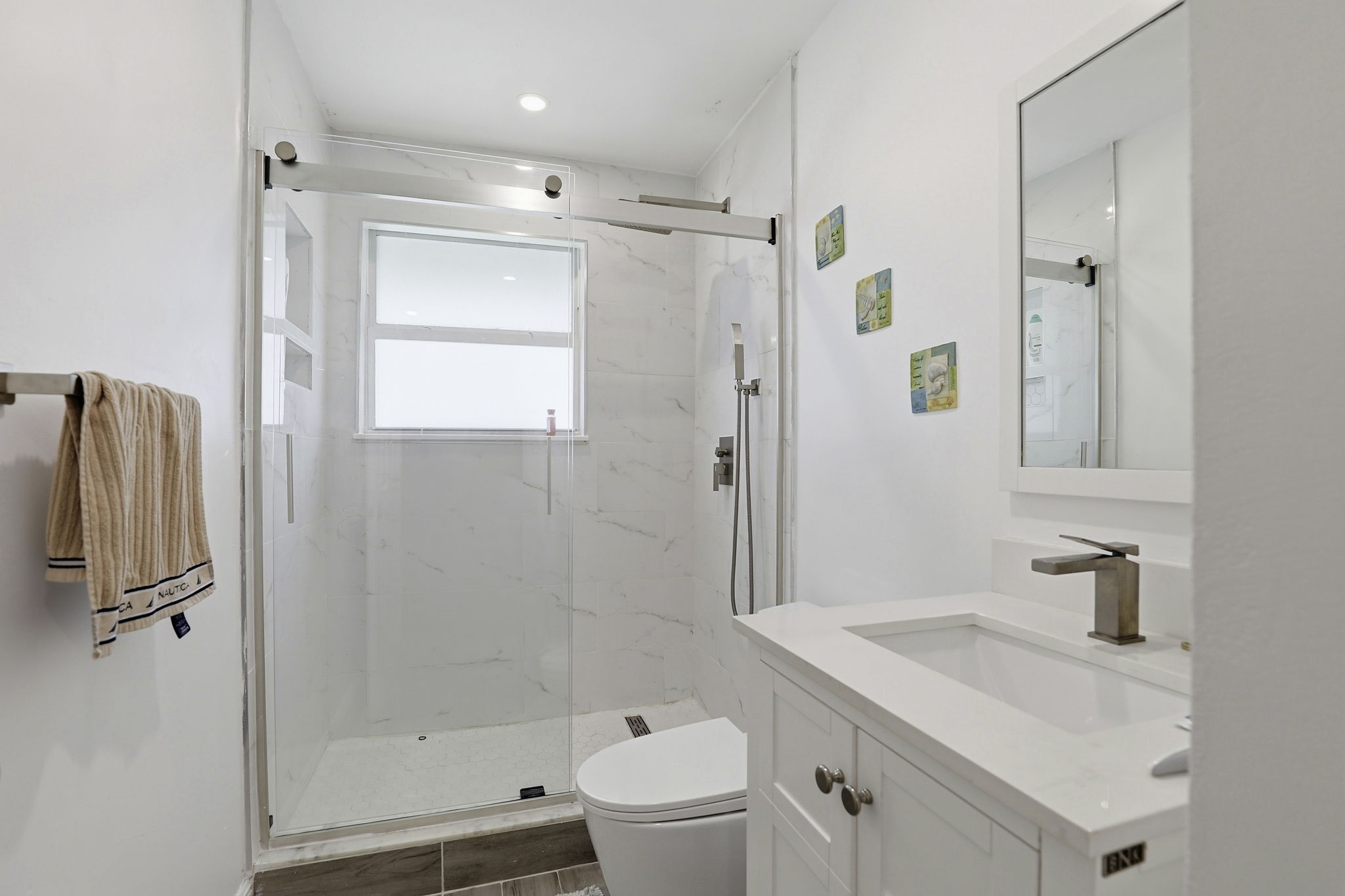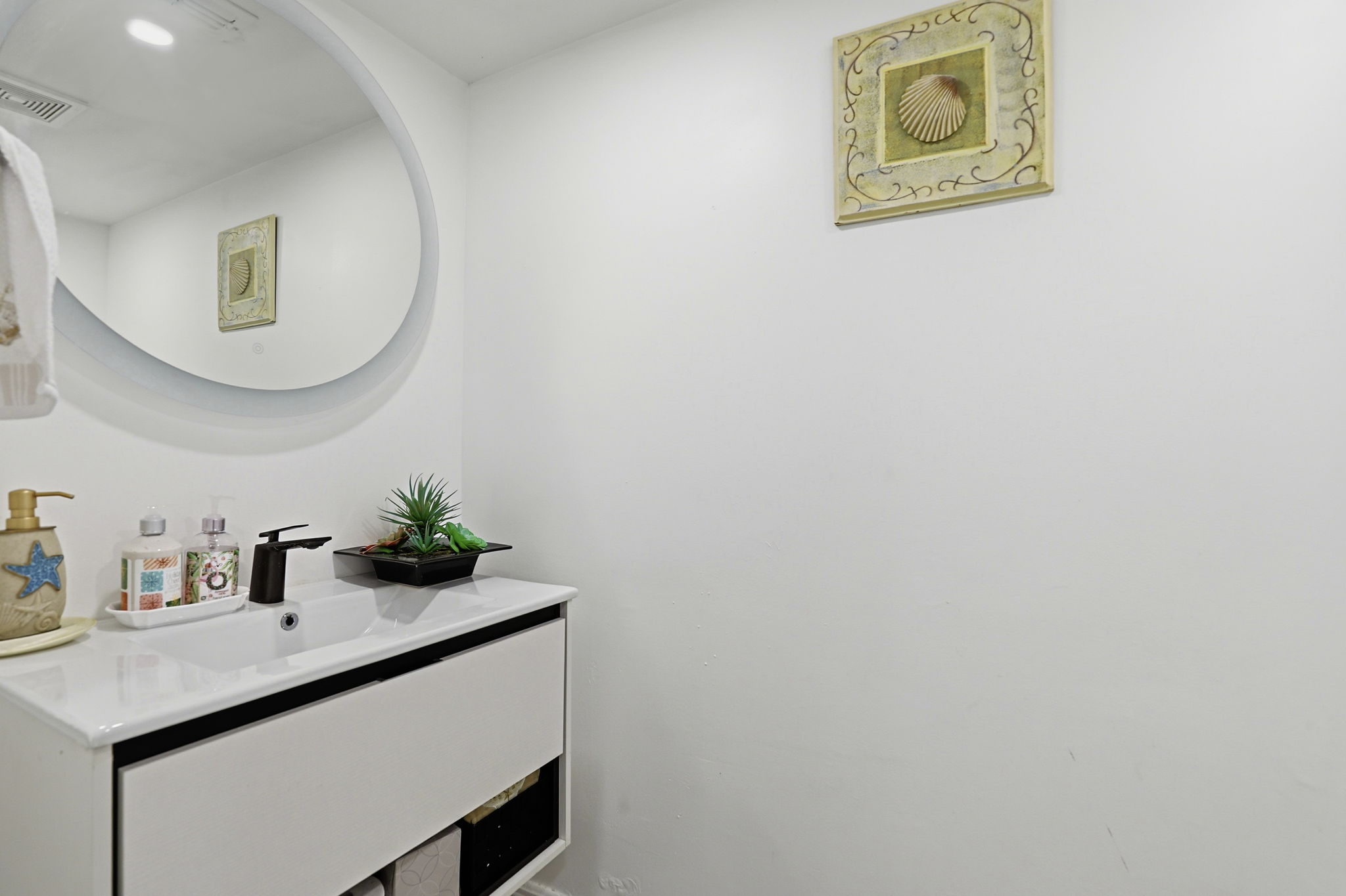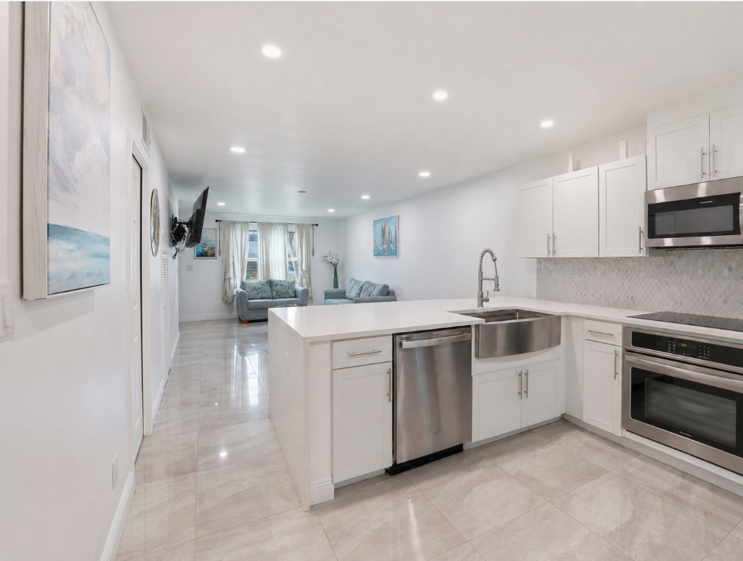 Located in the Sand Star Villas community on Marco Island, this updated two-bedroom, two-and-a-half-bath condo offers a coastal, move-in-ready home just minutes from the Gulf. The interior has been refreshed with marble-look tile flooring throughout the main living areas, fresh white walls, and a bright, beach-inspired palette. The kitchen features white shaker cabinetry, quartz countertops, a stainless farmhouse sink, and a full stainless appliance package including a double oven, electric cooktop, dishwasher, and microwave. The open layout connects the kitchen to the dining and living areas, with sliding doors leading out to a private screened lanai overlooking palm trees and community greenery. Both bedrooms are well-sized. The primary bedroom includes an updated en-suite bath with a marble-look walk-in shower. The second bedroom works well for guests, kids, or a home office. A modern half bath with a floating vanity is located on the main level for guests, and a stacked Whirlpool washer and dryer are included in the home. Sand Star Villas residents have access to a community pool with a tiki hut and outdoor seating area. The home is a short drive to Marco Island's beaches and to Smokehouse Bay restaurants and shops. Nearby food and essentials include Sweet Annie's Ice Cream Parlour, CJ's on the Bay, MICRo, Sand Bar, The SpeakEasy Marco Island, and Publix at Marco Town Center. Tommie Barfield Elementary is the assigned elementary school. Easy access to N Collier Boulevard connects you to the rest of Marco Island and on to Naples. *Our homes come as-is with all essentials in working order. Want upgrades? Request it through the Belong app, and our trusted pros will take care of the rest!