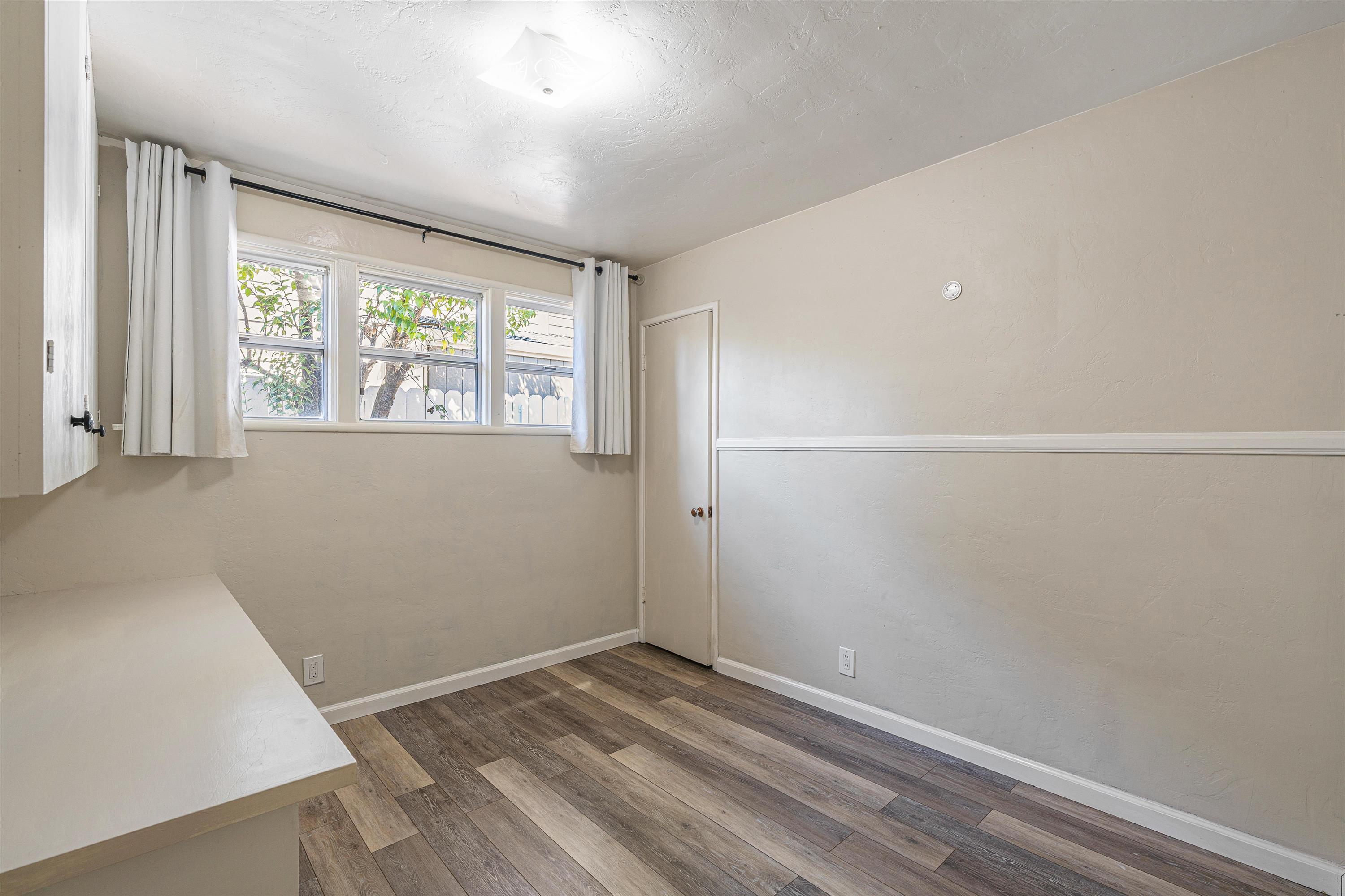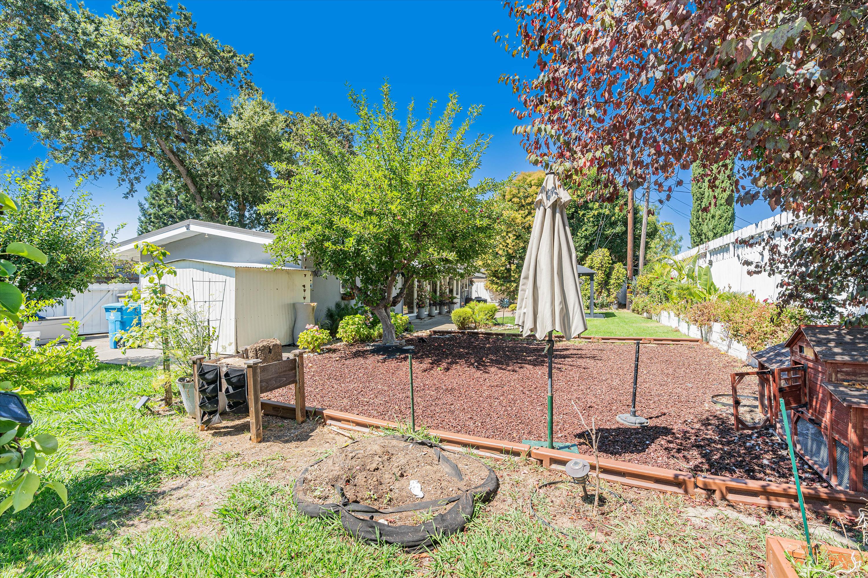 This mid-century modern charmer is a true gem, lovingly maintained by the same owner for over 30 years. Positioned on a large corner lot, it offers ample privacy and a generous front yard that enhances its curb appeal. Upon entering, the open living and dining areas immediately captivate with their vaulted ceiling, a feature that exudes an air of understated grandeur. The vinyl plank flooring offers both style and practicality, harmonizing beautifully with the floor-to-ceiling windows that invite natural light to dance throughout the space. These windows reveal a newly landscaped backyard - a tranquil oasis designed for both quiet reflection and joyful play, and comes with mature fruit trees - apple, cherry, orange, apple/pear, pomegranate, avocado, raspberries, plums, and loquats! It also includes a charming play structure area. A pet-friendly atmosphere adds to the home's appeal, making it a perfect fit for your furry companions. The kitchen, a space where form meets function, is equipped with all the necessary cooking appliances, generous countertops, and ample cabinetry. A washer and dryer are thoughtfully included, ensuring that even the most mundane tasks are handled with grace. This home also features an attached, covered, 2-car garage, adding convenience to its list of attributes. Situated with easy access to parks, hiking trails, Stafford Lake, and Indian Valley Golf Club, this home is ideally positioned for those who appreciate nature and recreation. Nearby schools and the vibrant Grant Ave., with its delightful array of shops and restaurants, further enhance the appeal of this charming abode.