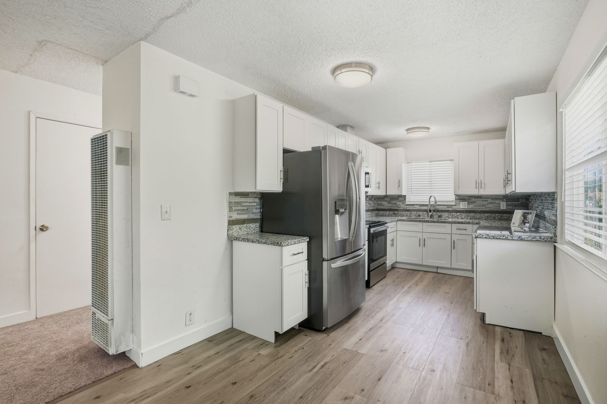 A peaceful retreat tucked among the trees, this 2-bedroom, 1-bath home offers comfort, charm, and a daily dose of calm in the heart of Oakland. Natural light streams through a wall of large windows, framing the lush greenery outside and filling your living area with warmth and serenity. Mornings begin with the gentle sound of birds, making this space feel like a private hideaway in the city. The open living area connects smoothly to a modern kitchen fitted with stainless steel appliances, sleek countertops, and generous cabinetry for easy organization. Whether you’re preparing dinner for two or hosting a quiet evening at home, this kitchen keeps everything within reach while still feeling spacious. Both bedrooms are comfortably sized with soft carpeting underfoot, while the bathroom features stylish tilework, bright lighting, and a tub-shower combo for relaxation after a long day. Lot parking is conveniently assigned to Spot D, and one pet is welcome to enjoy the tranquil surroundings right along with you. Enjoy nearby conveniences like grocery shopping at Foothill Square, strolls through Tassafaronga Park, or easy access to I-580 for quick commutes around the Bay Area. Your new home brings together peace, practicality, and an unmistakable sense of comfort. *Pet weight limit is 20 lbs - if your pet exceeds this, please reach out to see if we can accommodate! *Our homes come as-is with all essentials in working order. Want upgrades? Request it through the Belong app, and our trusted pros will take care of the rest!