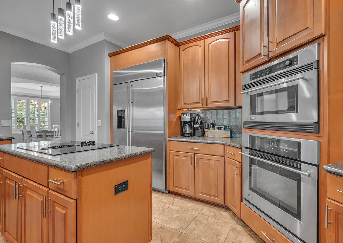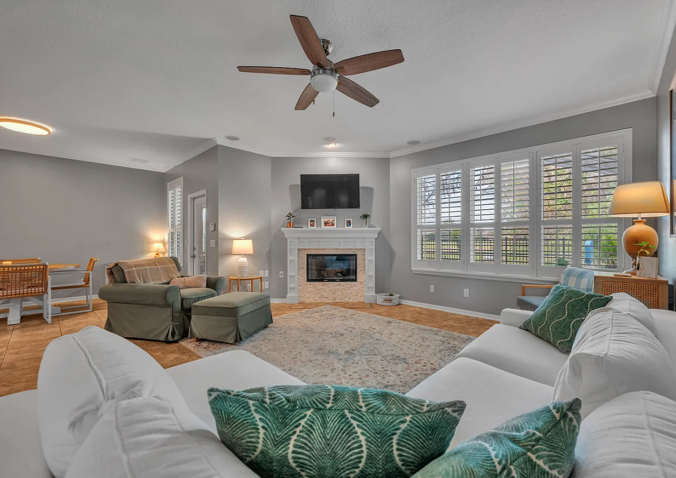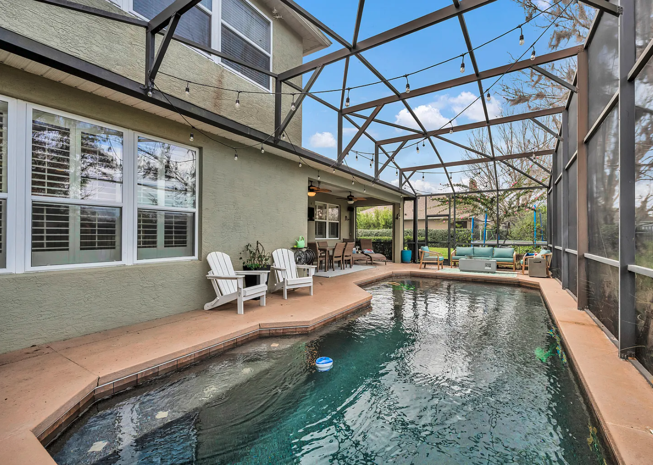A generously scaled layout and a thoughtfully articulated outdoor setting distinguish this 4-bedroom, 3.5-bath Oakland home. Its living area is anchored by a fireplace with a detailed surround, positioned beneath a wall-mounted display. Broad windows fitted with plantation shutters introduce controlled natural light, while the open configuration maintains visual continuity into adjacent spaces. In the kitchen, extensive cabinetry lines the perimeter, complemented by stainless steel appliances and a central island with integrated sink. A long breakfast bar accommodates multiple seats, creating a clear transition between preparation and casual dining. The adjacent breakfast nook and formal dining area provide flexibility for both everyday meals and more structured gatherings. Just outside, a screened-in pool enclosure introduces a private setting for relaxation, complemented by a grassy yard, a fire pit area, and a trampoline. Upstairs, a lofted area provides an additional living space to extend the home’s versatility. A dedicated office sits nearby, well-suited for focused work or study. Nearby, Winter Garden Village offers shopping and dining, while Publix, ALDI, and Costco provide convenient grocery options. The West Orange Trail and local parks create easy access to outdoor recreation, all within the greater Orlando area. *Pets allowed. Zillow deposit for this Belong home includes the $500 pet fee in case of pets. *Fireplace is for decorative use only and cannot be used without consent from Belong. *Our homes come as-is with all essentials in working order. Want upgrades? Request it through the Belong app, and our trusted pros will take care of the rest!