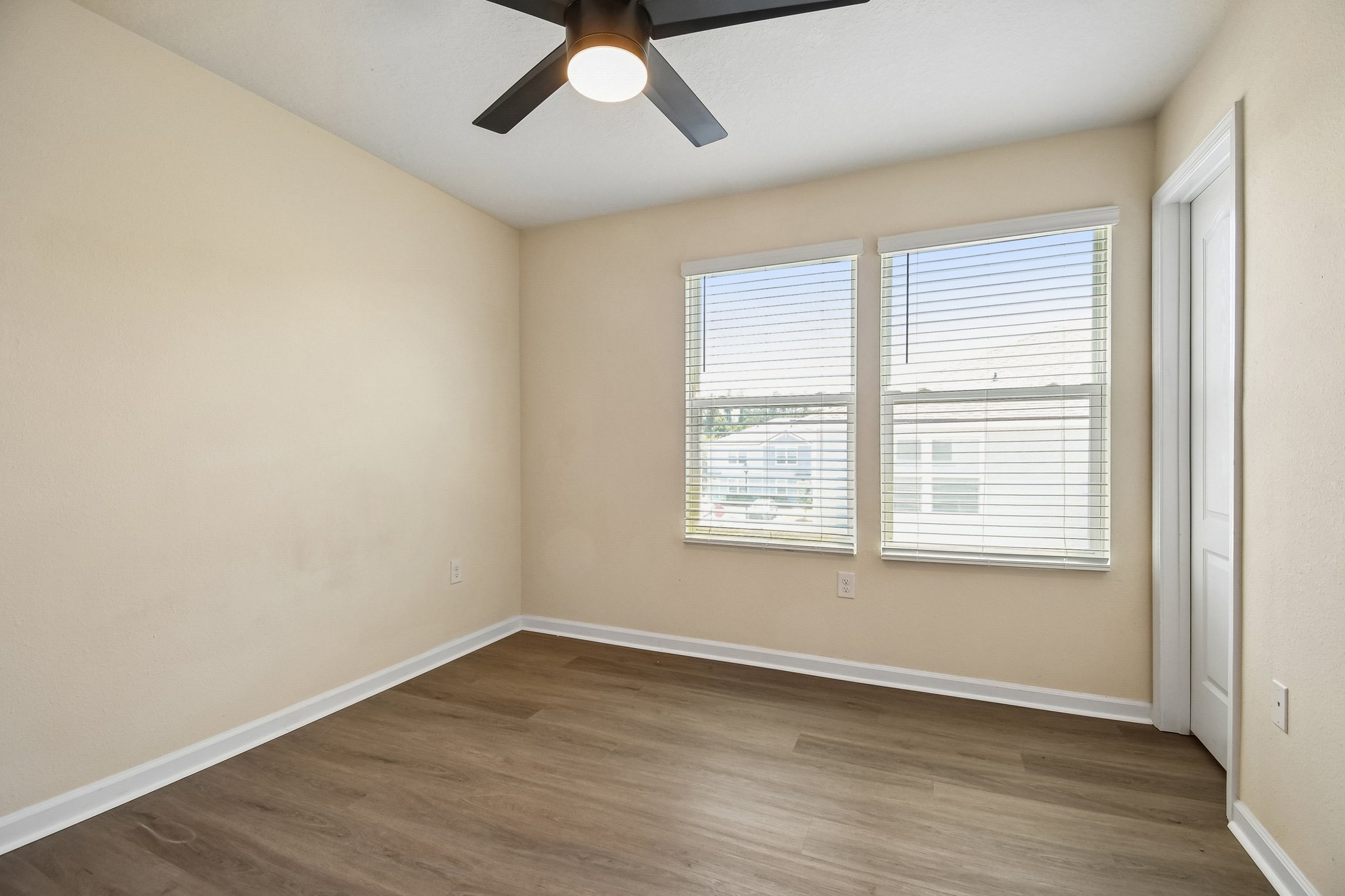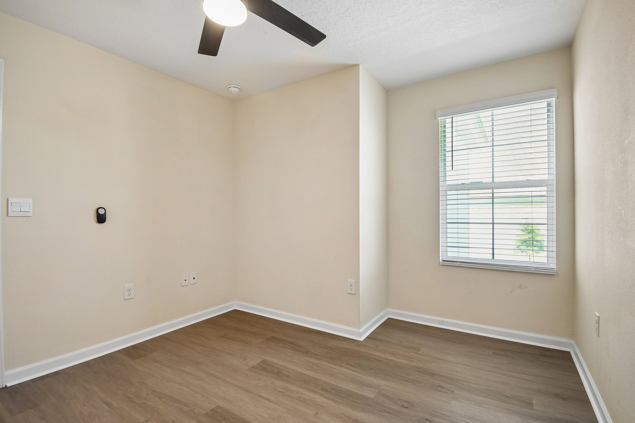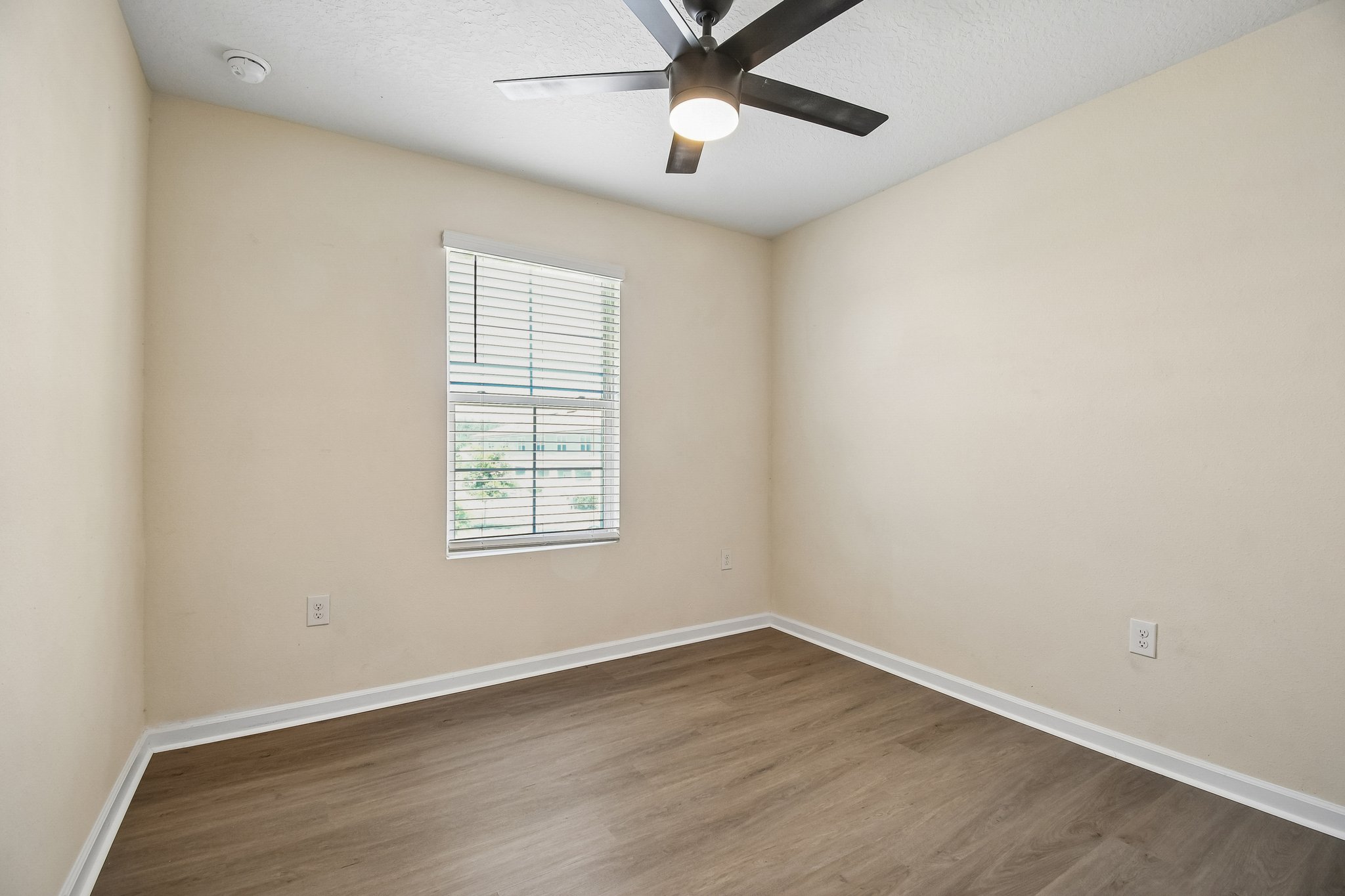 Welcome to a beautifully maintained three-bedroom townhome that blends modern style with everyday comfort in one of Orange Park's most established communities. Thoughtful finishes and a smart layout make this 1,308 square foot residence an inviting place to call home. The kitchen anchors the main level with rich espresso cabinetry, marble-style countertops, and a full suite of stainless steel appliances, including a French door refrigerator. Generous counter space and a bright window above the sink create an effortless setting for cooking and gathering, while the open flow connects seamlessly to the rest of the living area. Upstairs, the primary suite offers a spacious retreat complete with a ceiling fan, abundant natural light, and a private en-suite bathroom featuring a walk-in shower and an extended vanity. Two additional bedrooms provide flexibility for family, guests, or a dedicated home office, and the upper-level laundry hookups add welcome convenience to daily routines. A second full bath and a downstairs powder room round out the home. Step outside to a covered rear patio, perfect for morning coffee or relaxed evenings. The location places you within a tranquil suburban setting near community pools, parks, and easy access to nearby shopping and major routes for a smooth commute. *Our homes come as-is with all essentials in working order. Want upgrades? Request it through the Belong app, and our trusted pros will take care of the rest!