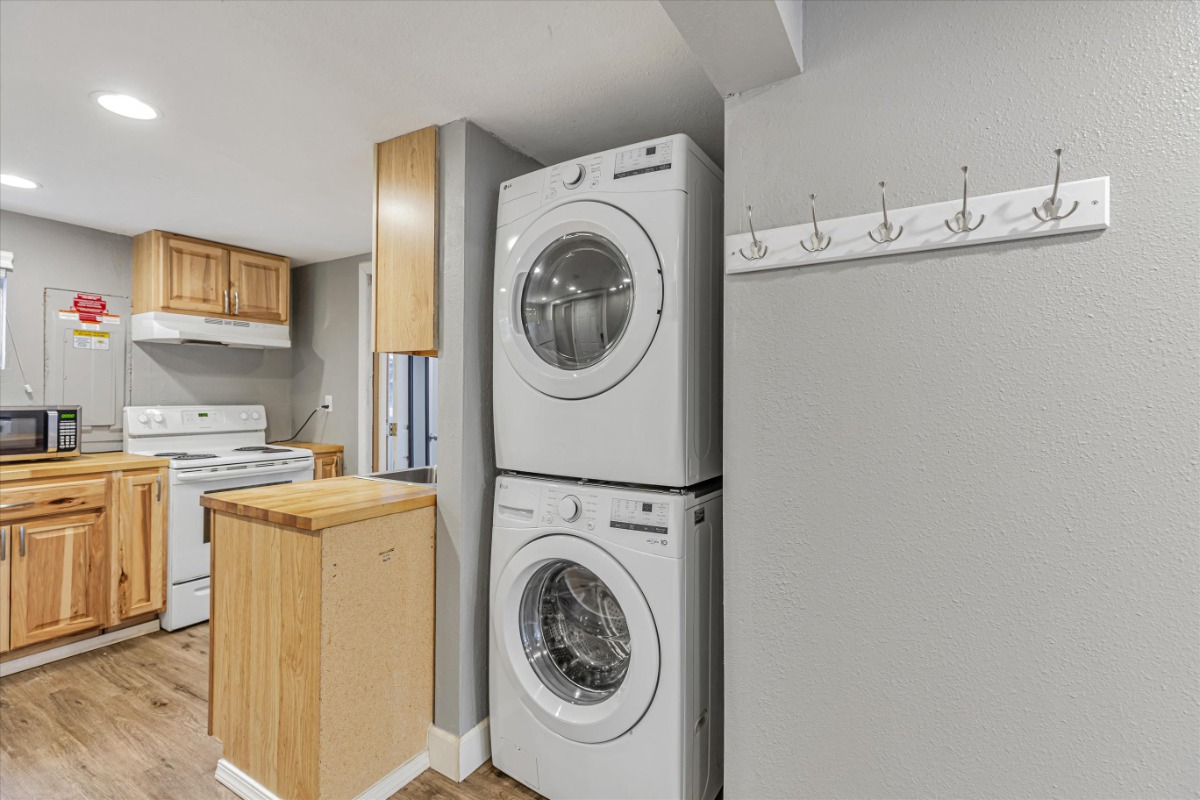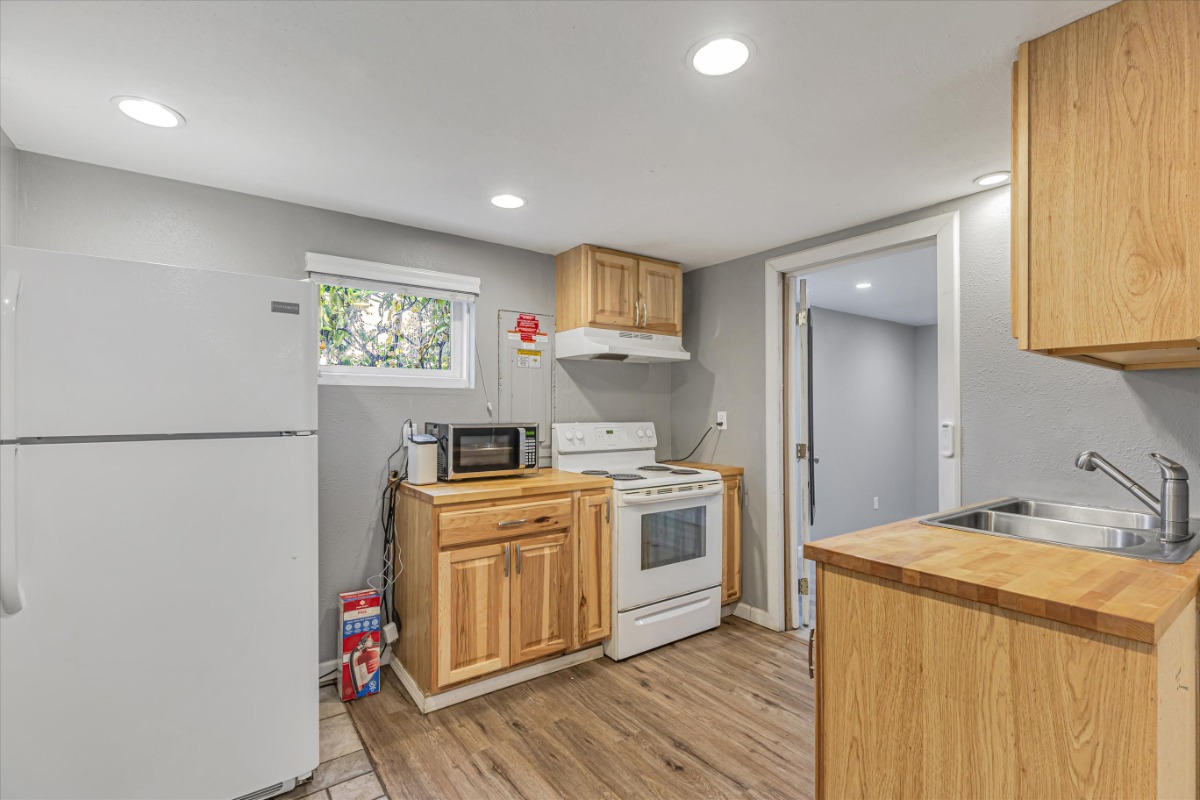 Come have a look at this cozy and practical ADU tucked away on a corner lot with a fully fenced yard, offering privacy and outdoor space for fresh air or a bit of greenery. Inside, the kitchenette is thoughtfully equipped with a 4-burner electric range, oven, refrigerator, microwave, and exhaust fan, providing all the essentials for daily meals. An in-unit laundry setup adds ease to your routine, giving you more time for what matters most. Two functional bedrooms, each with built-in shelves, offer versatile options for sleeping quarters, storage, or a small home office. Natural light filters through, creating a simple yet comfortable atmosphere. Convenience is key in this location, with quick access to nearby highways, local universities, and schools just minutes away. Commuting, studying, or running daily errands is made that much simpler with everything close at hand. Pet-friendly living allows for up to two furry companions, and the fully fenced yard gives them space for outdoor fun. It’s a practical option for those seeking a straightforward, low-maintenance place to call home. *Our homes come as-is with all essentials in working order. Want upgrades? Request it through the Belong app, and our trusted pros will take care of the rest!
