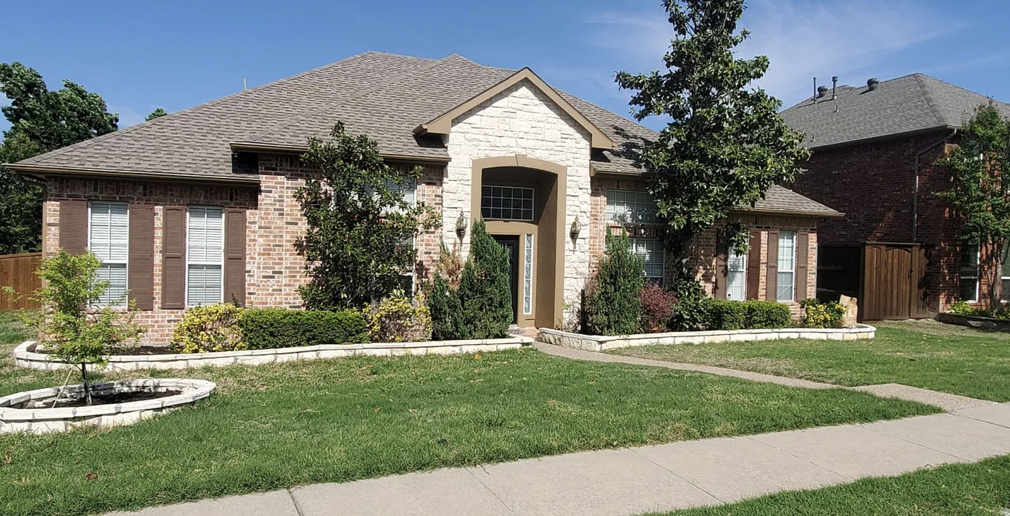 A welcoming brick facade sets the scene for this 4-bedroom, 3-bath home that offers both comfort and capability. Step inside to a wide living area where generous windows draw in daylight and highlight the room’s open feel. Plenty of wall space gives you options for art or shelving, and the layout makes it easy to arrange your seating with intention. In the kitchen, warm wood cabinetry and expansive counters give you the room you need to cook, prep, and gather. A center island adds extra functionality, while stainless steel appliances, a gas cooktop, and double ovens support everything from weeknight meals to more ambitious cooking days. Nearby, the dining area offers space for everyday eating or weekend hosting, and tile flooring keeps the entire zone practical and easy to maintain. Four bedrooms provide flexibility for sleeping, studying, or setting up a dedicated workspace. Your main bedroom includes an ensuite bath with a large walk-in shower, dual vanities, and storage. Two additional full baths support the remaining rooms, keeping routines running smoothly. An attached 2-car garage adds convenience and storage options, whether you’re managing gear, tools, or everyday essentials. Plano’s Russell Creek Park, Legacy West, and a wide variety of grocery stores, cafes, fitness studios, and commuter routes sit close by, giving you quick access to everything you rely on. You’ll have a straightforward path to daily errands, outdoor recreation, and the broader DFW area. *Our homes come as-is with all essentials in working order. Want upgrades? Request it through the Belong app, and our trusted pros will take care of the rest!