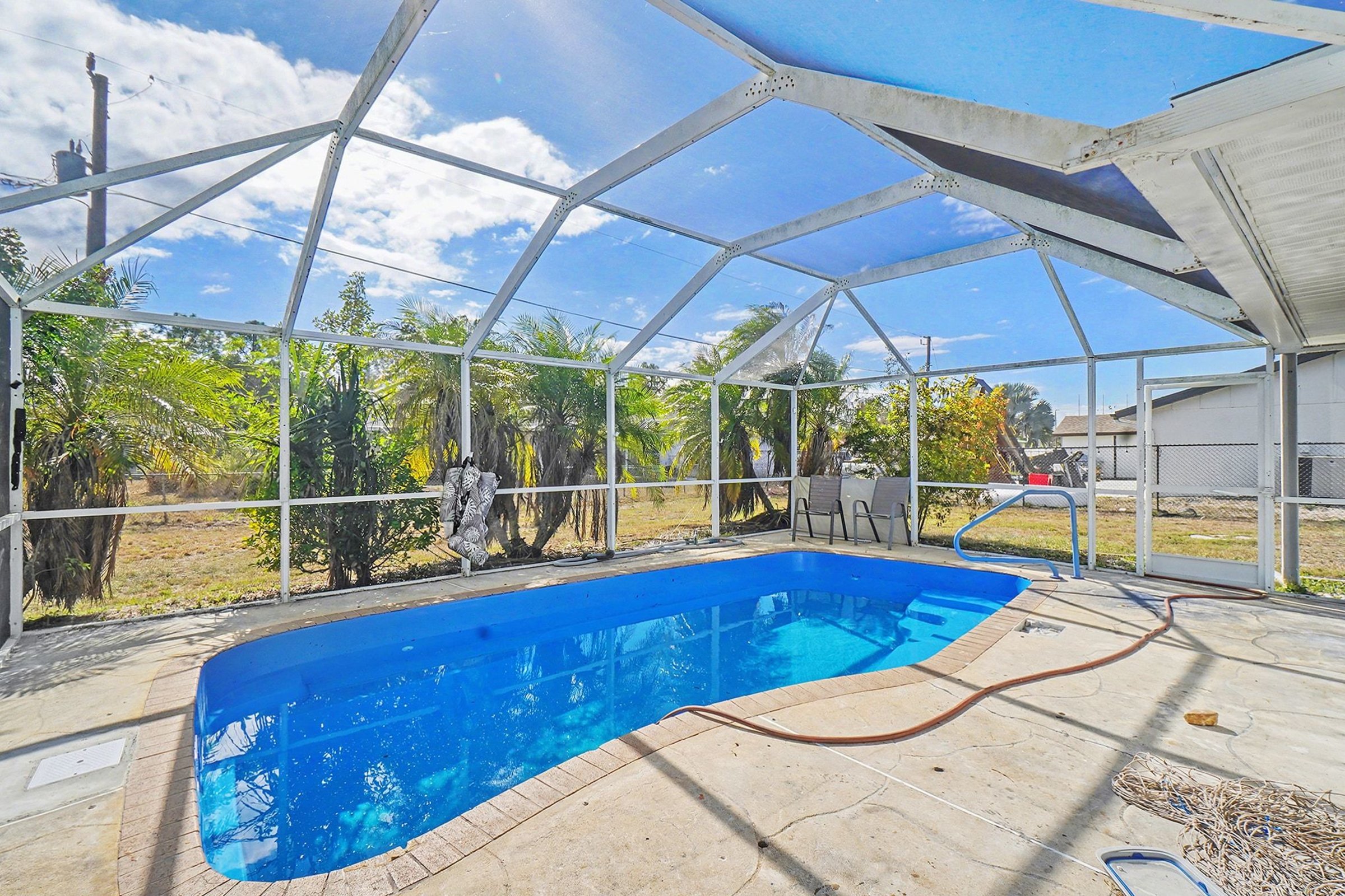 Sunlit interiors and an expansive screened-in lanai set the tone for relaxed coastal living here, paired with a private pool that anchors the outdoor space. This 2-bedroom, 2-bath layout also includes a one-car finished garage, in-home laundry, and a setting that leans into Port Charlotte’s easygoing rhythm. Inside, the living area feels open and airy, with neutral finishes that keep the space bright and adaptable. Sliding doors connect indoor living to the screened lanai, creating a natural flow toward the pool and offering a breezy backdrop for everyday downtime or casual gatherings. The kitchen features generous cabinetry, ample counter space, and stainless steel appliances. Its placement supports both daily routines and relaxed meals, keeping everything within easy reach. Two pets are welcome, making this setting easy to share with your four-legged companions. Located just minutes from Charlotte Harbor, you are close to waterfront dining, boating access, and scenic walking paths. Grocery options like Publix and Winn-Dixie are nearby, with Port Charlotte Town Center offering shopping and dining variety. Golf enthusiasts will appreciate proximity to courses such as Port Charlotte Golf Club, while local parks and preserves provide space to unwind outdoors. *Pet weight limit is 20 lbs - if your pet exceeds this, please reach out to see if we can accommodate! *Our homes come as-is with all essentials in working order. Want upgrades? Request it through the Belong app, and our trusted pros will take care of the rest!
