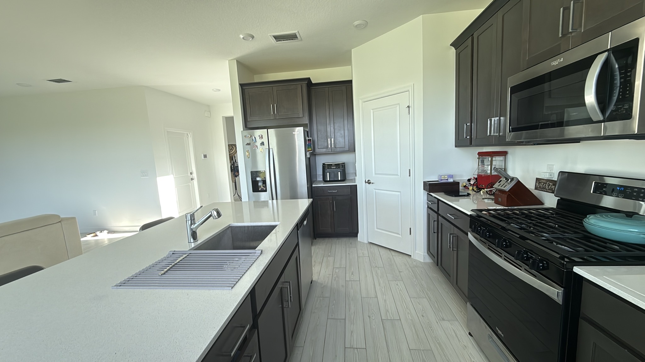 Clean lines and modern finishes define this 4-bedroom, 2.5-bath home, where thoughtful design supports a streamlined, contemporary aesthetic. Natural light moves easily through large windows, highlighting light-toned flooring and a neutral palette that keeps each space feeling composed and uncluttered. T The kitchen anchors the main living area with dark cabinetry, stainless appliances, and smooth, understated surfaces. A generous island with an integrated sink provides space for casual seating, prep, or gathering while keeping visual noise to a minimum. Storage is well considered, including a dedicated pantry that helps maintain clean countertops and a refined look. Living in Cadence at Port Saint Lucie offers an exceptional quality of life, thanks to its design as a master-planned community that fosters both comfort and connection. Residents frequently highlight the friendly atmosphere and strong community spirit, which is actively supported by features like a resident-run social committee that organizes events such as holiday parties and food truck nights. The resort-style amenities, including a community pool, cabana, and grilling stations, serve as central hubs for social interaction and recreation, creating a relaxed, "vacation-like" lifestyle. Beyond the immediate neighborhood, residents benefit from the proximity to Tradition Square's dining and shopping options, access to the extensive T-Trail for walking and biking, and the convenience of nearby world-class healthcare facilities like Cleveland Clinic Tradition Hospital. This blend of modern home designs, valuable amenities, and a true small-town, neighborly feel makes Cadence an ideal choice for quality living on Florida's Treasure Coast. *Our homes come as-is with all essentials in working order. Want upgrades? Request it through the Belong app, and our trusted pros will take care of the rest.