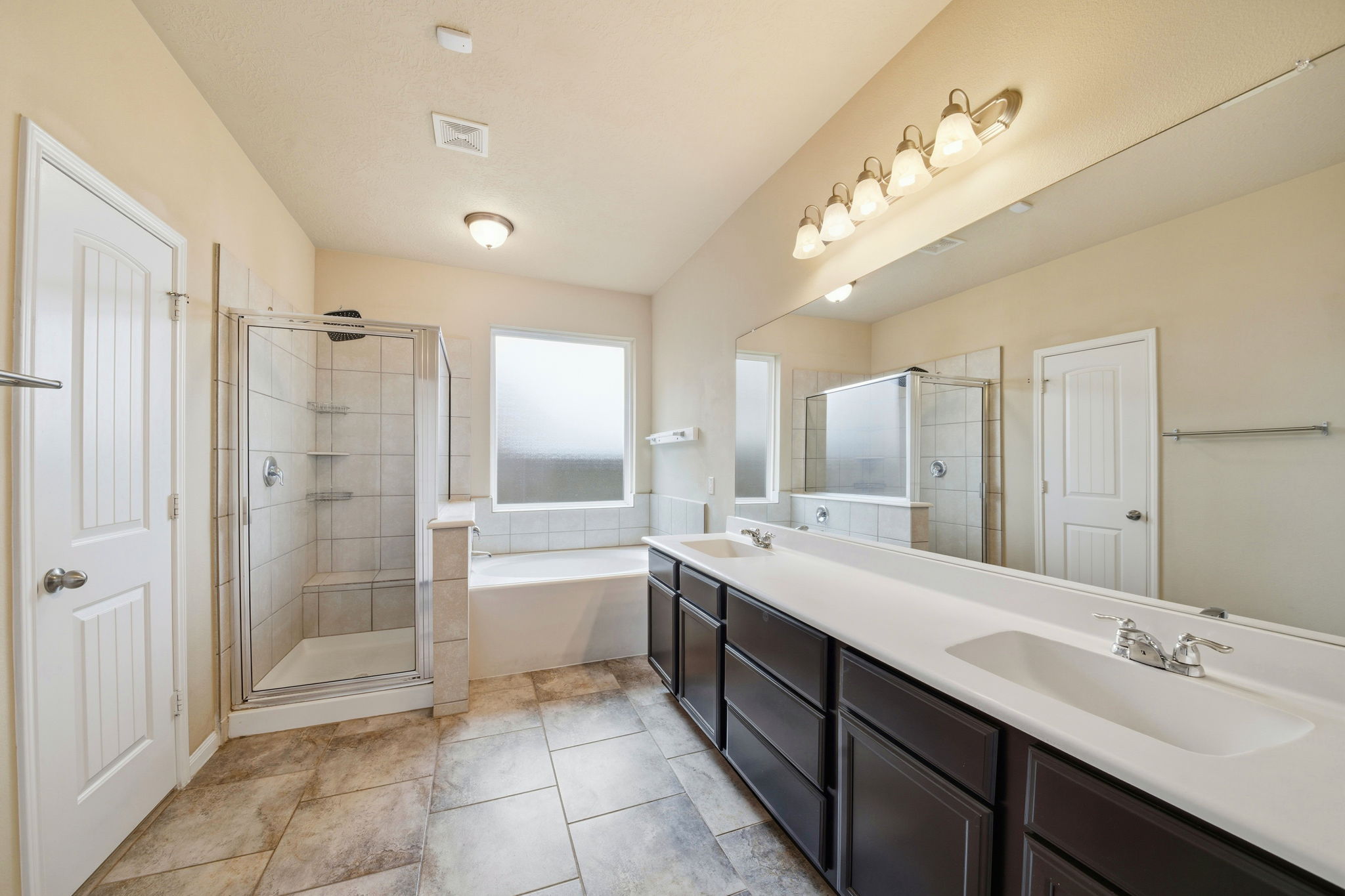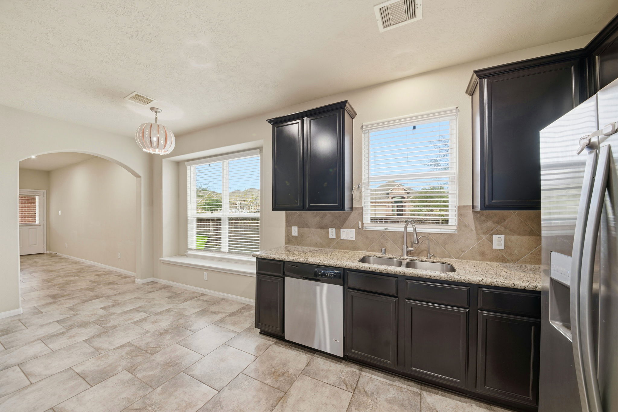 This inviting 3-bedroom, 2.5-bath home brings together generous living space, thoughtful finishes, and a layout designed for everyday comfort. Tile flooring stretches through the main living areas, while recessed lighting and a ceiling fan create a bright, welcoming setting for relaxing or gathering with friends. The living area flows easily into the kitchen and dining space, giving you plenty of room to arrange seating, a dining table, and media without feeling crowded. Arched openings add architectural interest, and large windows bring in natural light throughout the day. The kitchen features dark cabinetry, stainless steel appliances, ample counter space, and a breakfast bar that works well for casual meals or morning coffee. All three bedrooms include ceiling fans, offering added comfort year-round. The primary bath stands out with a double-sink vanity, a soaking tub, and a separate glass-enclosed shower, creating a space that feels calm and practical for daily routines. Set within a residential area of Richmond, the location puts you close to everyday conveniences and local favorites. Grocery options like H-E-B and Kroger are nearby, while shopping and dining at LaCenterra at Cinco Ranch and Aliana are an easy drive. Outdoor time is well supported with nearby parks, neighborhood trails, and access to George Bush Park for walking, biking, or weekend outings. *Our homes come as-is with all essentials in working order. Want upgrades? Request it through the Belong app, and our trusted pros will take care of the rest!