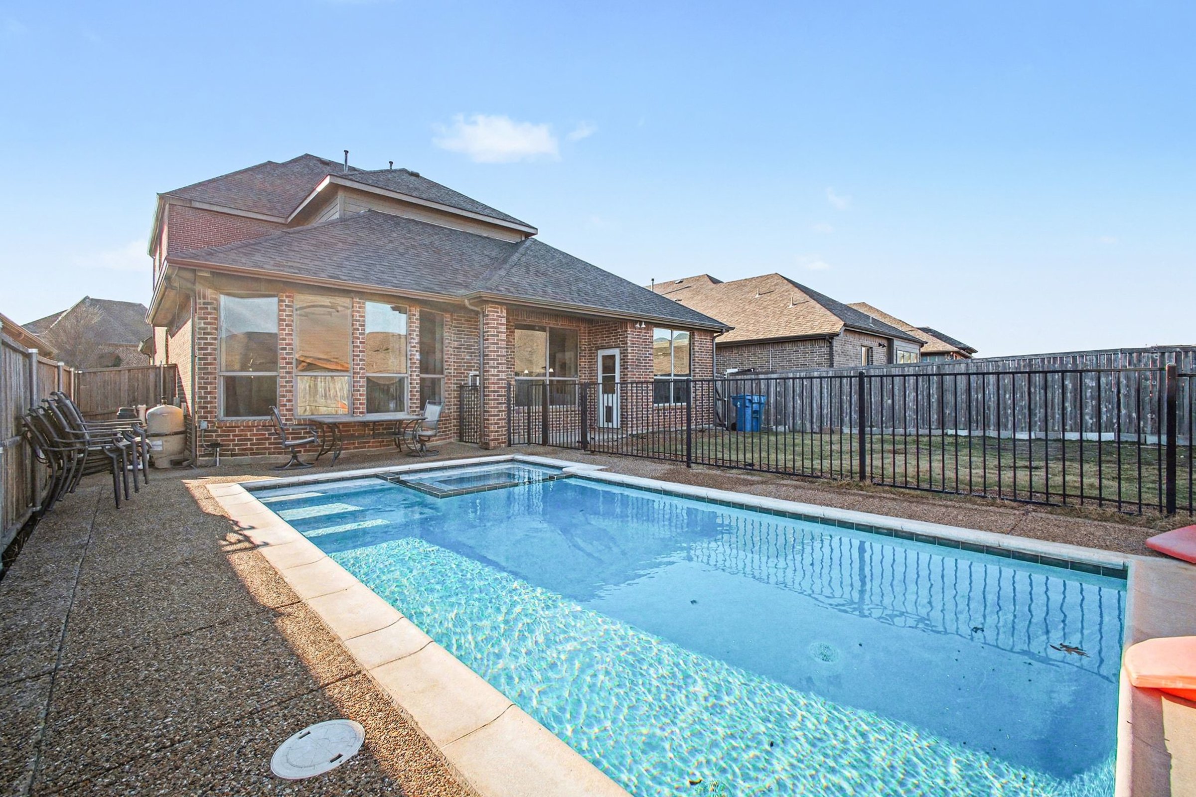 Generous proportions and thoughtfully curated spaces define this 2,986-square-foot offering, where five bedrooms and four baths create a setting of comfort and distinction. An expansive main living area pairs dark flooring with generous natural light, while a fireplace anchors the room with a gorgeous focal point. The kitchen continues the elevated feel with abundant cabinetry, a spacious island, pendant lighting, and an easy flow into the dining area. This layout supports both casual mornings and more formal gatherings, allowing you to move effortlessly between cooking, dining, and conversation without sacrificing style or function. A dedicated home theater offers a cinematic viewing experience, while the lofted area provides flexibility for recreation, relaxation, or creative pursuits. Five well-proportioned bedrooms and four full baths ensure privacy and convenience, and pets are welcome, making this space adaptable for a variety of lifestyles. Situated in Rockwall, the location places you close to Lake Ray Hubbard and the vibrant Harbor district, known for waterfront dining, boutiques, and seasonal events. Everyday needs are easily met with nearby grocery options, shopping centers, cafés, and parks, creating a balance of leisure and practicality just moments from home. *Fireplace is for decorative use only and cannot be used without consent from Belong. *Our homes come as-is with all essentials in working order. Want upgrades? Request it through the Belong app, and our trusted pros will take care of the rest!