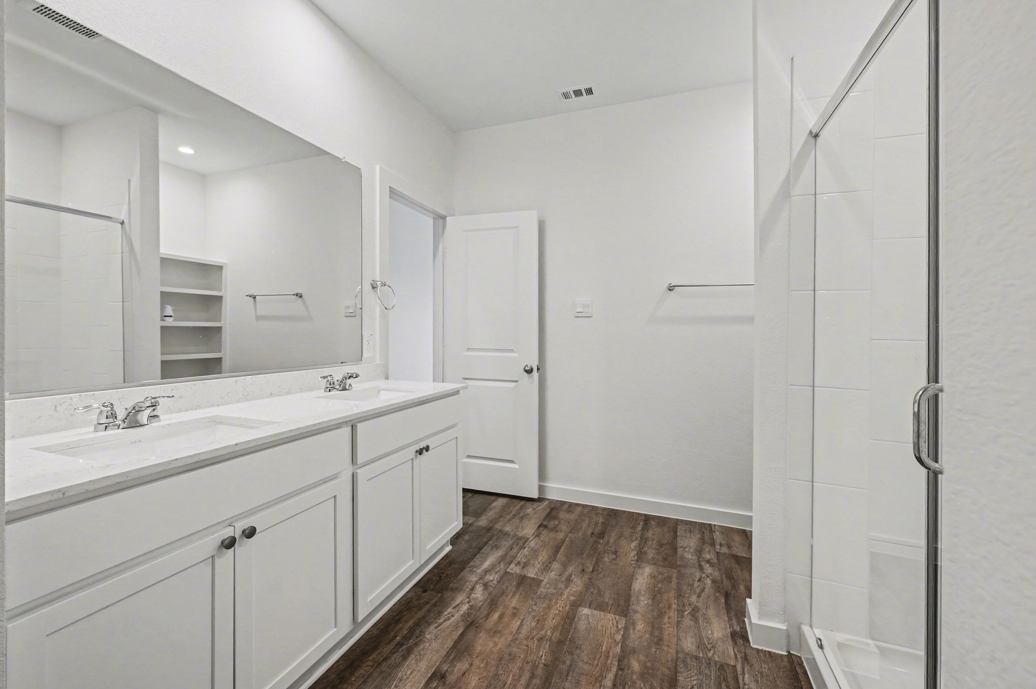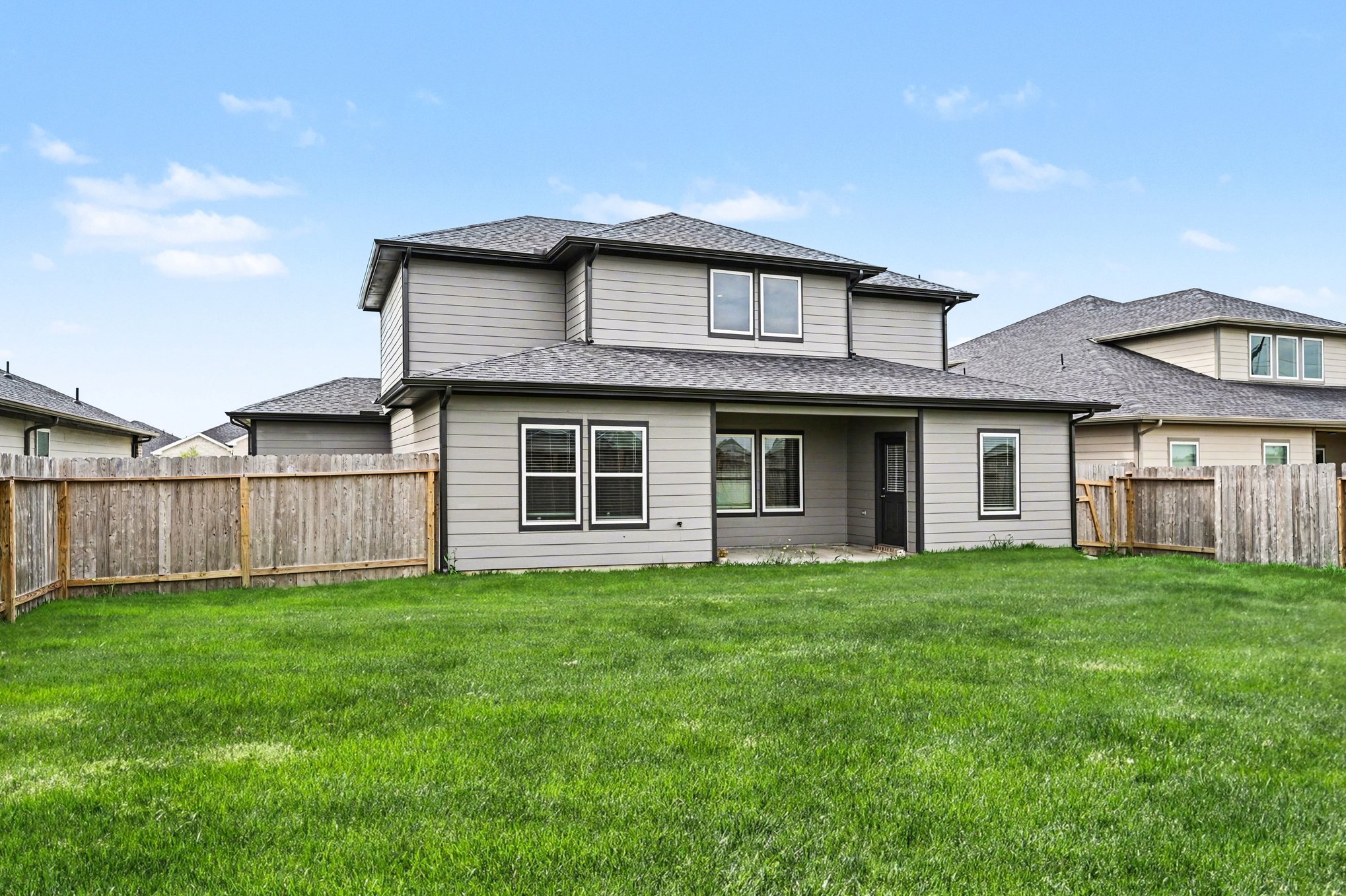 Set on a quiet street in Rosenberg, this four-bedroom, two-and-a-half-bath home blends modern craftsmanship with everyday comfort across 2,452 square feet. A handsome brick and siding facade, manicured lawn, and three-car garage create impressive curb appeal, while the interior delivers a bright, move-in ready feel throughout. The kitchen anchors the main living space with crisp white shaker cabinetry, rich granite countertops, and stainless steel appliances, including a gas range. A spacious center island with integrated sink provides room to prep, gather, and entertain, flowing seamlessly onto warm wood-style flooring that runs through the main floor. Upstairs, four generously sized bedrooms offer plush carpeting, recessed lighting, and large windows that invite natural light. The primary suite features a private bath with a dual-sink vanity, walk-in shower, and clean contemporary finishes. A convenient half bath serves guests on the main level, and the layout is designed with flexibility in mind for work-from-home or family life. Outside, a fully fenced backyard provides a private retreat for weekends, pets, or outdoor dining. The location offers easy access to nearby parks, schools, and major commuter routes, delivering the balance of suburban calm and city connectivity that defines this growing corner of Fort Bend County. *Our homes come as-is with all essentials in working order. Want upgrades? Request it through the Belong app, and our trusted pros will take care of the rest!