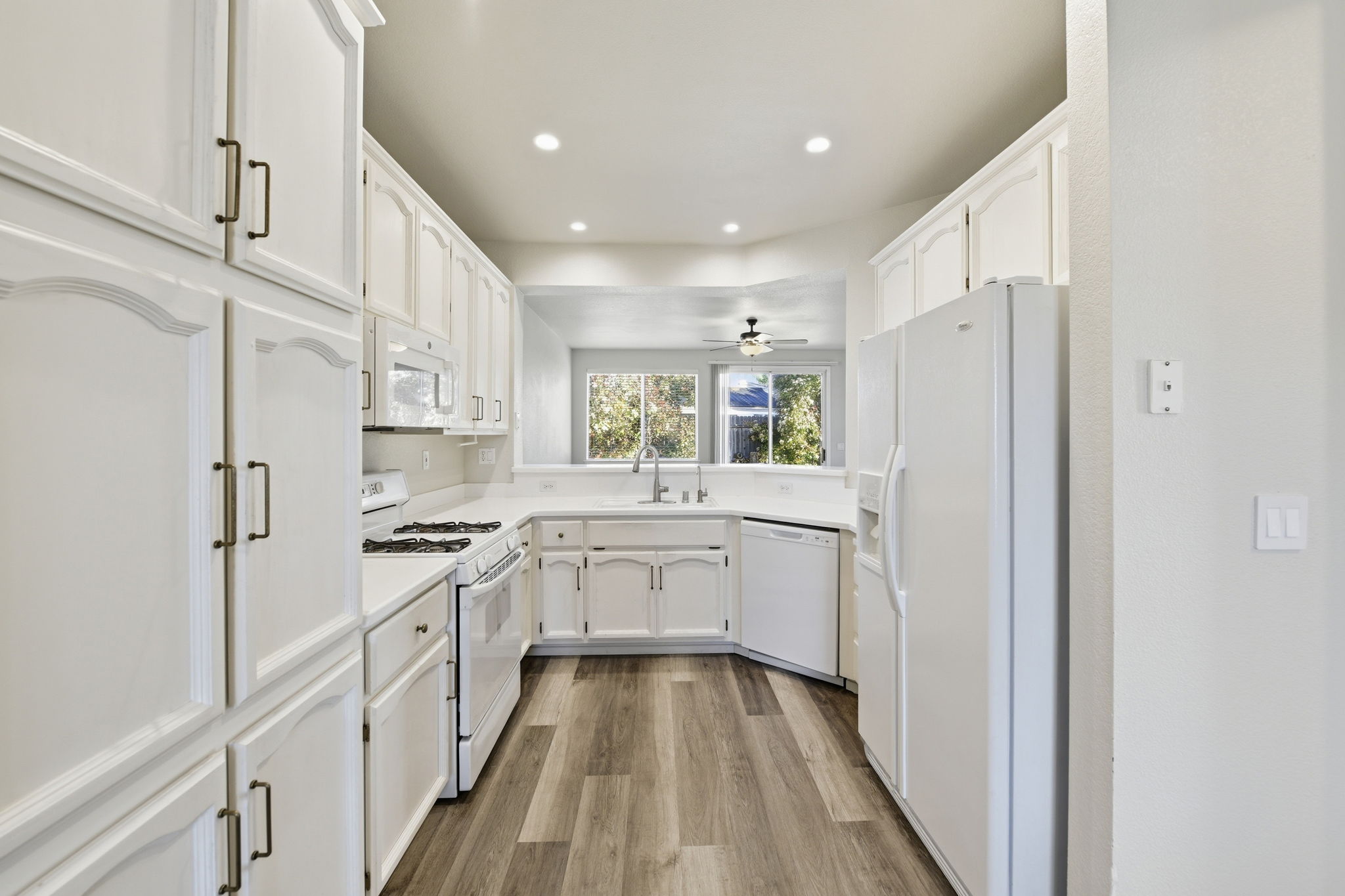 Warm light, an open kitchen, and a peaceful backyard come together in this 3-bedroom, 2-bath home, where each space feels ready for everyday comfort and quiet moments alike. In the main living area, wood-style flooring and generous windows create a relaxed setting that feels easy to settle into. There’s room to gather, unwind, or simply enjoy a slow afternoon. A wide pass-through opening keeps the kitchen connected while still giving it definition. The kitchen itself features ample cabinetry, a clean, streamlined design, and a layout that keeps everything within reach. Just beyond, the dining area is softly lit and positioned near the windows, making it a pleasant spot for both weekday meals and weekend conversations. Outside, the backyard opens to a mix of patio and lawn space - ideal for morning coffee, a bit of gardening, or letting the day wind down at your own pace. Set within a quiet, family-oriented neighborhood, you’re close to everyday essentials like grocery stores along Blue Oaks Boulevard, dining options including local favorites and well-known spots like Yard House and The Cheesecake Factory, and outdoor spaces such as Mahany Park. *Our homes come as-is with all essentials in working order. Want upgrades? Request it through the Belong app, and our trusted pros will take care of the rest!