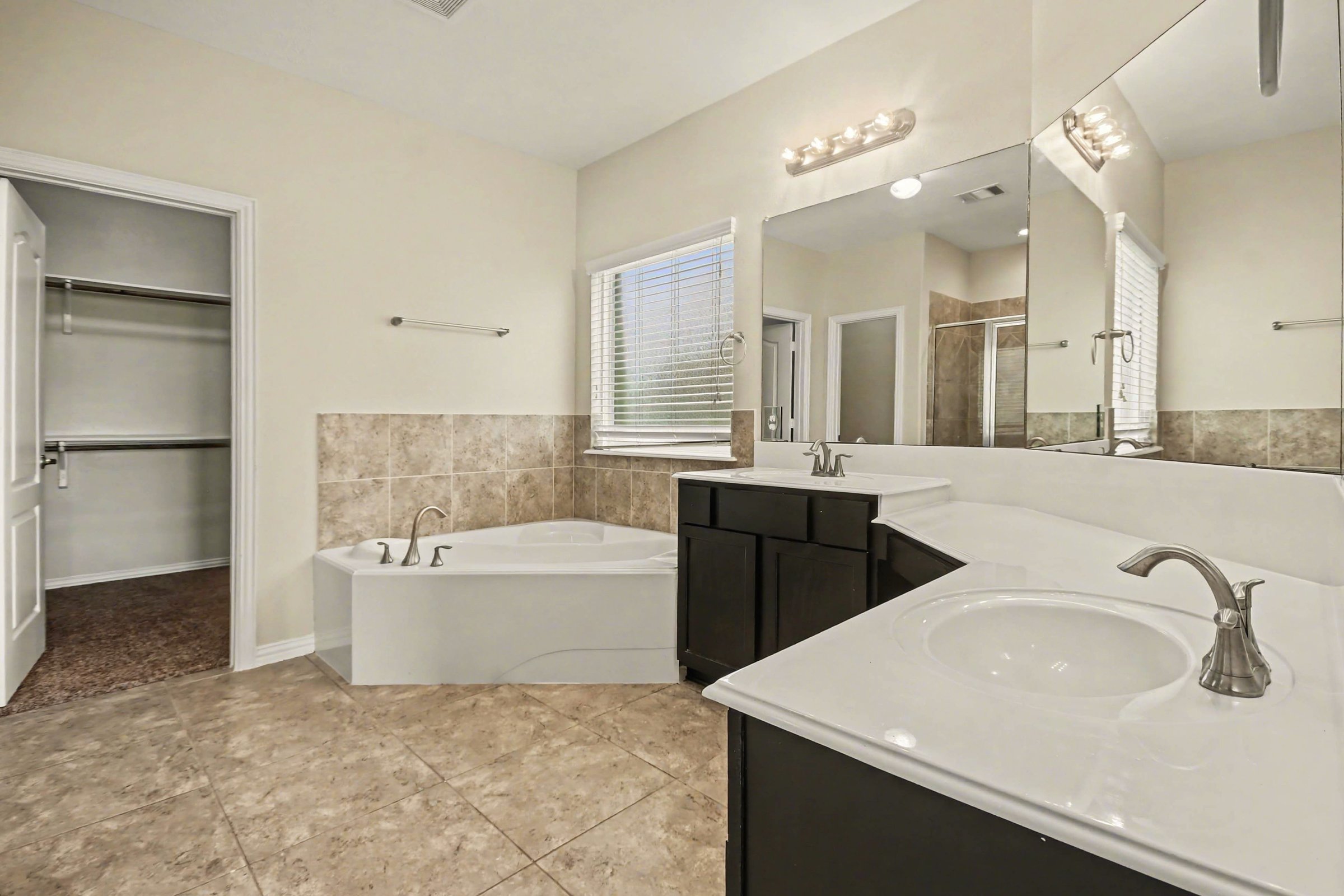 High vaulted ceilings and a generous 3,395 square feet of living space establish the scale of this well-appointed 4-bedroom, 3.5-bath home. The main living area enjoys an open and airy environment with ample room to arrange seating and gathering spaces. Natural light is drawn in effectively, enhancing the overall sense of volume. Its layout supports a range of living arrangements, complemented by central heat and A/C for consistent comfort throughout. Meanwhile, the kitchen is configured for both function and presence, offering extensive cabinetry, expansive counter space, and a central island suited for meal preparation and casual dining. Bedrooms are well-proportioned, including a primary suite that accommodates larger furnishings and includes an ensuite bath. This bathroom features a soaking tub, dual-sink vanity, and a dedicated storage area to support daily routines. Driveway parking adds everyday convenience. Located in Rosharon, the home is within reach of H-E-B and Kroger for groceries, Pearland Town Center for shopping and dining, and Brazos Bend State Park for outdoor recreation. Major routes such as Highway 288 provide a direct connection to Pearland, the Texas Medical Center, and downtown Houston. *Pets allowed. Zillow deposit for this Belong home includes the $500 pet fee in case of pets. *Our homes come as-is with all essentials in working order. Want upgrades? Request it through the Belong app, and our trusted pros will take care of the rest!